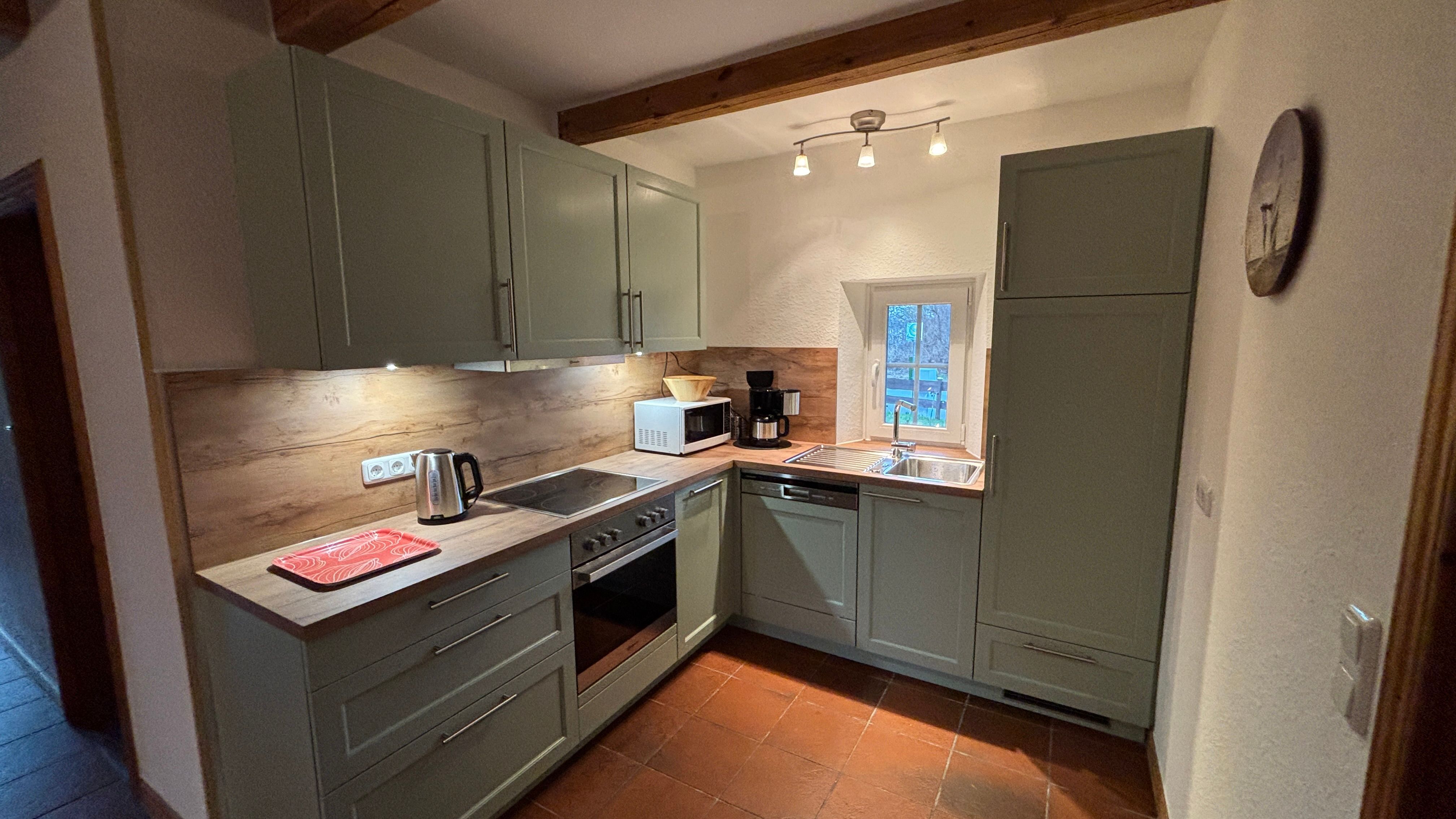 Die moderne und voll ausgestattete Küche lässt keine Wünsche offen. Sie verfügt über einen Herd, Backofen, Mikrowelle, Spülmaschine und Kühlschrank mit Gefrierfach, sodass kulinarischen Abenteuern in Ihrem Urlaub nichts im Wege steht. Für Ihr Frühstück oder den kleinen Hunger zwischendurch stehen Ihnen ein Wasserkocher, Toaster und eine Kaffeemaschine zur Verfügung. Genießen Sie die gemeinsamen Mahlzeiten im Essbereich oder auf der Terrasse!
