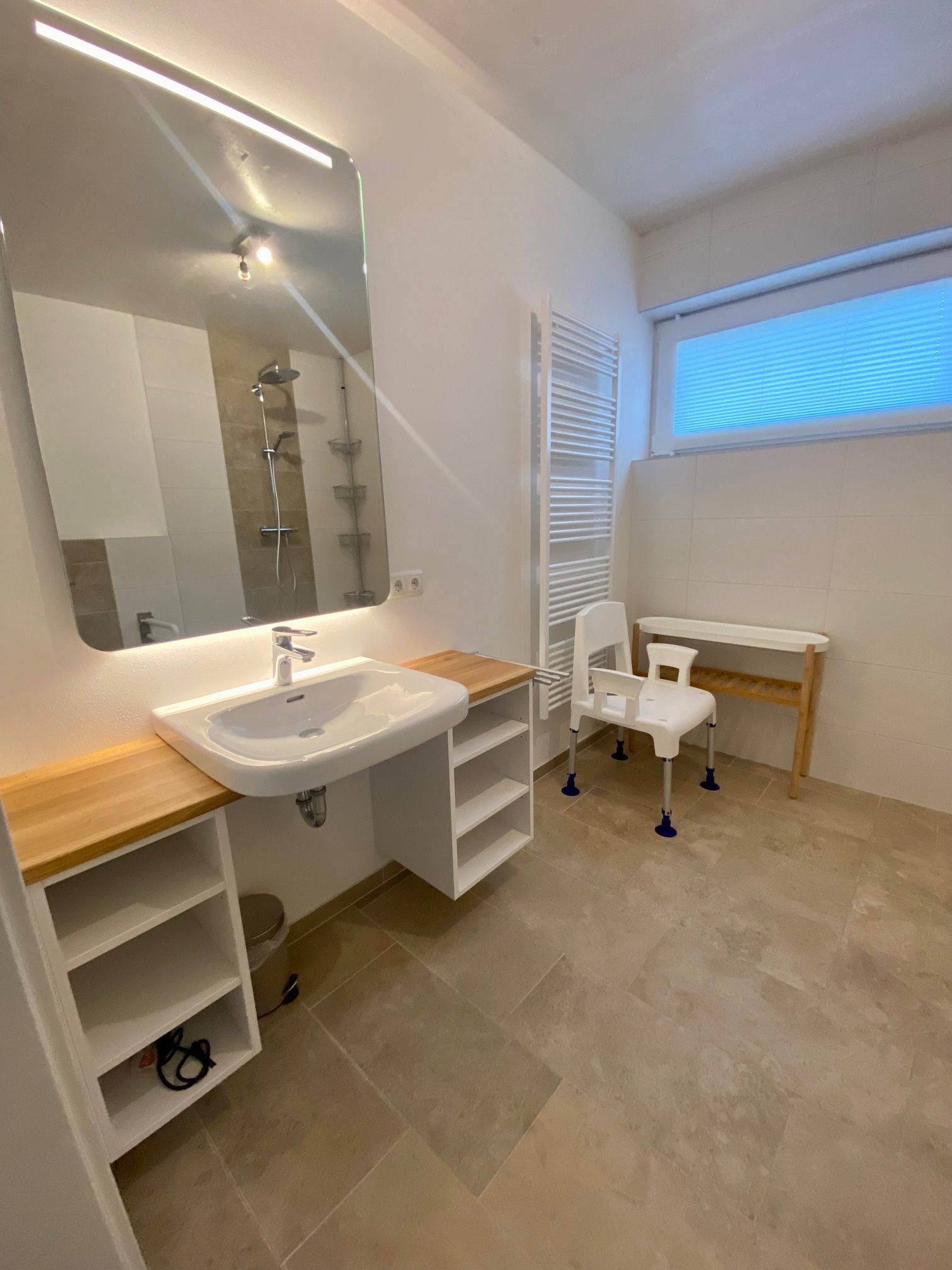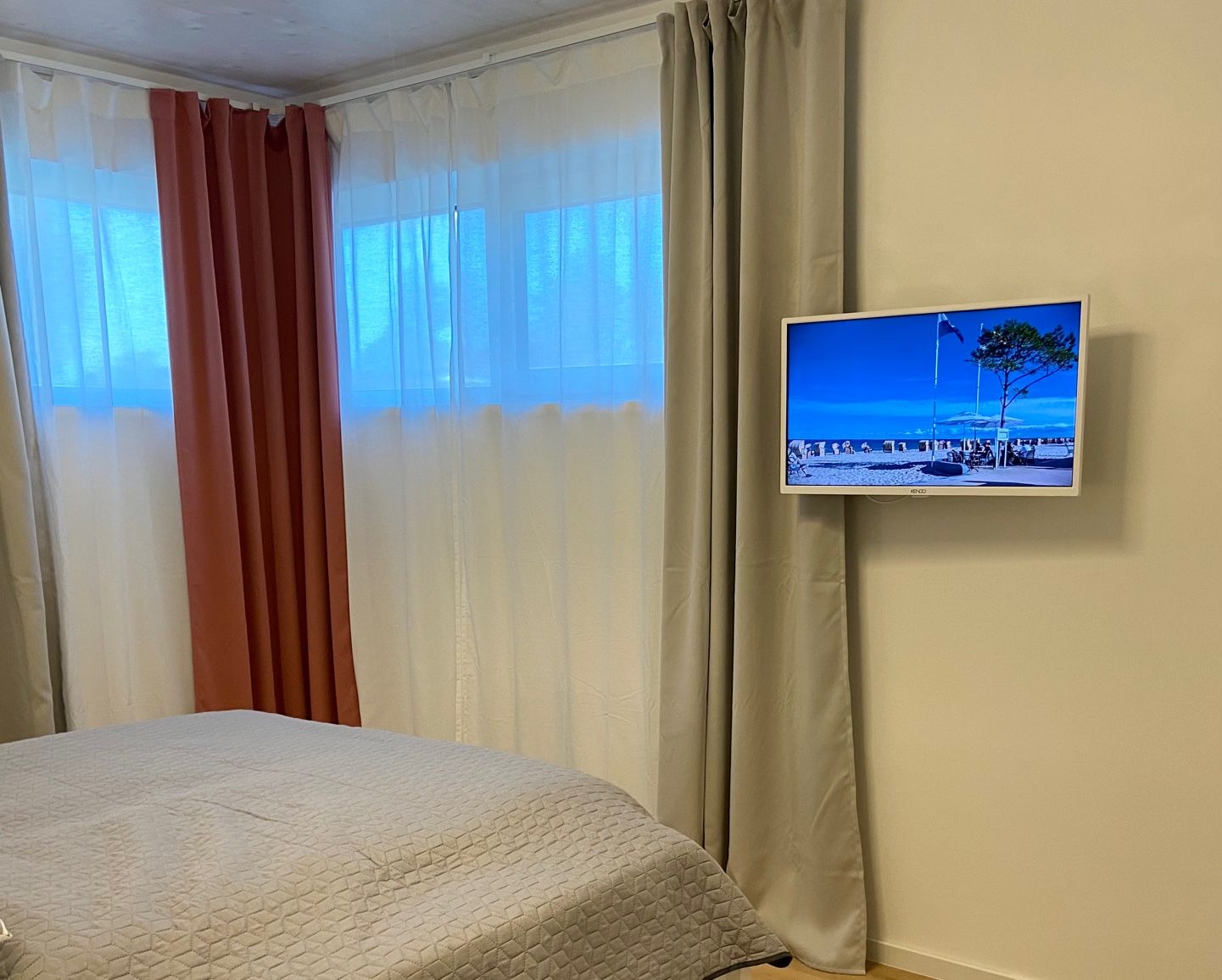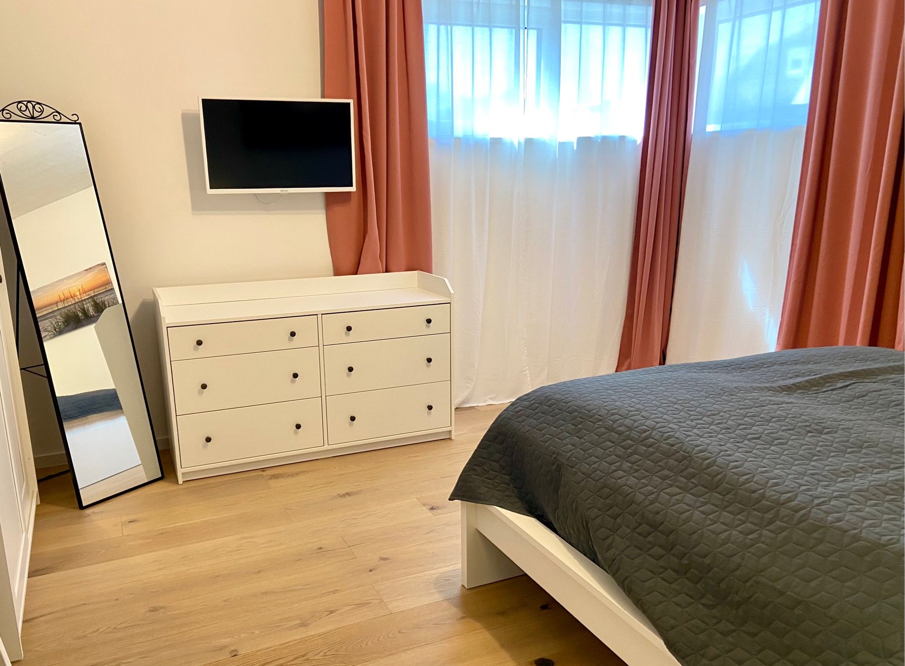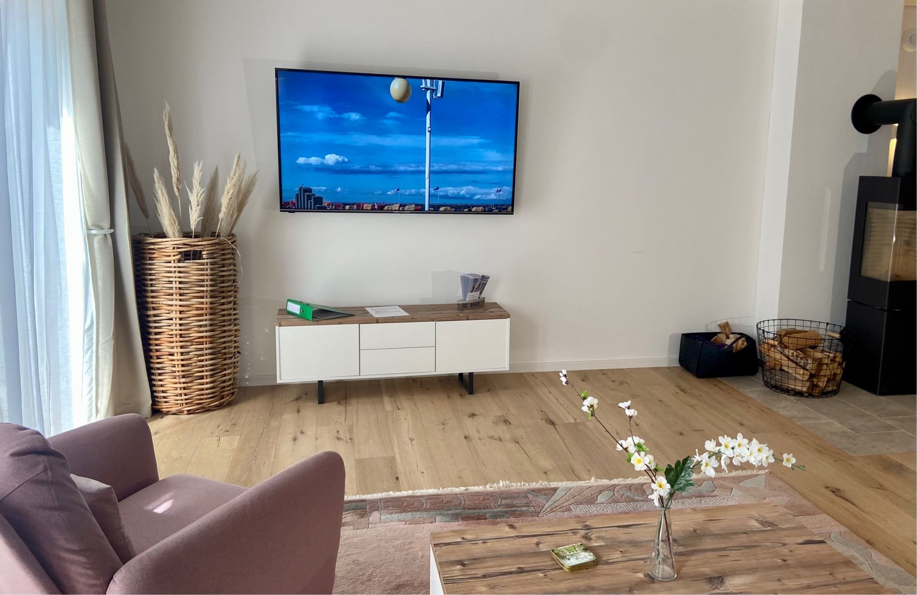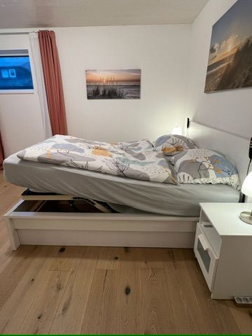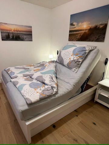 Bis zu 4 Personen können sich hier erholen. Die Wohnung bietet 101 m² Wohnfläche und begeistert durch eine stilvolle Einrichtung. Besonders erwähnenswert ist, dass die Wohnung behindertengerecht gebaut wurde. Hier kann auch der Rollstuhlfahrer bequem das großzügige Bad nutzen. Haltegriffe an Dusche und WC wurden hierfür extra angebracht - ebenso der extra breite Zugang zum Wohlfühlbad. Die Wohnung besticht durch das großzügige, stilsicher und modern eingerichtete Wohnzimmer mit Kaminofen, der im Winter neben der Fußbodenheizung zusätzlich wohlige Wärme spendet. Das großzügige Wohnzimmer hat Zugang zur Terrasse mit Liegen und Strandkorb. Große Fenster sorgen für eine freundliche Atmosphäre. Zur Wohnung gehören zwei Schlafzimmer - ein Doppelbett (BxHxT 180x60x200 cm) und 1 Doppelbett (2 x 90x200 cm )und Flachbildfernseher, sowie das bereits erwähnte großzügige Duschbad und ein Gäste-WC. Eines der Doppelbetten hat ein elektrisch verstellbares Lattenrost, welches sich Ihren Schlafgewohnheiten wunderbar anpasst! Der PKW-Stellplatz ist direkt am Haus. Der Wohlfühlfaktor ist in dieser einzigartigen Wohnung garantiert. Diese drei Zimmer Neubauwohnung überzeugt mit jeglichem Komfort. Besonders ansprechend ist die Lage zum nahegelegenen Kurpark, wo man die Seele baumeln lassen kann. Ihre mitgebrachten Fahrräder können Sie im Garten abstellen. Ein gemütlicher Grillplatz im Garten lädt zum Verweilen ein. Und sollten Sie doch mal arbeiten wollen, finden Sie im Schlafzimmer einen Schreibtisch mit LAN-Kabel. Für Ihren PKW steht Ihnen eine Wallbox zum Laden Ihres E-Autos gegen eine Tagespauschale in Höhe von 10,- € zur Verfügung. Die Pauschale kann nur für den gesamten Aufenthalt dazu gebucht werden. Sprechen Sie uns für weitere Informationen gerne an. Wie bereits erwähnt, wartet am schönen Dahmer Strand ein kostenloser Strandkorb (in der Saison vom 01.04. - 30.09.) auf Sie. Ein Kinderbett und ein Kinderhochstuhl sowie ein Bollerwagen für die kleinen Gäste gehören zur Grundausstattung. Sie möchten Ihren Hund mit in den Urlaub nehmen? Ein Hund darf hier gegen Aufpreis gern mitreisen. Fragen zur Barrierefreiheit beantworten wir gerne telefonisch. Fordern Sie auch gerne weitere Bilder dazu an.
