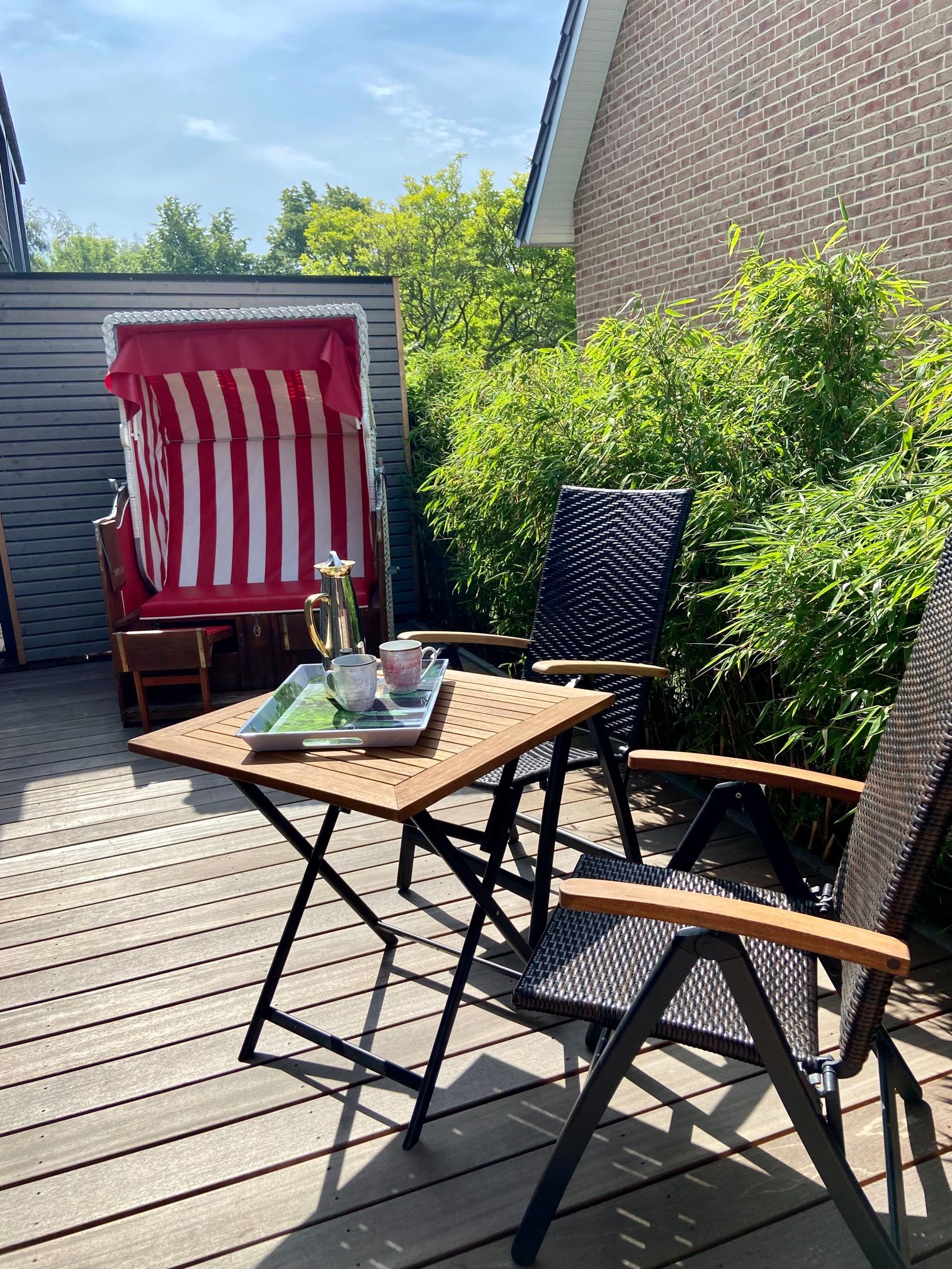 Modern, behindertengerecht und traumhaft ruhig gelegen. Als Highlight wartet ein kostenloser Strandkorb (in der Saison) am Wasser auf Sie. Und auch auf der Terrasse können Sie gemütliche Abende im Strandkorb verbringen. Hier wurde wirklich an alles gedacht.