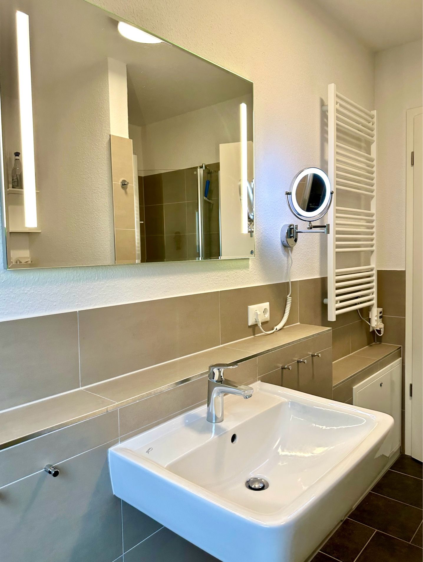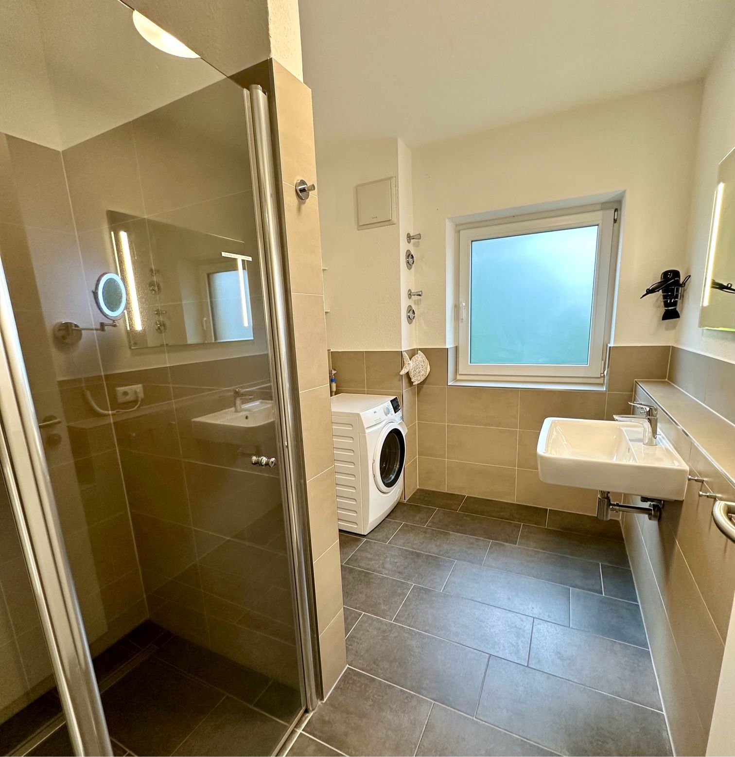 Die Ausstattung lässt keine Wünsche offen: Fußbodenheizung, modernes Duschbad mit bodentiefer Glasdusche, Kosmetikspiegel und Föhn, Waschtrockner, Smart-TV, Surround-Sound, kostenloses WLAN und sogar ein Aufzug für maximalen Komfort. Ihr Auto parkt bequem auf dem eigenen Stellplatz, und auch Ihr Hund ist herzlich willkommen.