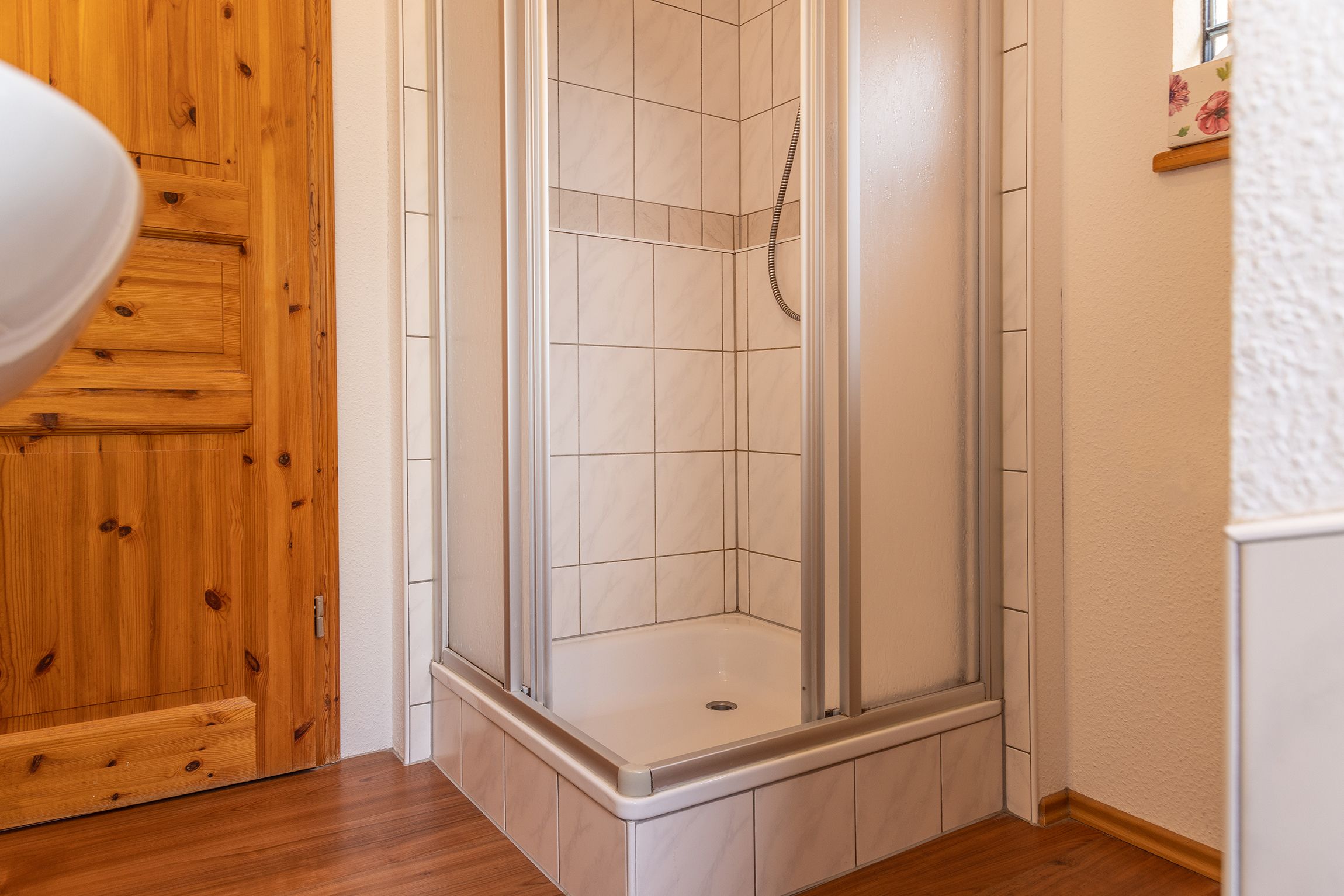 1 Schlafzimmer mit 2 Einzelbetten, Waschmaschine. Bad mit Dusche und WC.