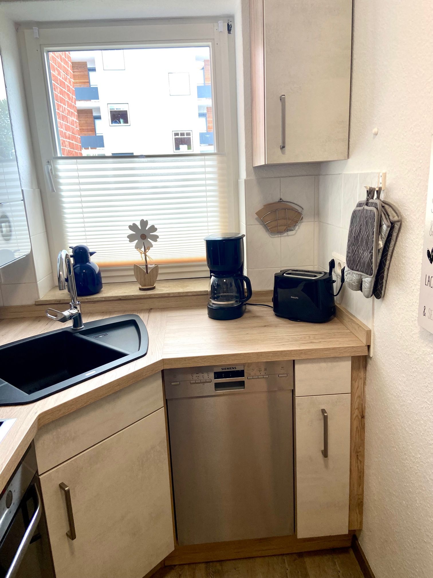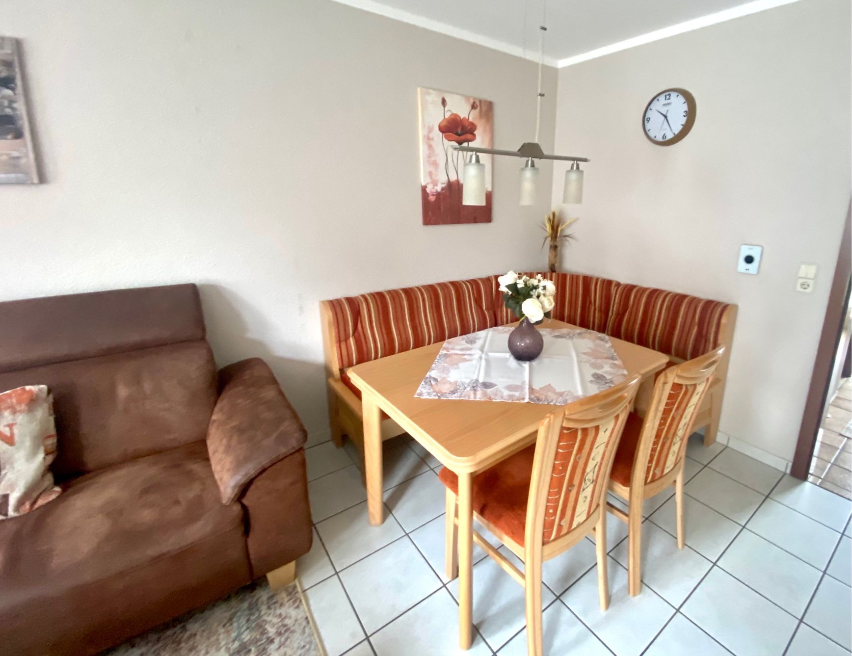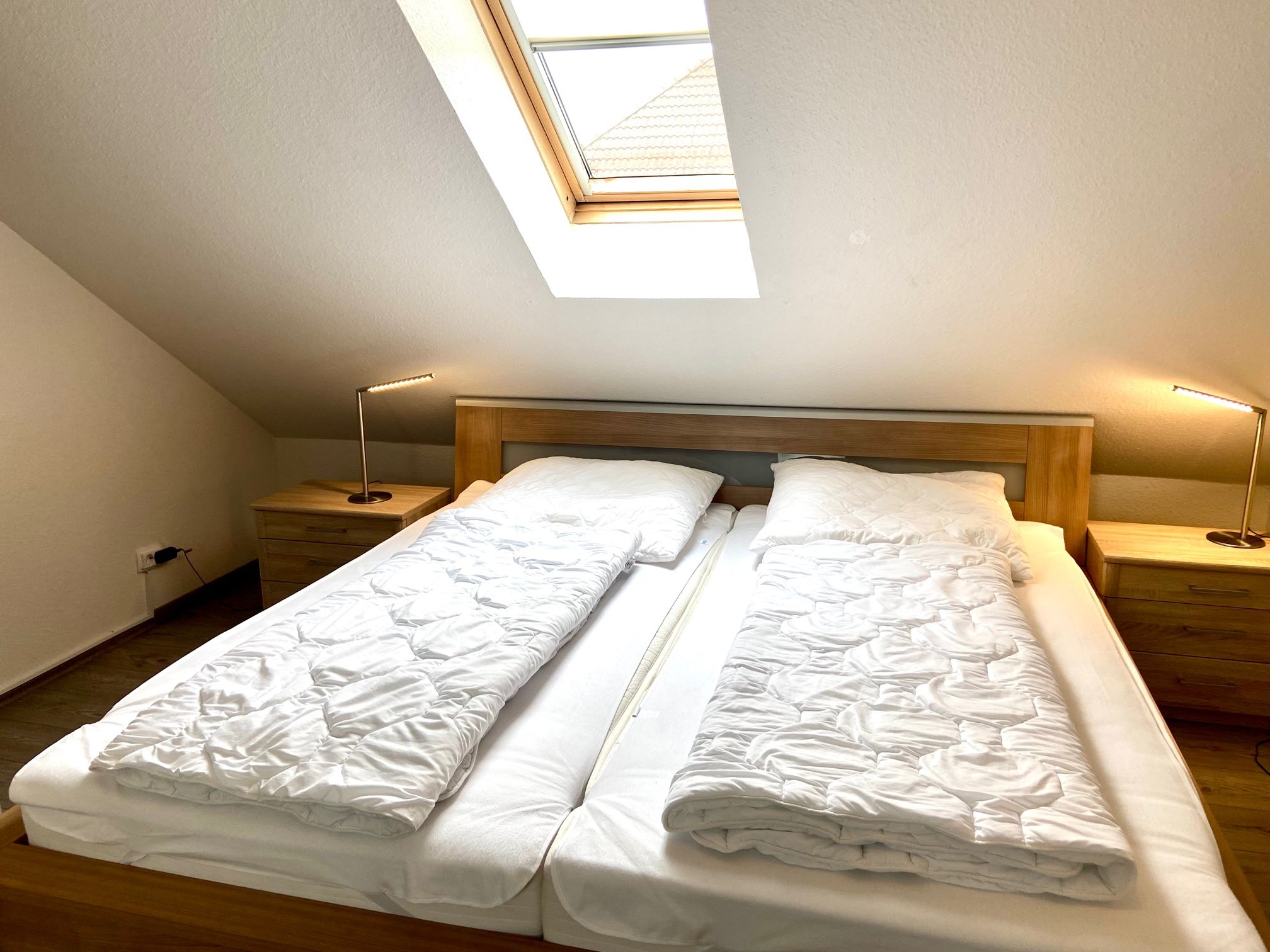 Hier mieten Sie ein tolles Reihenhaus in der Langen Wiese, nur wenige Minuten vom Strand entfernt. Das Haus hat im Erdgeschoss ein Wohn- / Esszimmer mit Zugang zur eingezäunten Terrasse, eine separate komplett ausgestattete Küche und ein Gäste-WC. Im 1.OG befindet sich das Duschbad, ein Schlafzimmer mit Doppelbett ( 90x200 cm) und Zugang zum kleinen Balkon. Das zweite Schlafzimmer ist ein Durchgangszimmer mit zwei Einzelbetten (90x190 cm) . Von hier gelangen Sie ins Dachgeschoss, wo sich das dritte Schlafzimmer mit einem Doppelbett (90x200 cm) befindet. Dieses Reihenmittelhaus liegt in strandnaher Lage und der PKW-Stellplatz befindet sich direkt vor dem Haus. Auch eine größere Familie findet hier ausreichend Schlafmöglichkeiten. Bis zu zwei liebgewonnene Vierbeiner dürfen Sie hier gerne begleiten! Außenrollläden sorgen für Schlafkomfort.