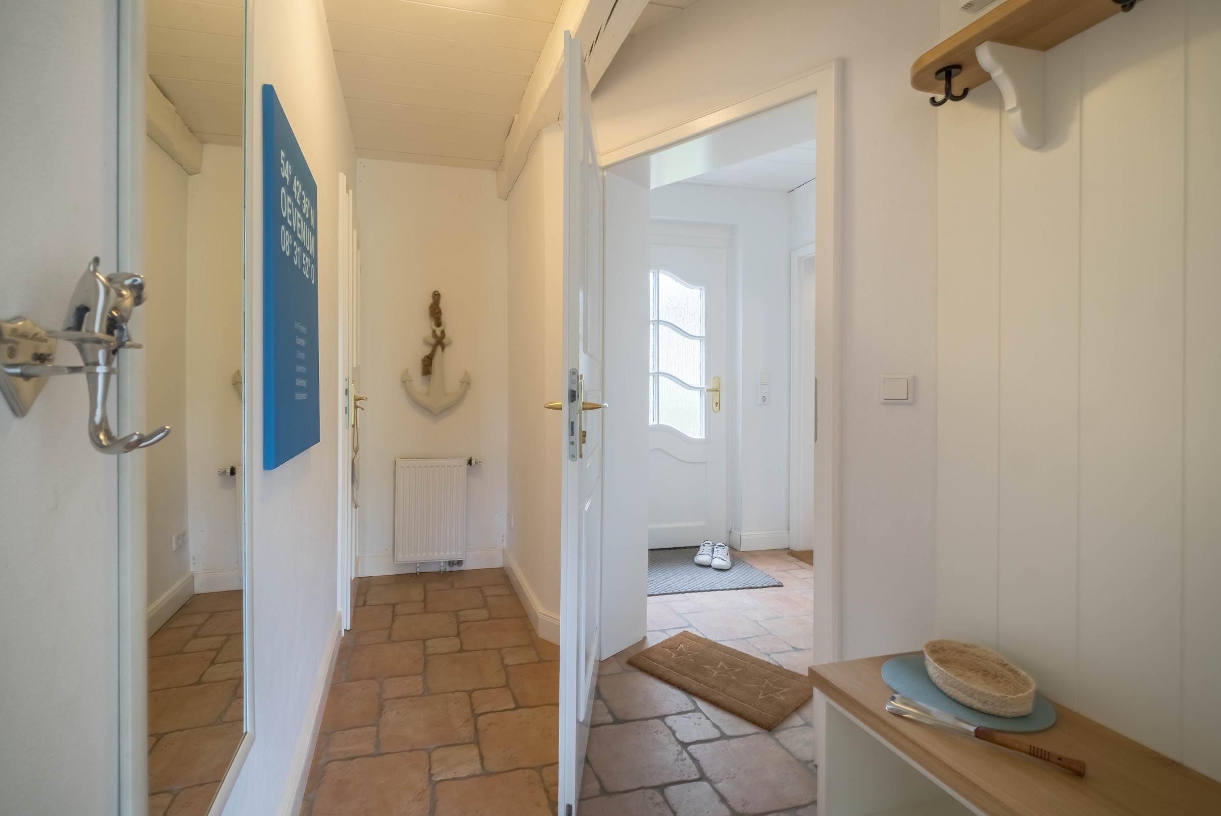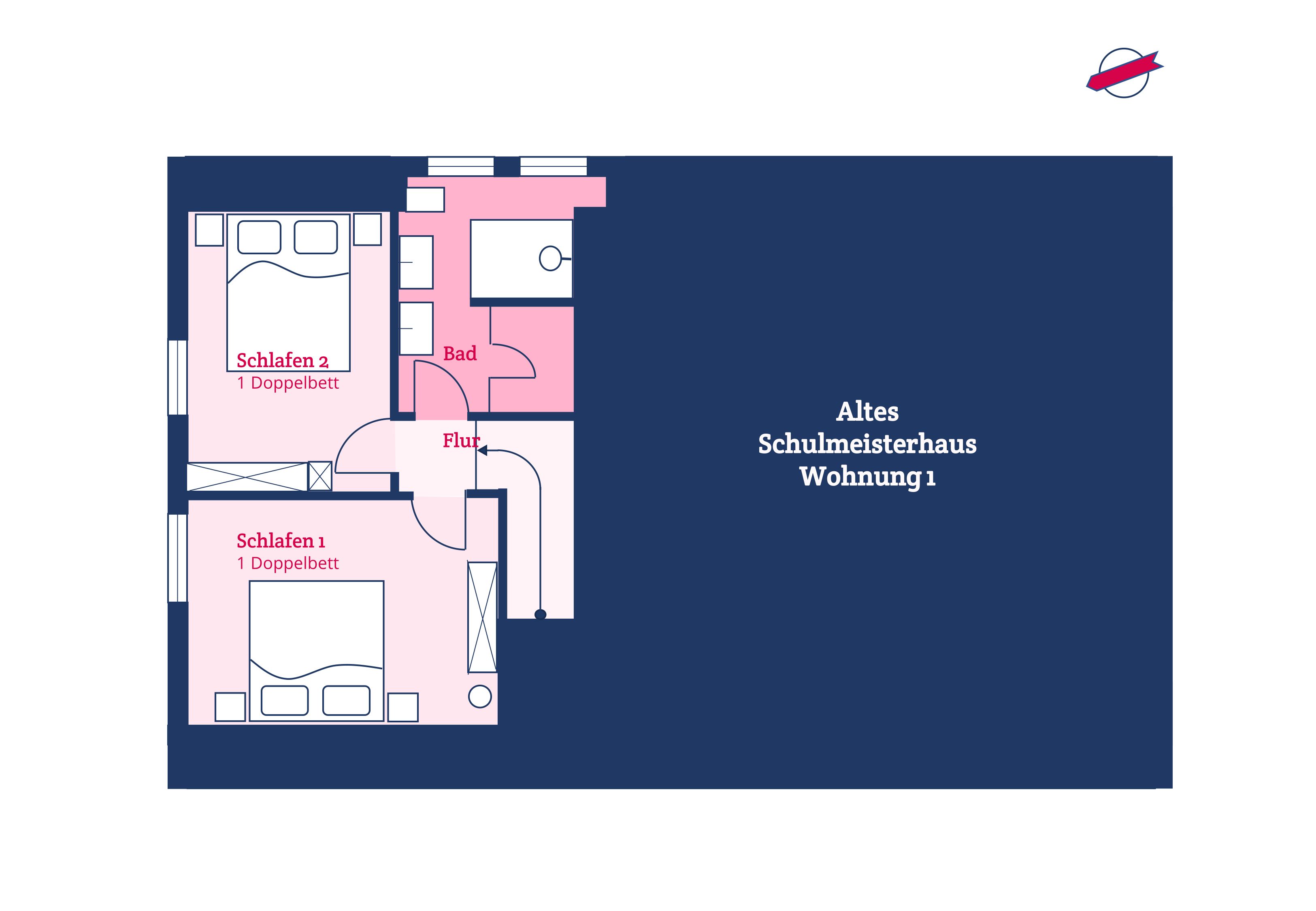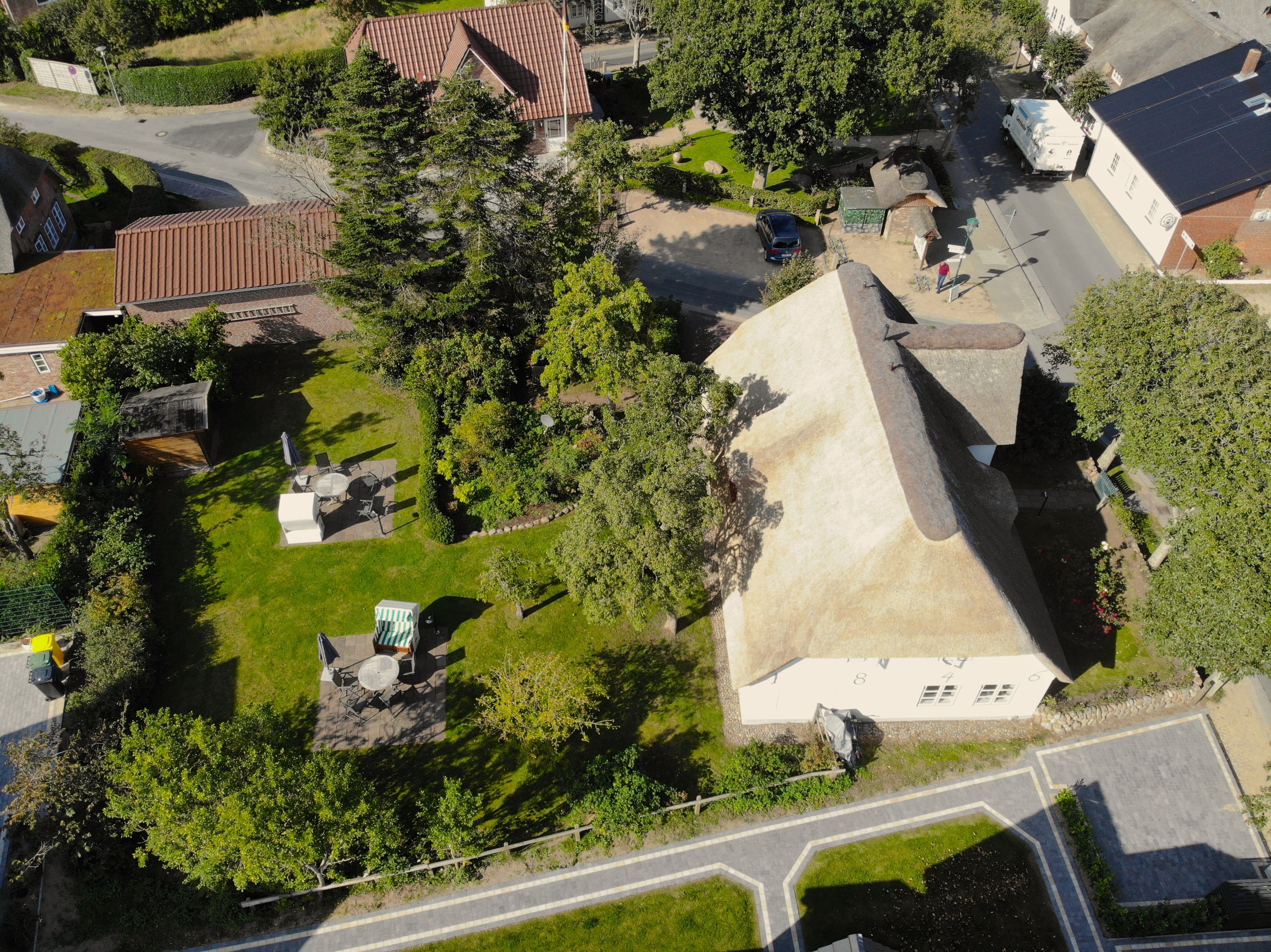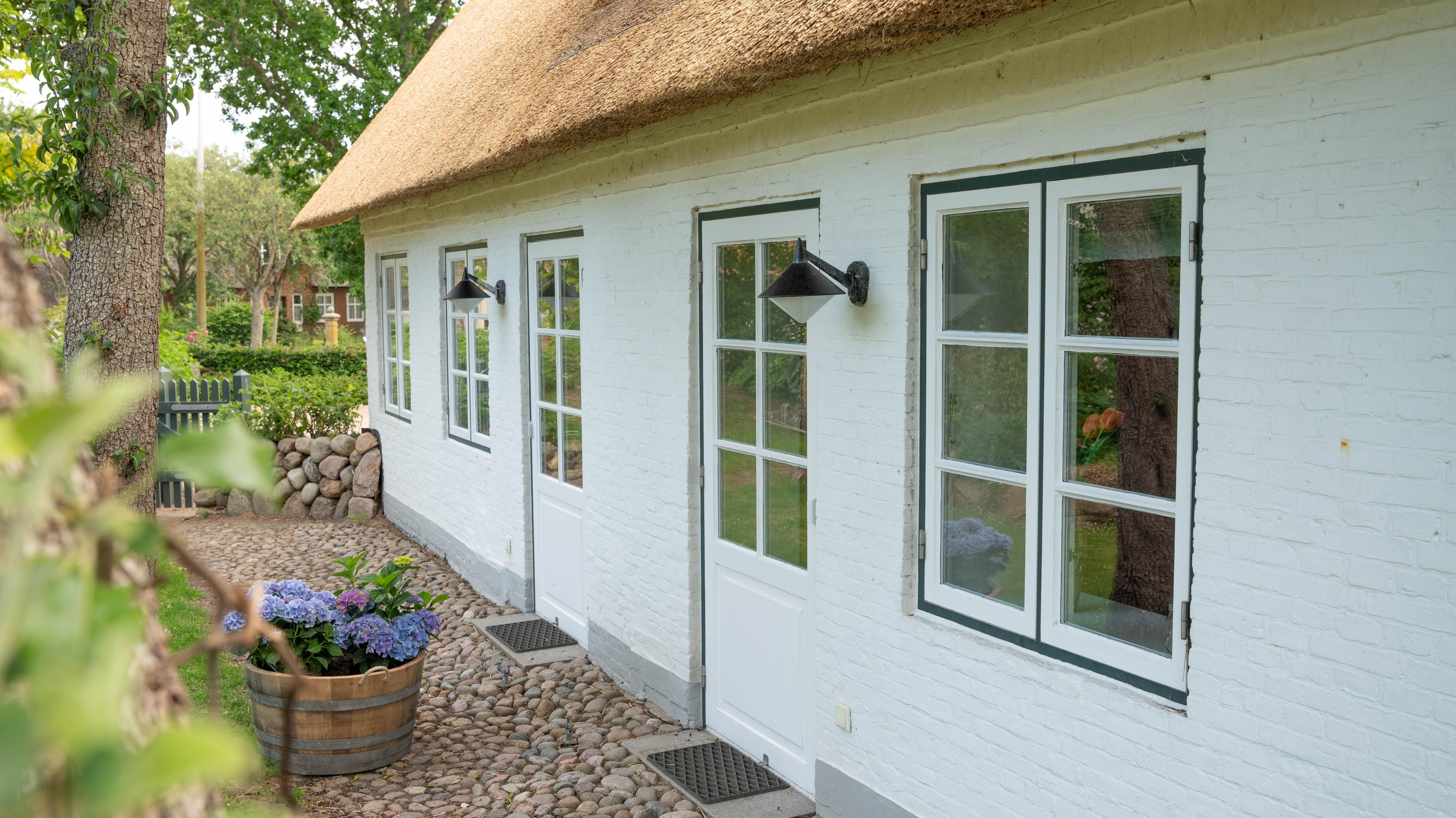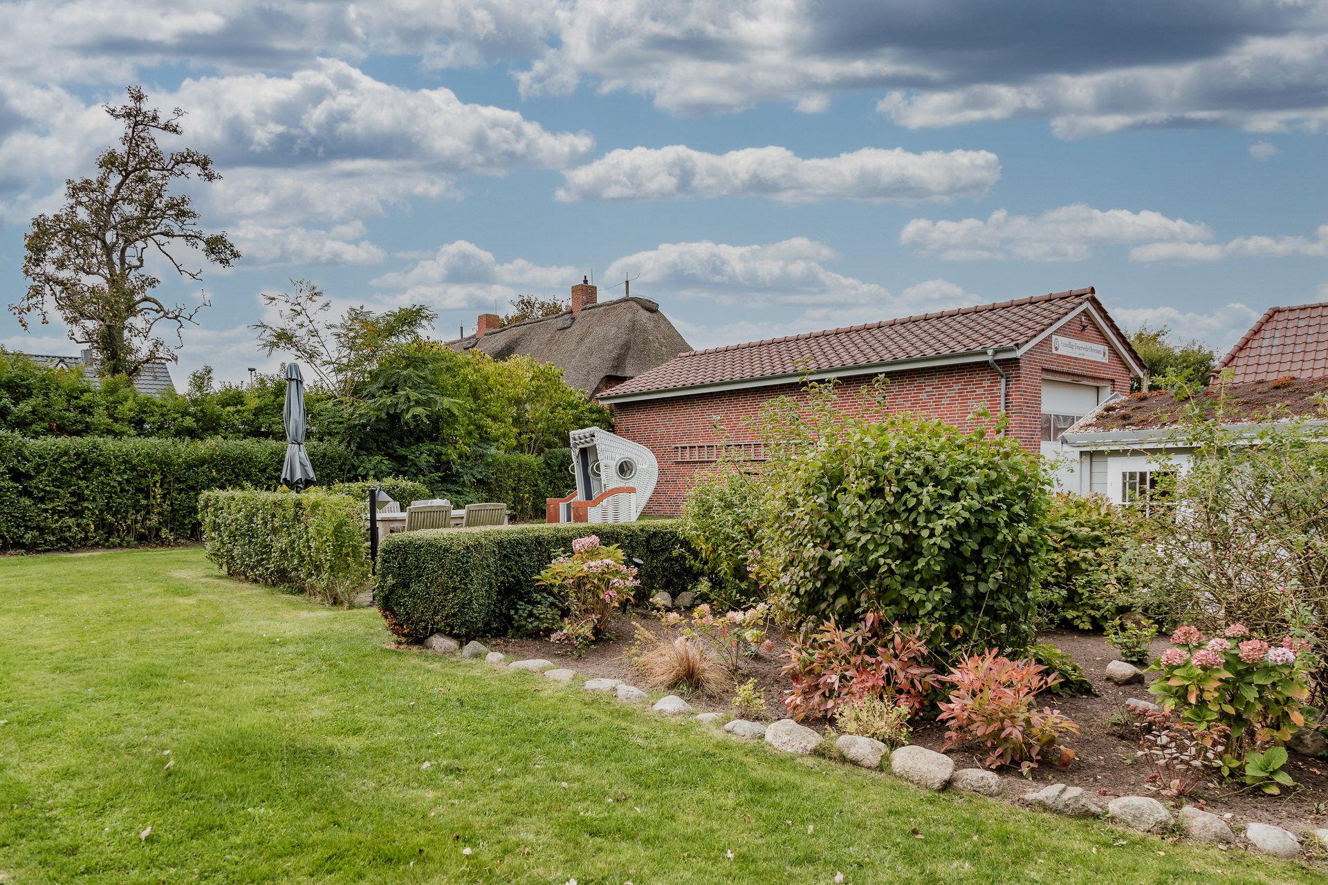 Das Schulmeisterhaus ist aufgeteilt in zwei Ferienwohnungen, die sich jeweils über das Erd- und Obergeschoss erstrecken. Links ist die Ferienwohnung "Große Pause" gelegen und rechts die "Kleine Ferien". Ein wunderschöner Garten mit alten Obstbäumen, von denen Sie sich selbstverständlich bedienen können, rundet das Ambiente ab. Jeder Ferienwohnung ist ein eigener Terrassenplatz zugeordnet, welcher neben dem Gartenmobiliar auch über einen Sonnenschirm und einen eigenen Strandkorb verfügt. Auch ein eigener Wohnungs-PKW-Stellplatz ist direkt am Haus gegeben.