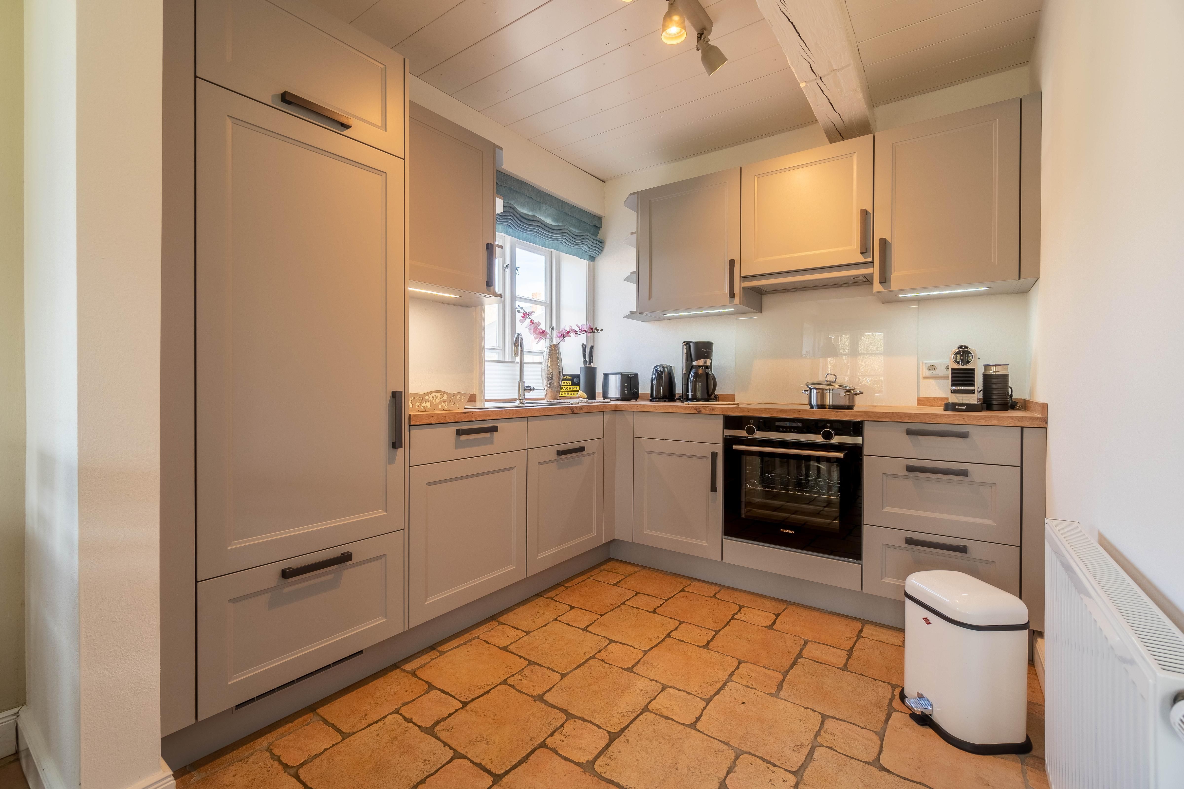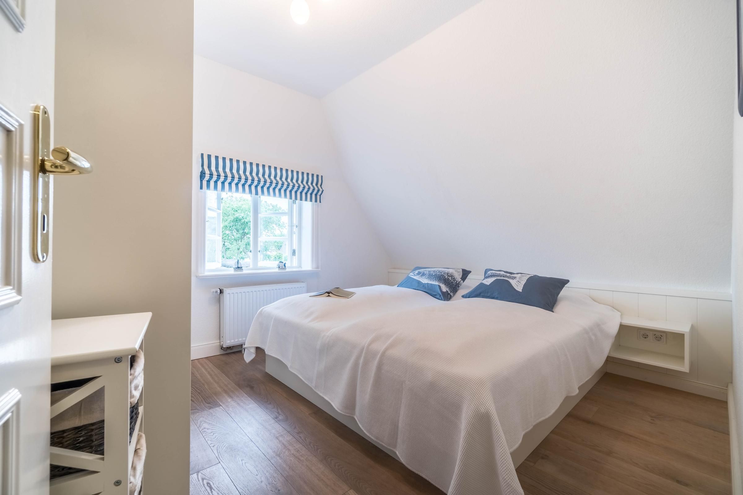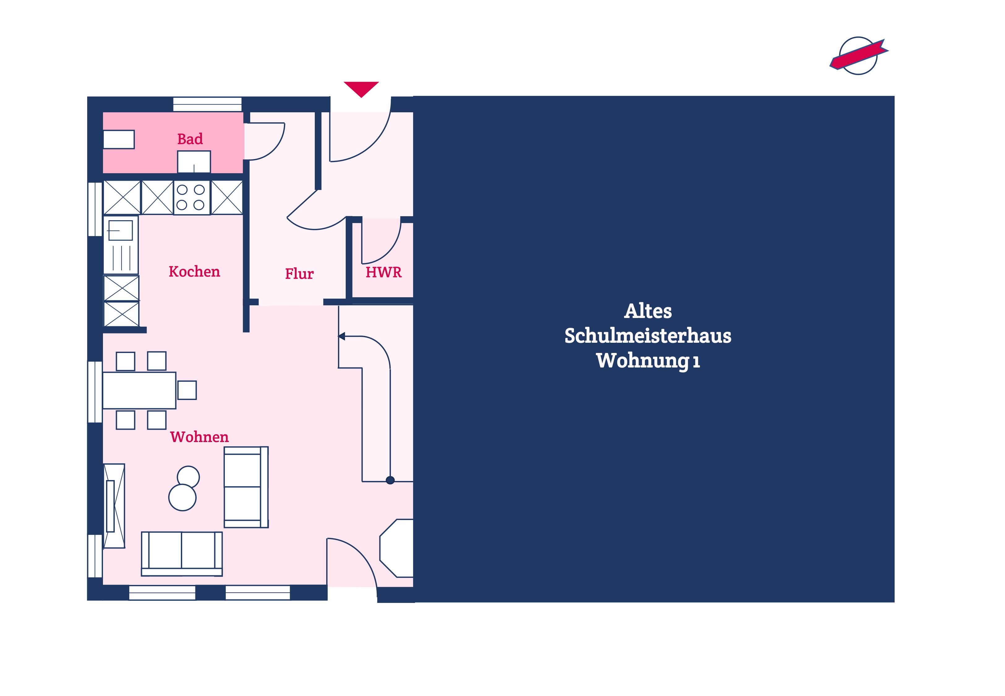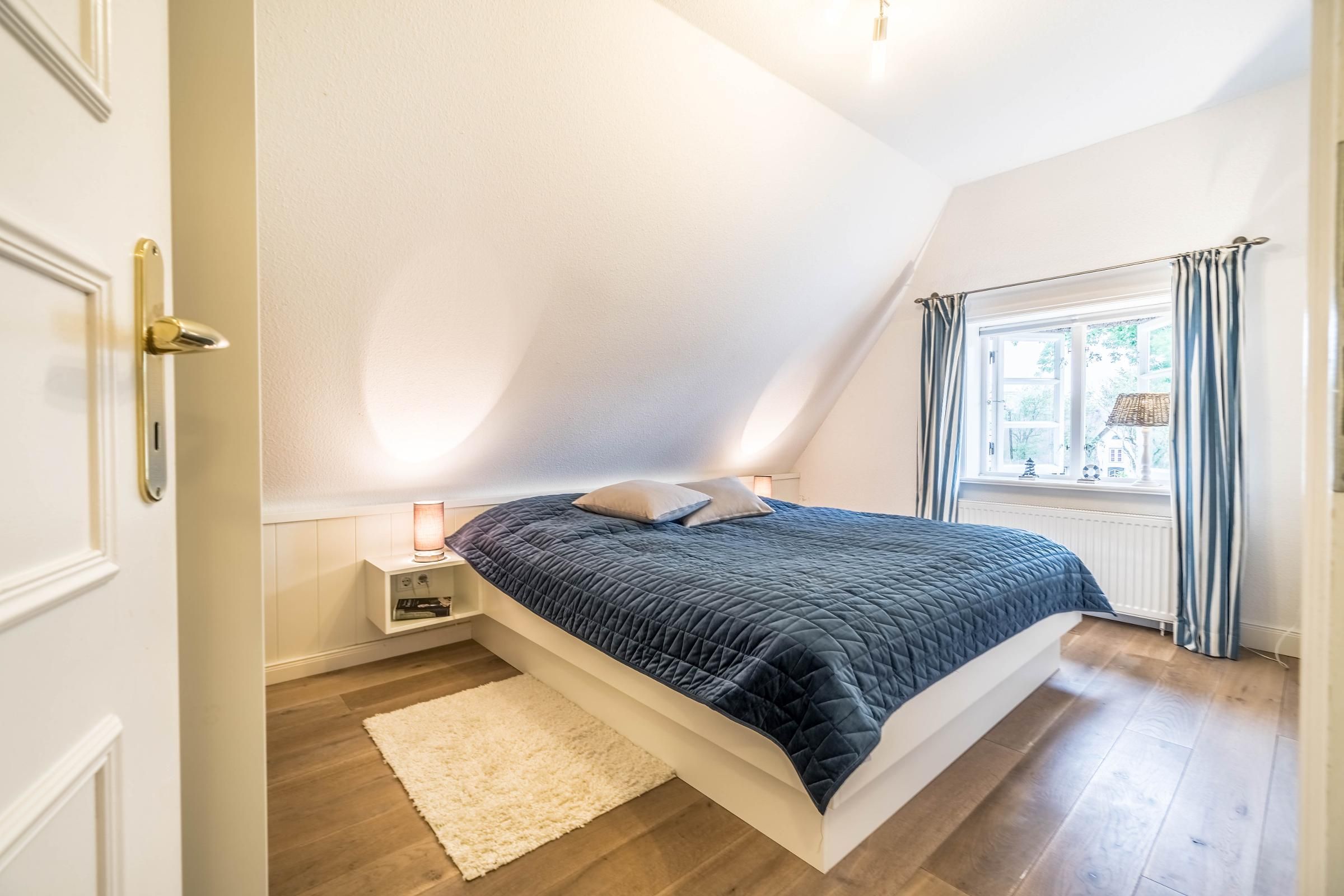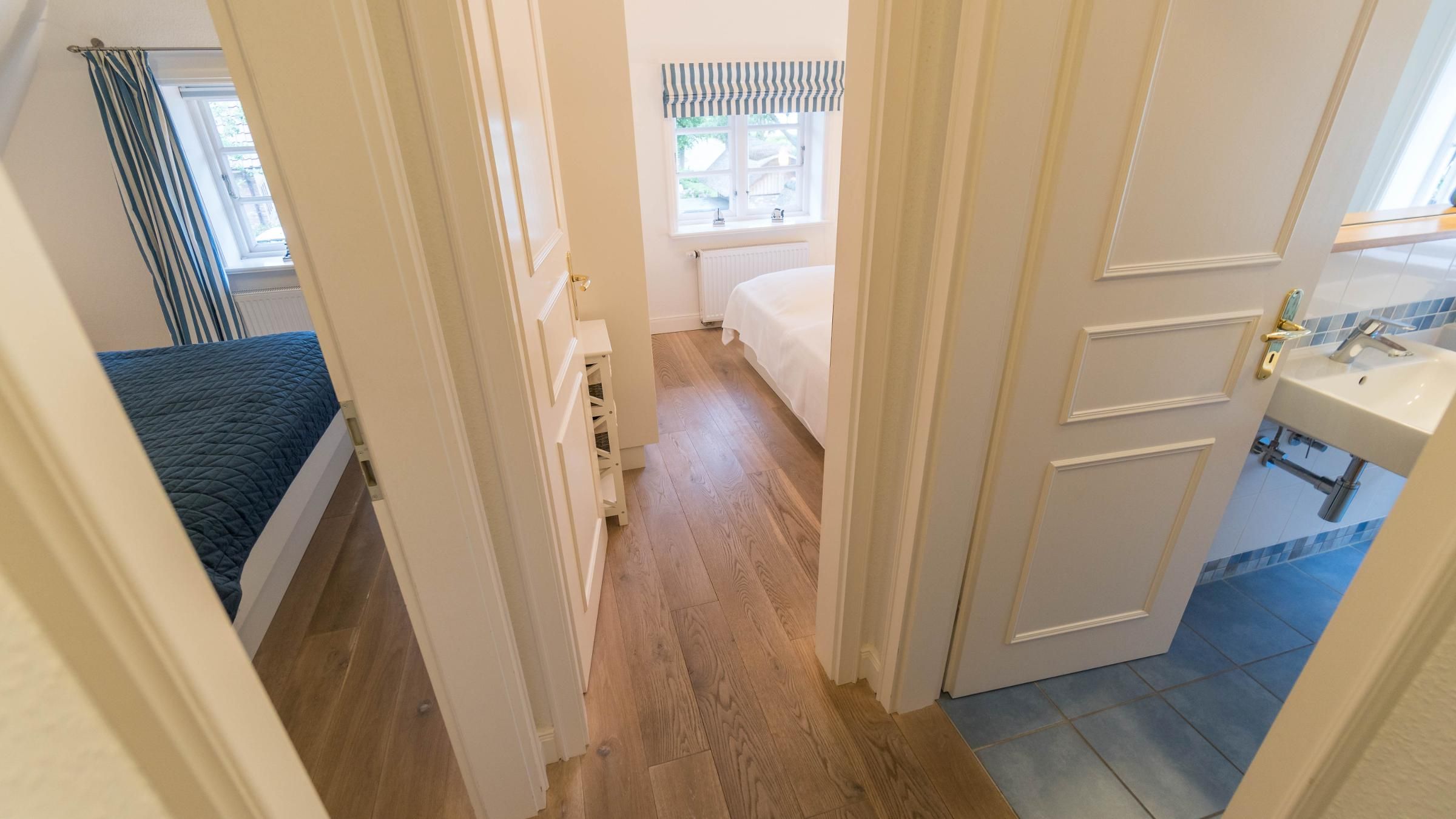 Das Schulmeisterhaus ist aufgeteilt in zwei Ferienwohnungen, die sich jeweils über das Erd- und Obergeschoss erstrecken. Links ist die Ferienwohnung "Große Pause" gelegen und rechts die "Kleine Ferien". Ein wunderschöner Garten mit alten Obstbäumen, von denen Sie sich selbstverständlich bedienen können, rundet das Ambiente ab. Jeder Ferienwohnung ist ein eigener Terrassenplatz zugeordnet, welcher neben dem Gartenmobiliar auch über einen Sonnenschirm und einen eigenen Strandkorb verfügt. Auch ein eigener Wohnungs-PKW-Stellplatz ist direkt am Haus gegeben.