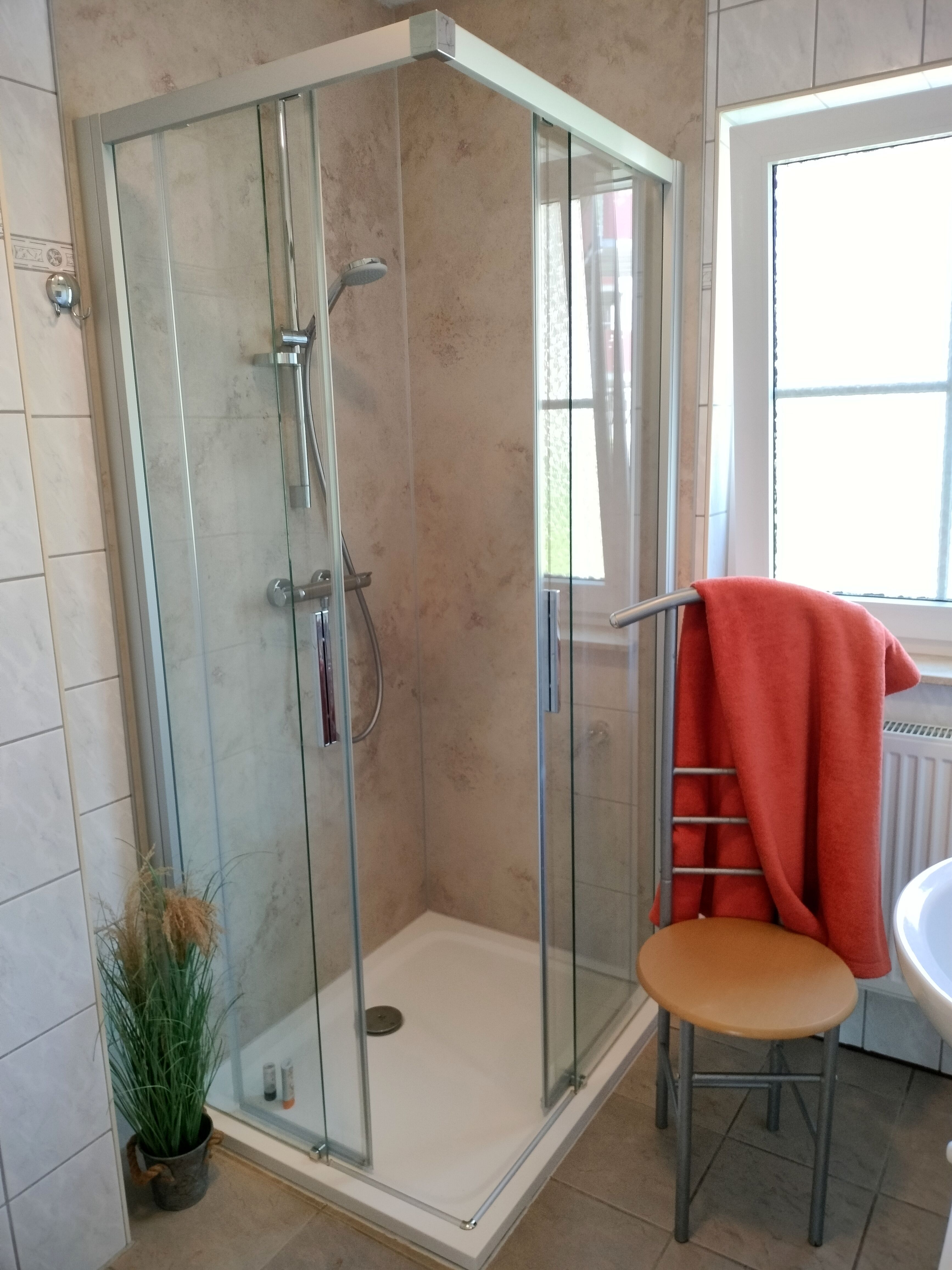 Das Gäste-WC befindet sich im OG, das Hauptbad mit ebenerdiger Dusche im EG.