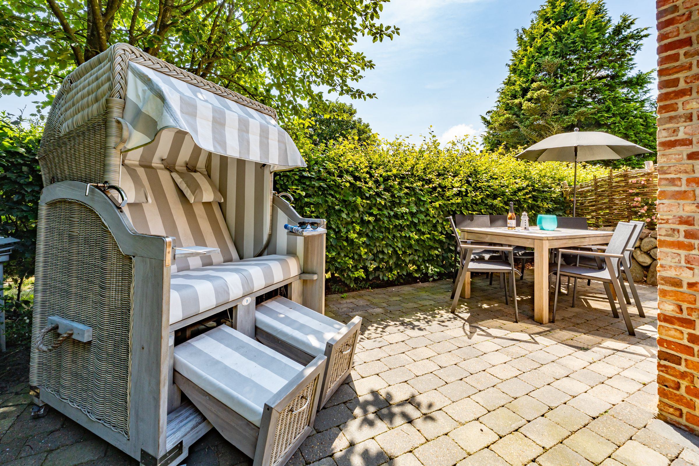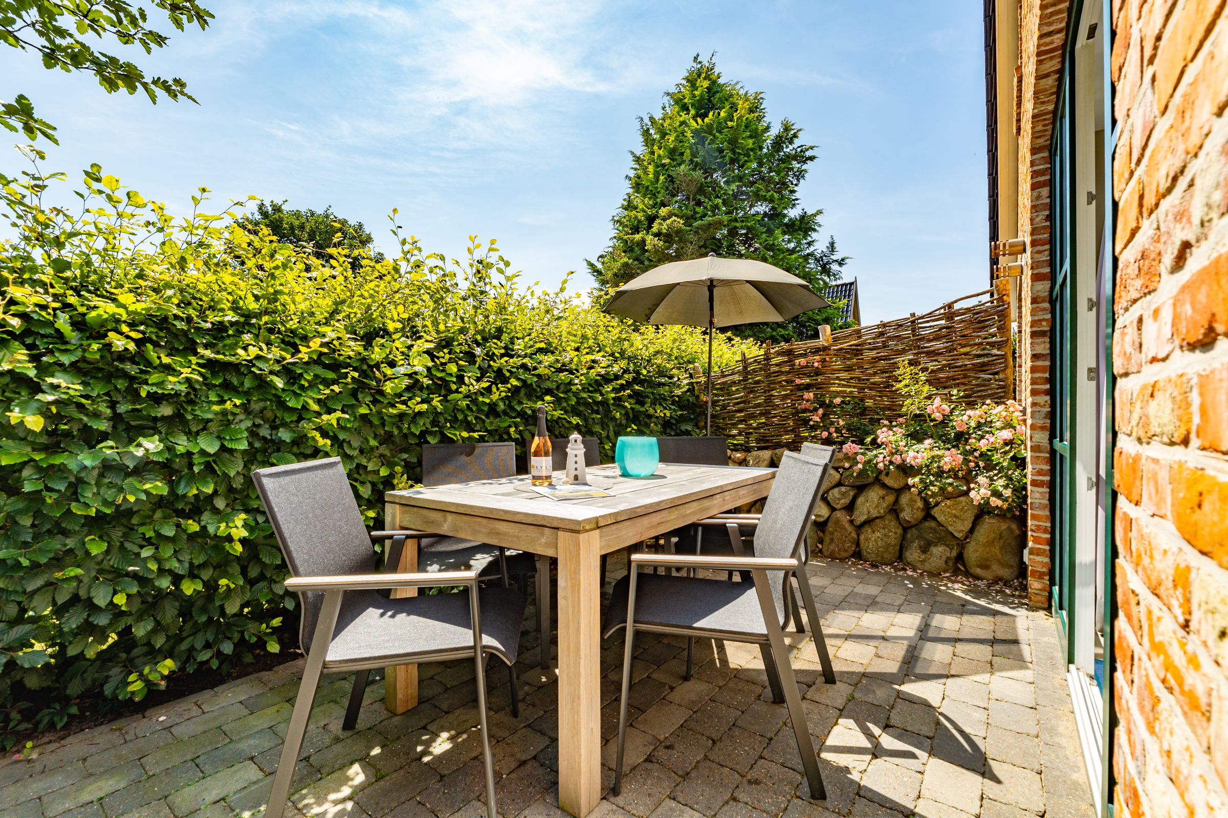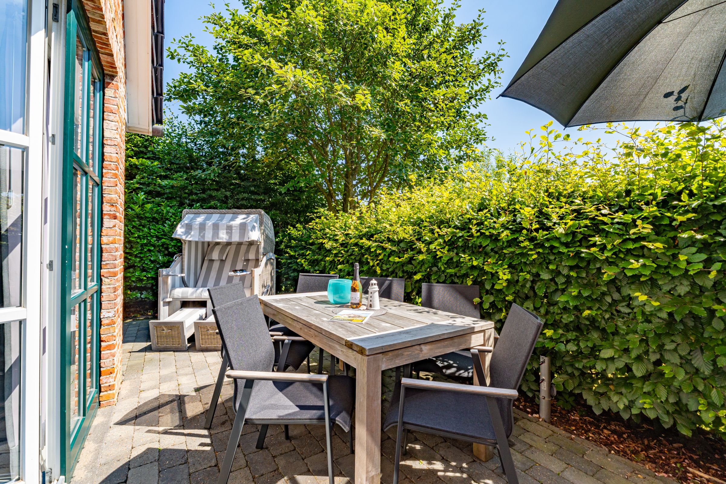 Das Anker Hus liegt ruhig gelegen, direkt am Friedrichshain. Im Erdgeschoss der Ferienhaushälfte betreten Sie als erstes den Eingangsbereich und Flur. Von dort aus haben Sie Zugang zum Gäste WC und zum hellen Wohn- und Essbereich mit offener Küche. Die offene Küche ist ausgestattet mit einem Backofen, Kaffeemaschine, Nespressomaschine, Mikrowelle und Geschirrspüler. Im hellen Wohn- und Essbereich erwartet Sie eine gemütliches Sofa, TV und ein Esstisch. Von hier aus haben Sie direkten Zugang zur Terrasse mit Gartenmöbeln und Strandkorb (saisonal). Über eine Treppe vom Flur aus erreichen Sie das Obergeschoss. Dort befindet sich ein Schlafzimmer mit Doppelbett, TV und ein Badezimmer mit Badewanne, Dusche und Doppelwaschtisch. Vom Wohn- und Essbereich erreichen Sie über eine Treppe das Souterrain. Hier befindet sich das zweite Schlafzimmer mit Doppelbett und TV und weiteres Badezimmer mit Dusche, Waschbecken und WC. Bitte beachten Sie, dass das Anker Hus ein Nichtraucherhaus ist.
