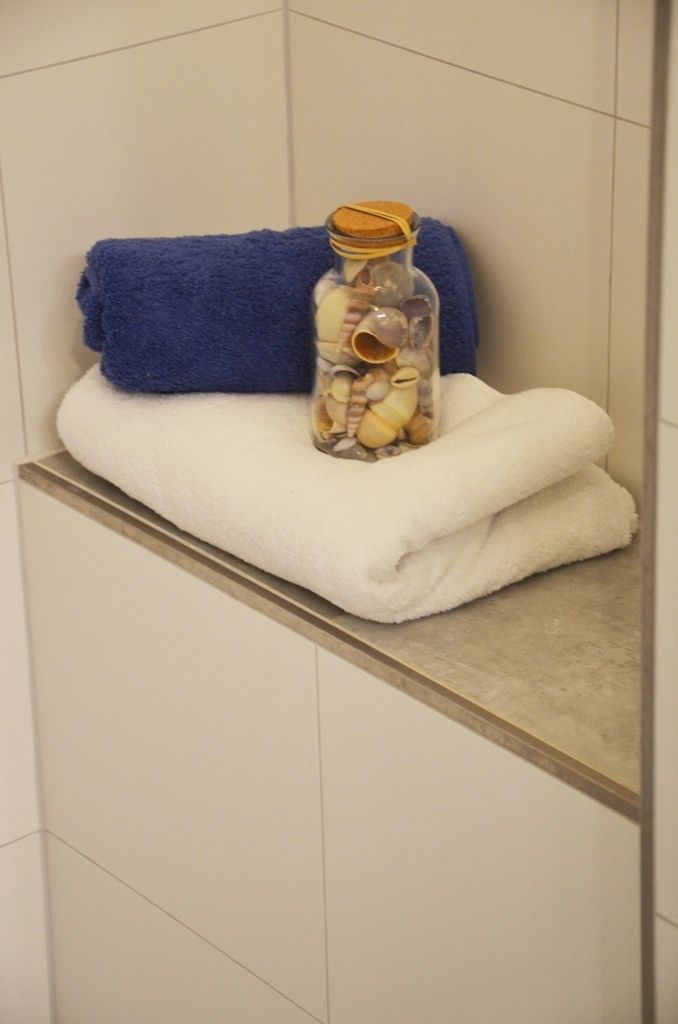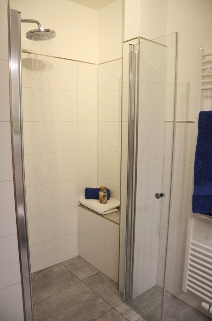 Bad und Sanitär: bodentiefe, barrierefreie Sommerregendusche, Waschtischanlage mit Spiegel, WC, Handtuchheizung, Handtücher auf Anfrage