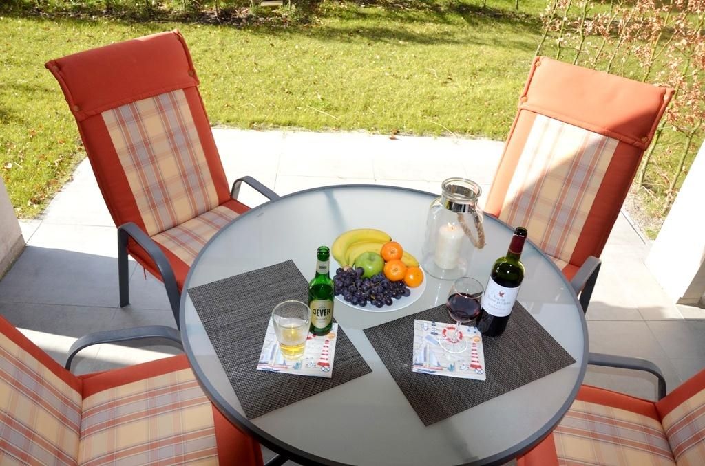 Durch den Flur geht es in den großzügig geschnittenen Wohn- und Essbereich. Der große Esstisch mit Schwingstühlen und die gemütliche Couchecke mit zusätzlichem Sessel bieten viel Platz zum Erholen und Relaxen für die ganze Familie. Die Couch kann zum voll funktionalen Doppelbett ausgeweitet werden und bietet für 2 zusätzliche Personen ausreichend Platz im Wohnzimmer. Der Essbereich mit topmoderner Küche ist mit besten Markengeräten ausgestattet. Vom sehr geschmackvoll eingerichteten Wohn-Essbereich gelangen Sie auf die großzügige Terrasse mit eigenem Gartenanteil und viel Platz zum Spielen und Entspannen.