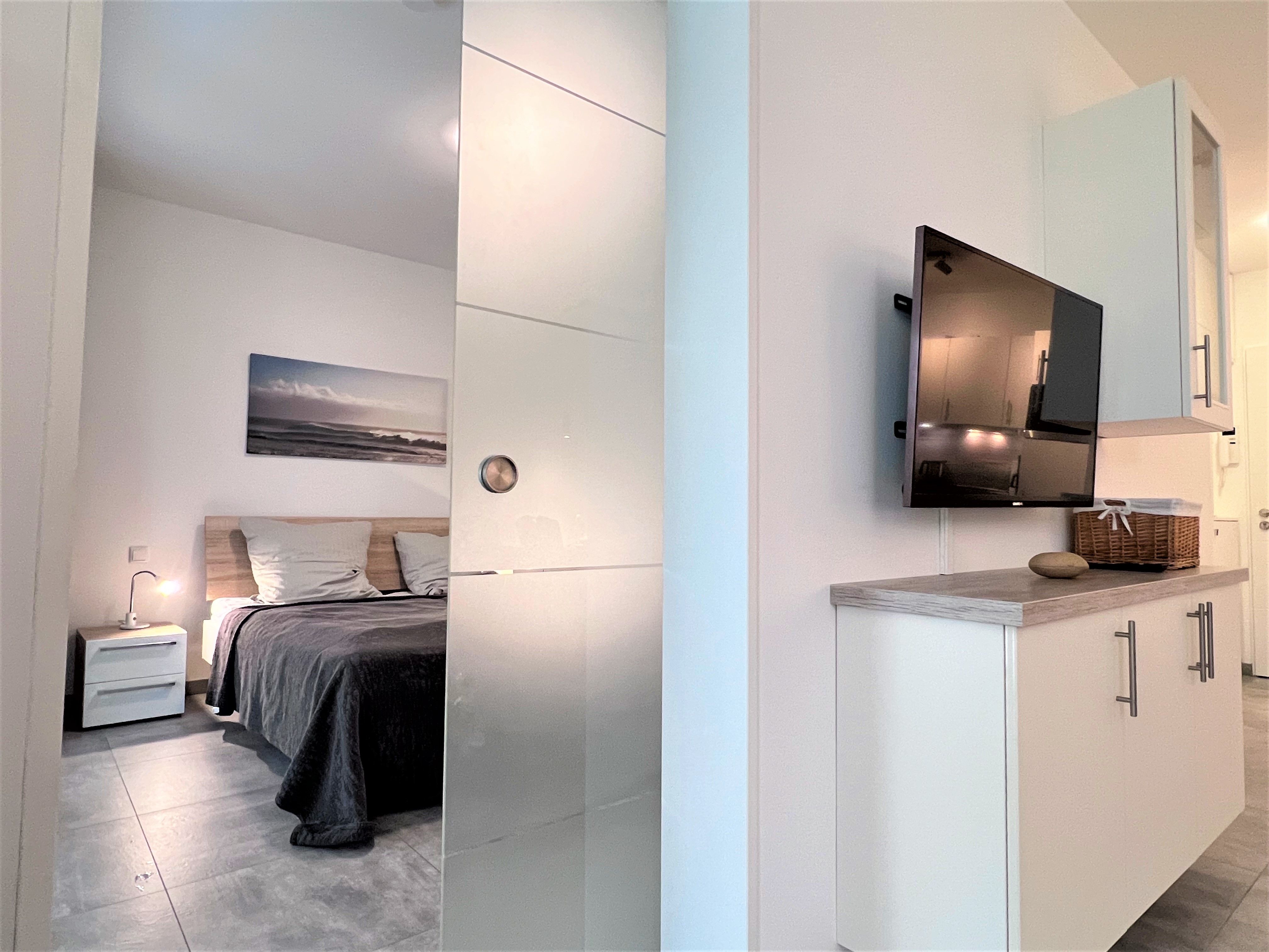 Das barrierefreie Apartment ist durchgehend mit Fußbodenheizung, WLAN und einer intelligenten Beleuchtung ausgestattet.