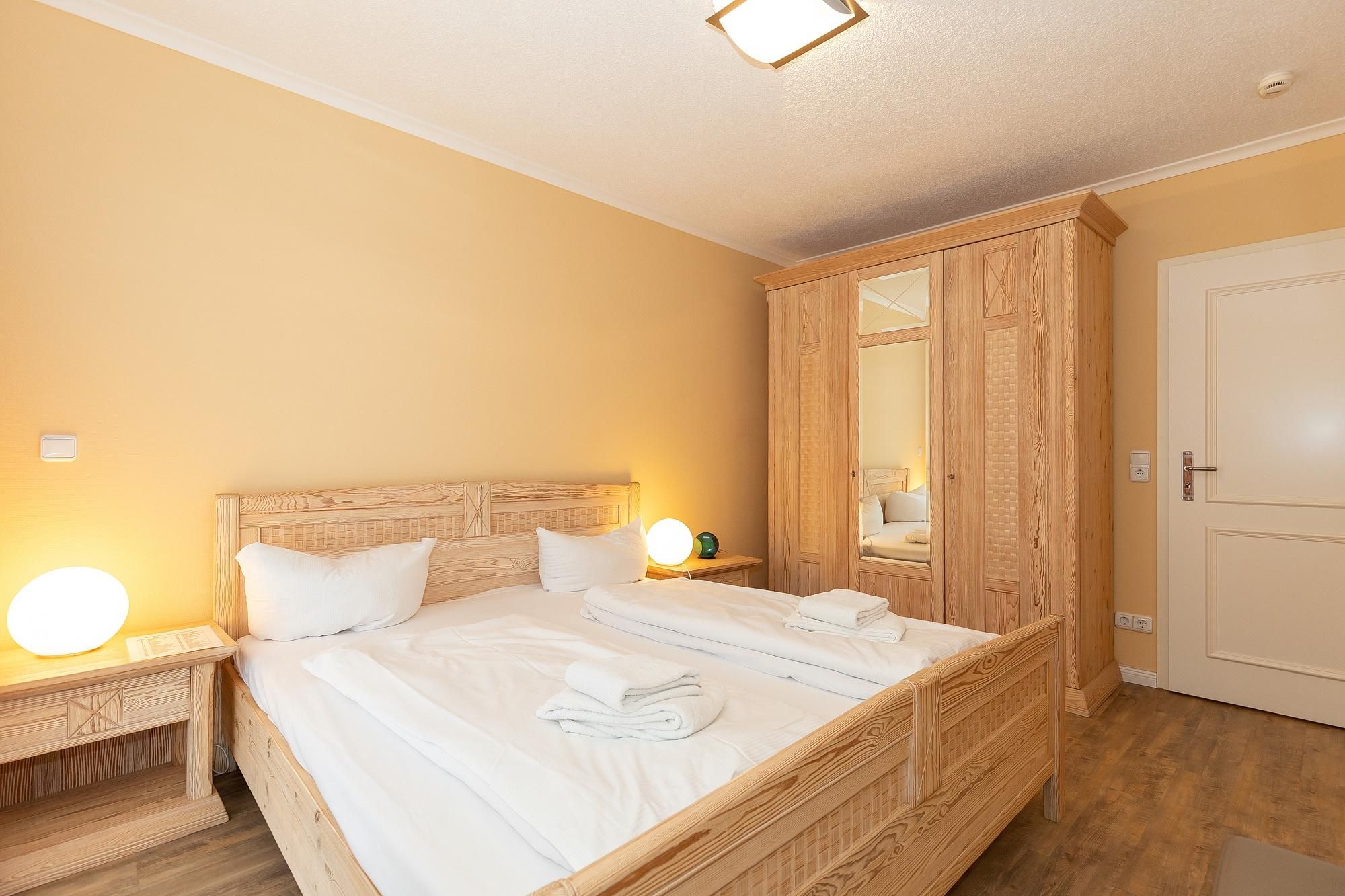 Bitte beachtet, dass es sich bei diesem Apartment um ein Nichtraucher-Apartment handelt. Haustiere sind herzlich willkommen. Unter der Wohnung befindet sich ein Restaurant mit Außenbereich. Die Ferienanlage verfügt über einen Fahrstuhl, eine Münzwaschmaschine und –trockner sowie über einen abschließbaren Abstellraum für Fahrräder. Ein Tiefgaragenstellplatz im Doppelparksystem mit einem Maximalgewicht von 2.000 kg (max. Durchfahrtshöhe 1,70 m, max. Fahrzeuglänge 5 m, max. Fahrzeugbreite 1,90 m) kann auf Wunsch gegen Aufpreis hinzugebucht werden. Bademäntel erhaltet ihr gegen eine kleine Leihgebühr in unserem Service-Büro.