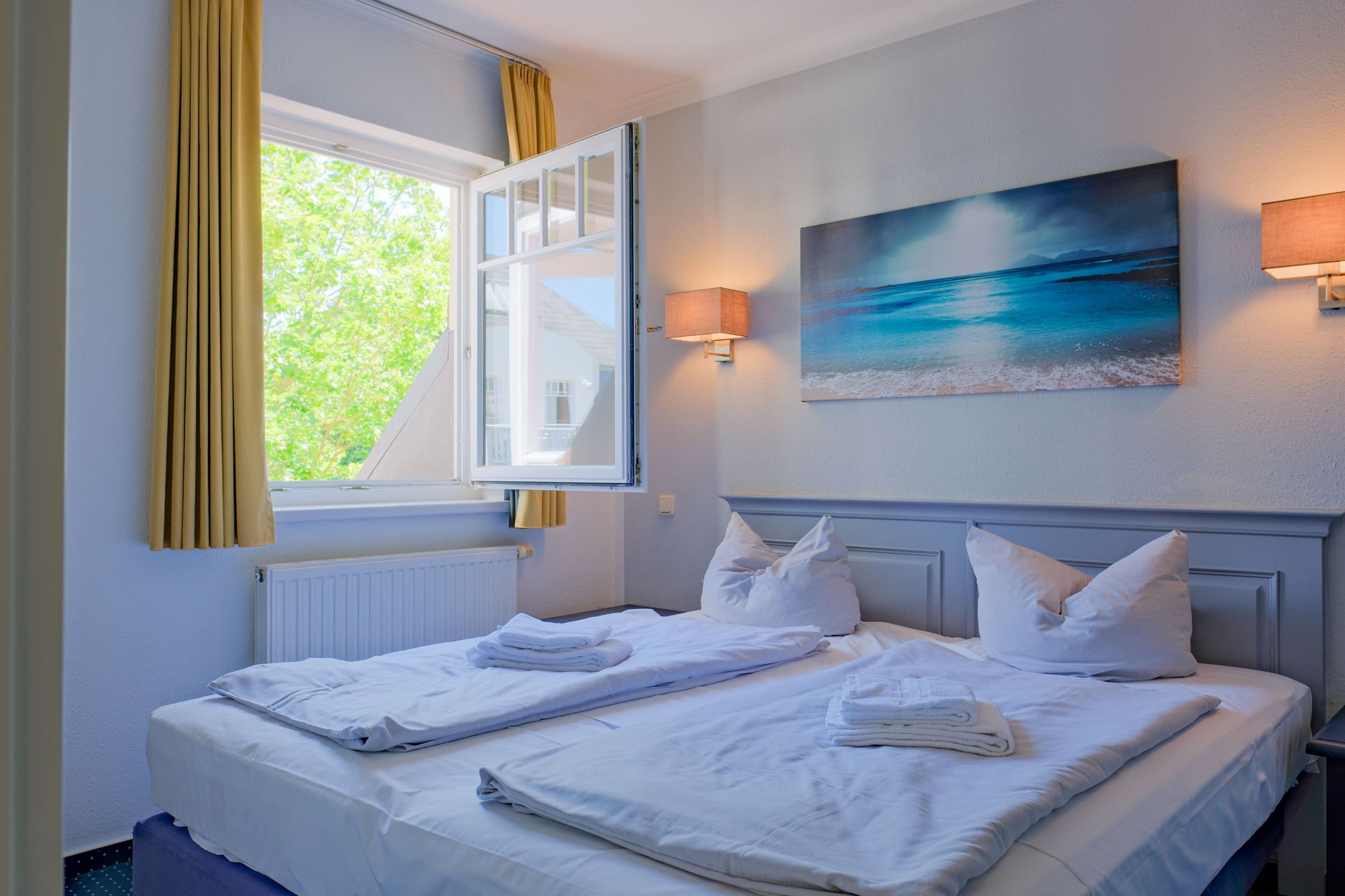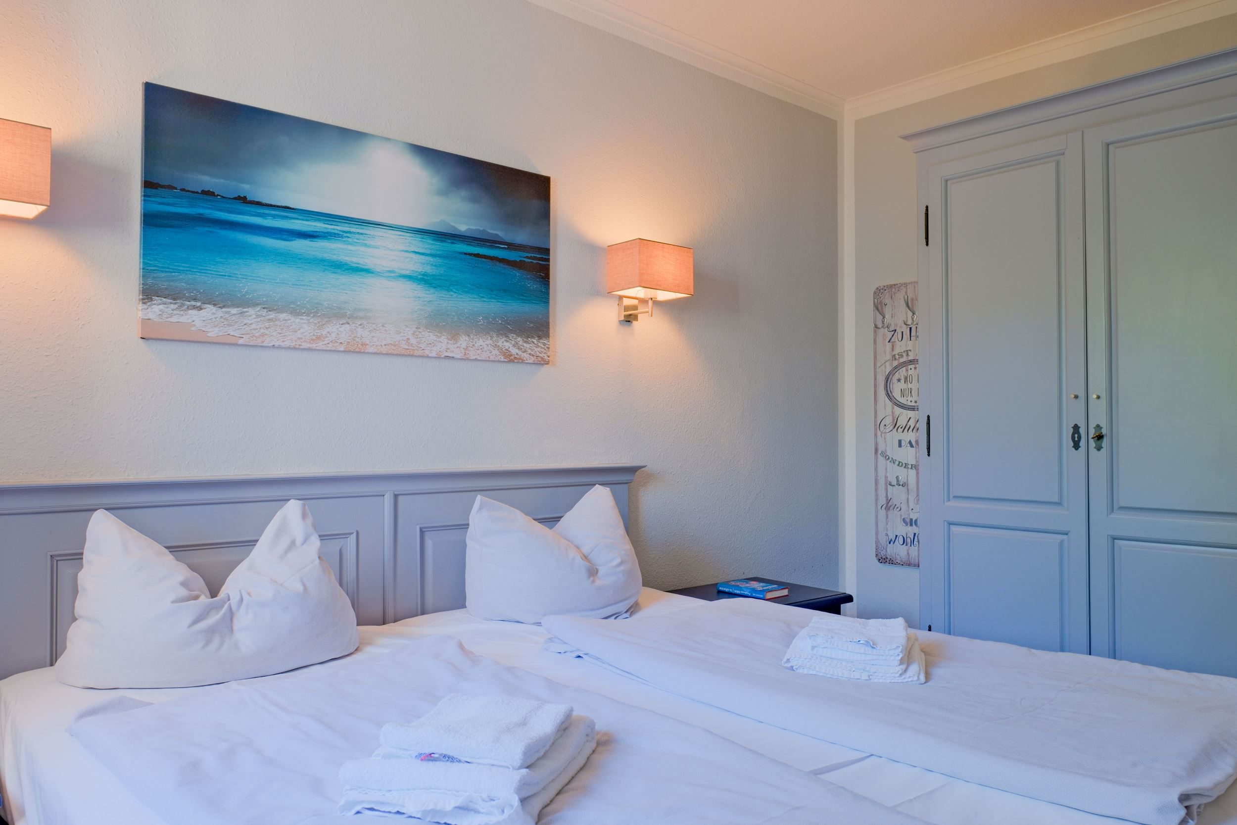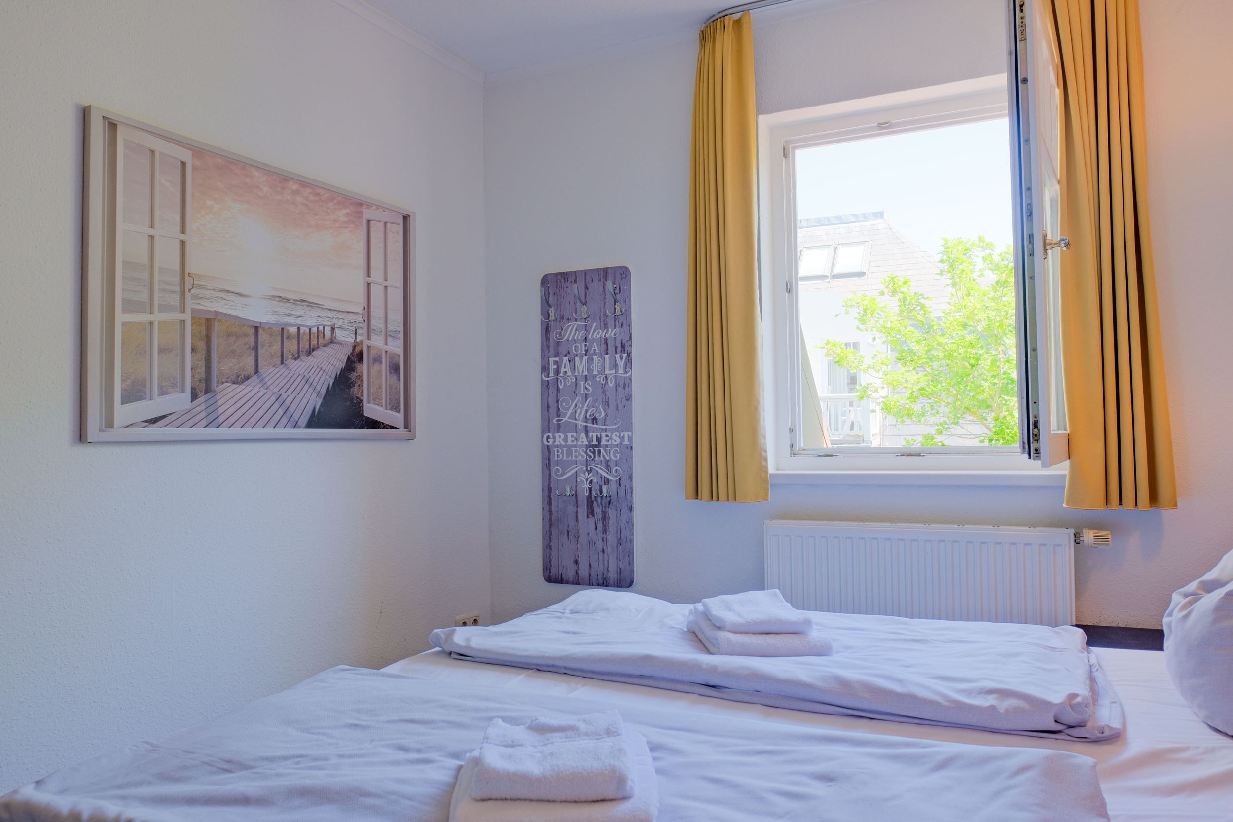 Das großzügige Dreizimmer-Appartement im zweiten Obergeschoss empfängt Sie mit lichtdurchfluteten Räumen und einem harmonischen Zusammenspiel aus zeitlosem Design und maritimer Eleganz. Zwei behagliche Schlafzimmer bieten Platz für bis zu vier Personen – ideal für Paare oder Familien. Liebevolle Details und eine warme Farbgestaltung schaffen eine Atmosphäre zum Ankommen und Durchatmen.