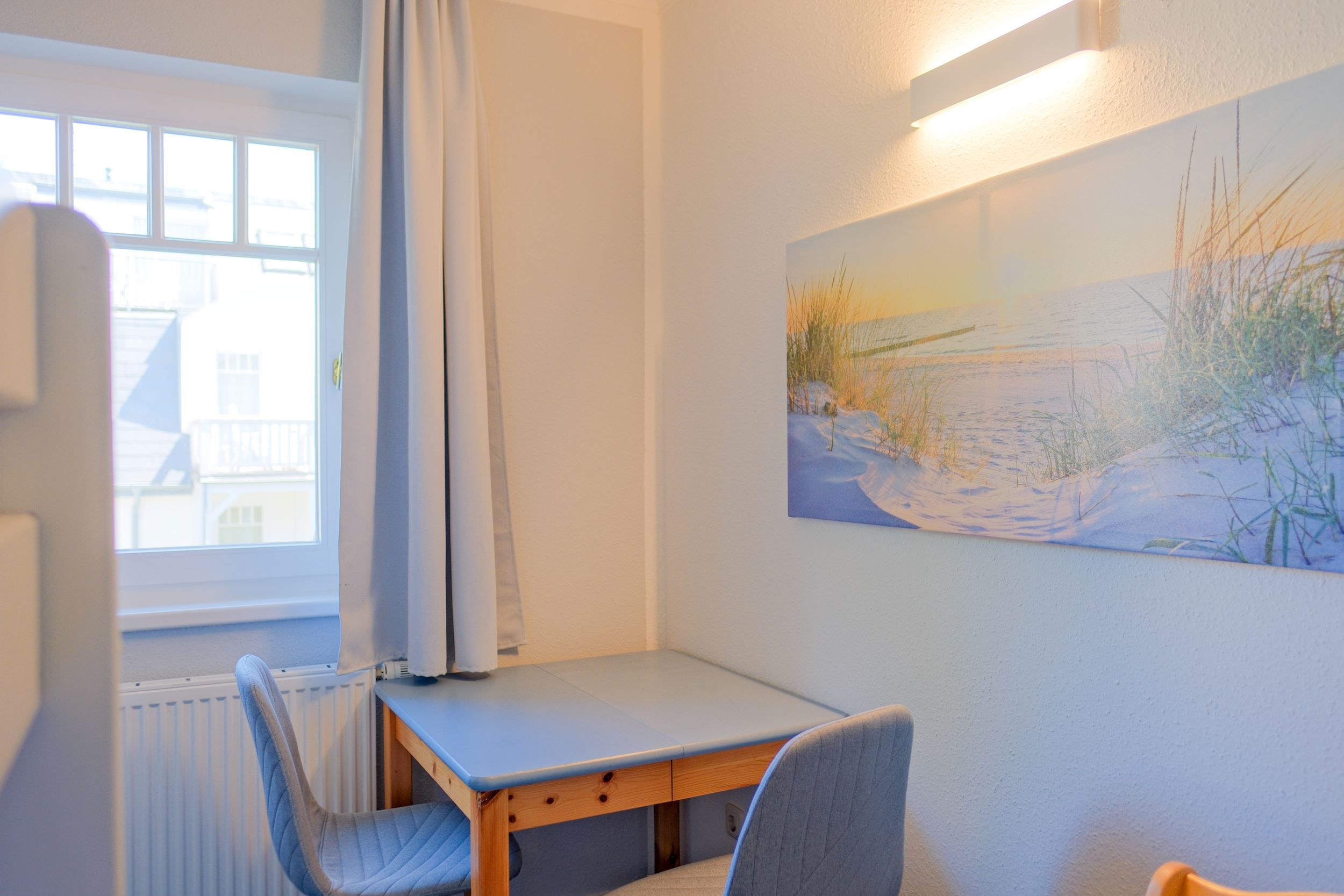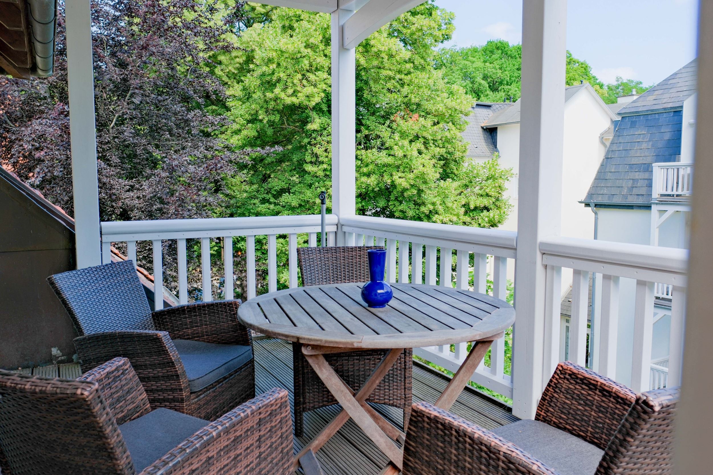 Der Balkon mit Ostausrichtung ist Ihr Platz für den perfekten Start in den Tag. Bei einer Tasse Kaffee genießen Sie hier die ersten Sonnenstrahlen, den Blick auf die Ostseepromenade und das leise Rauschen der Wellen.