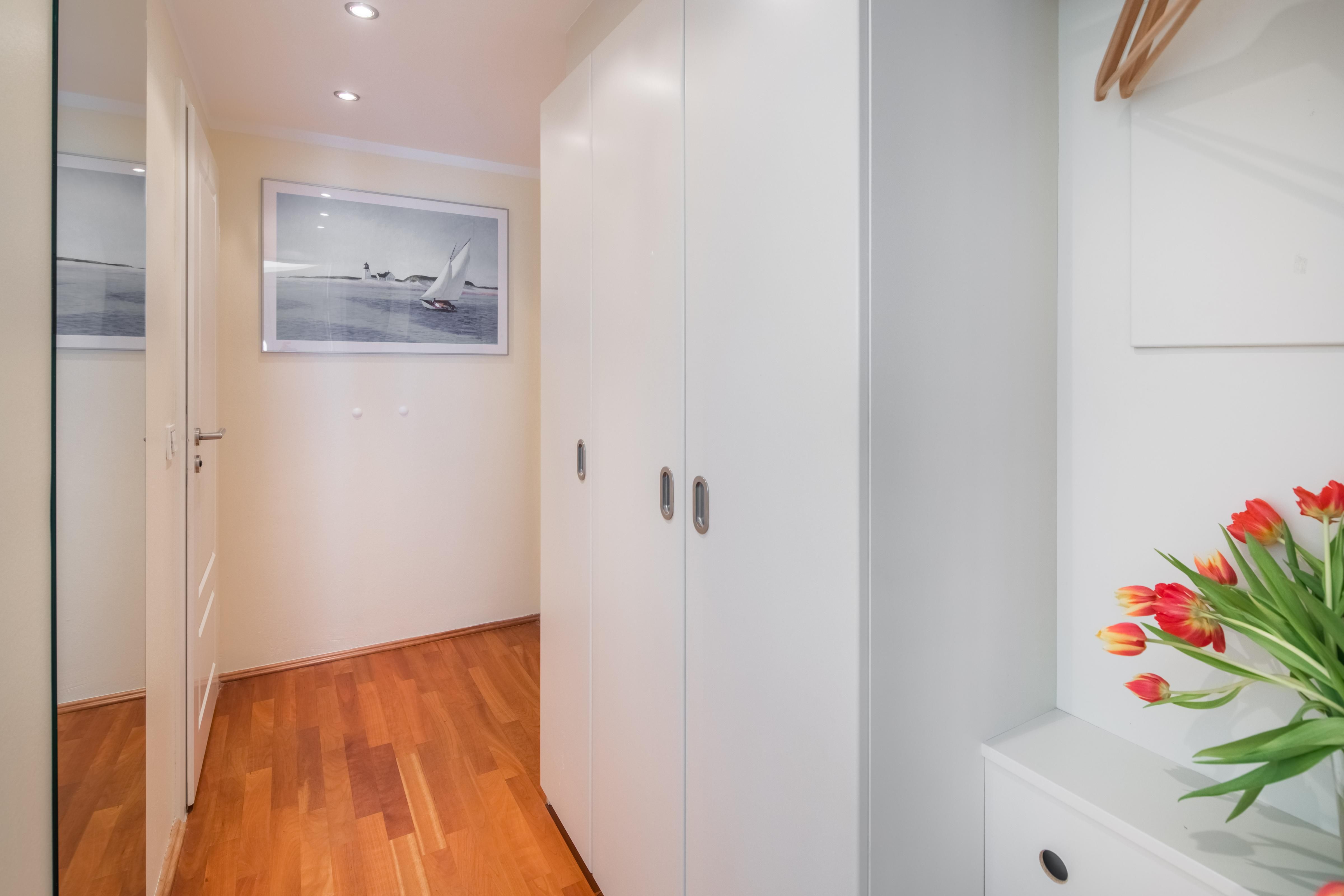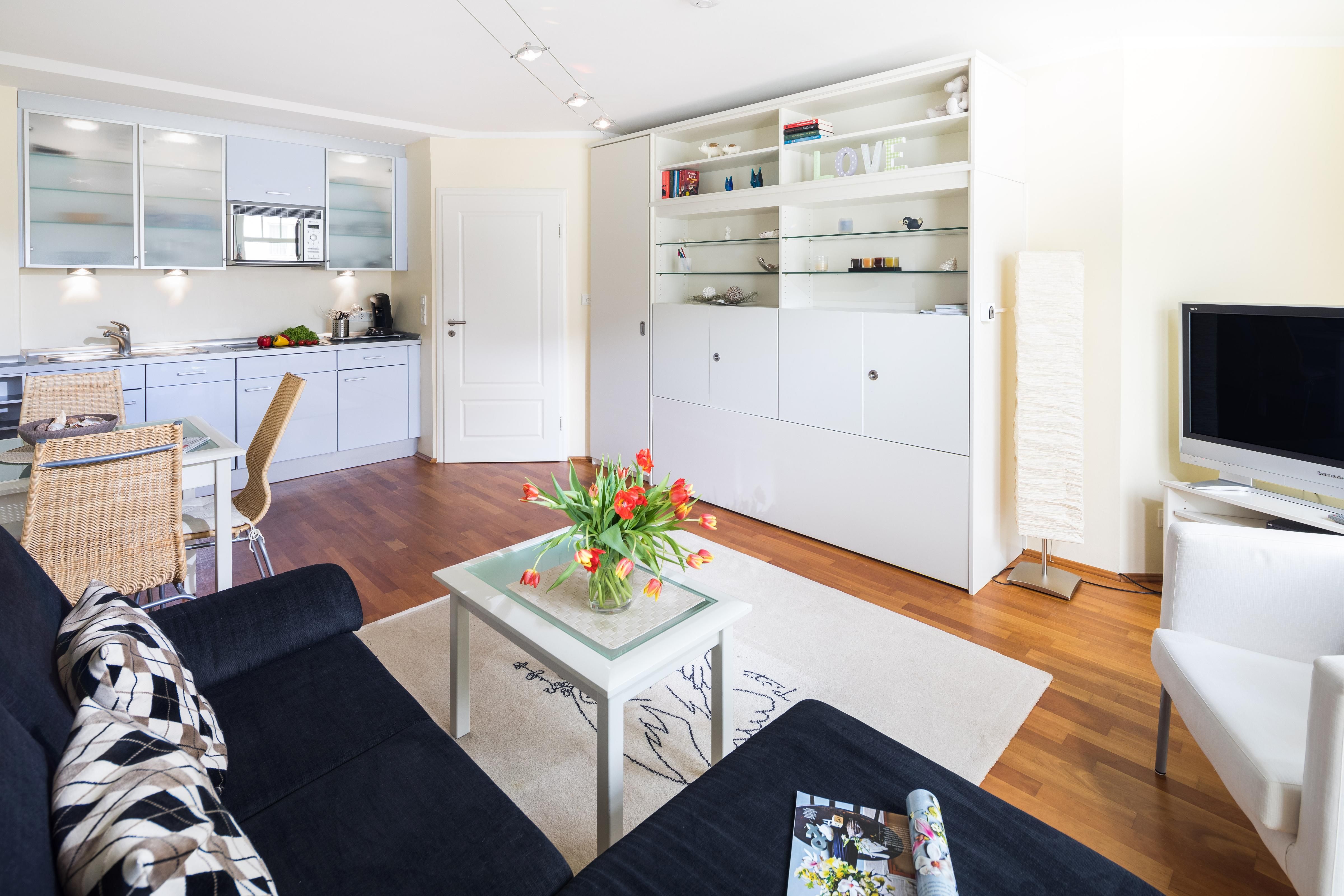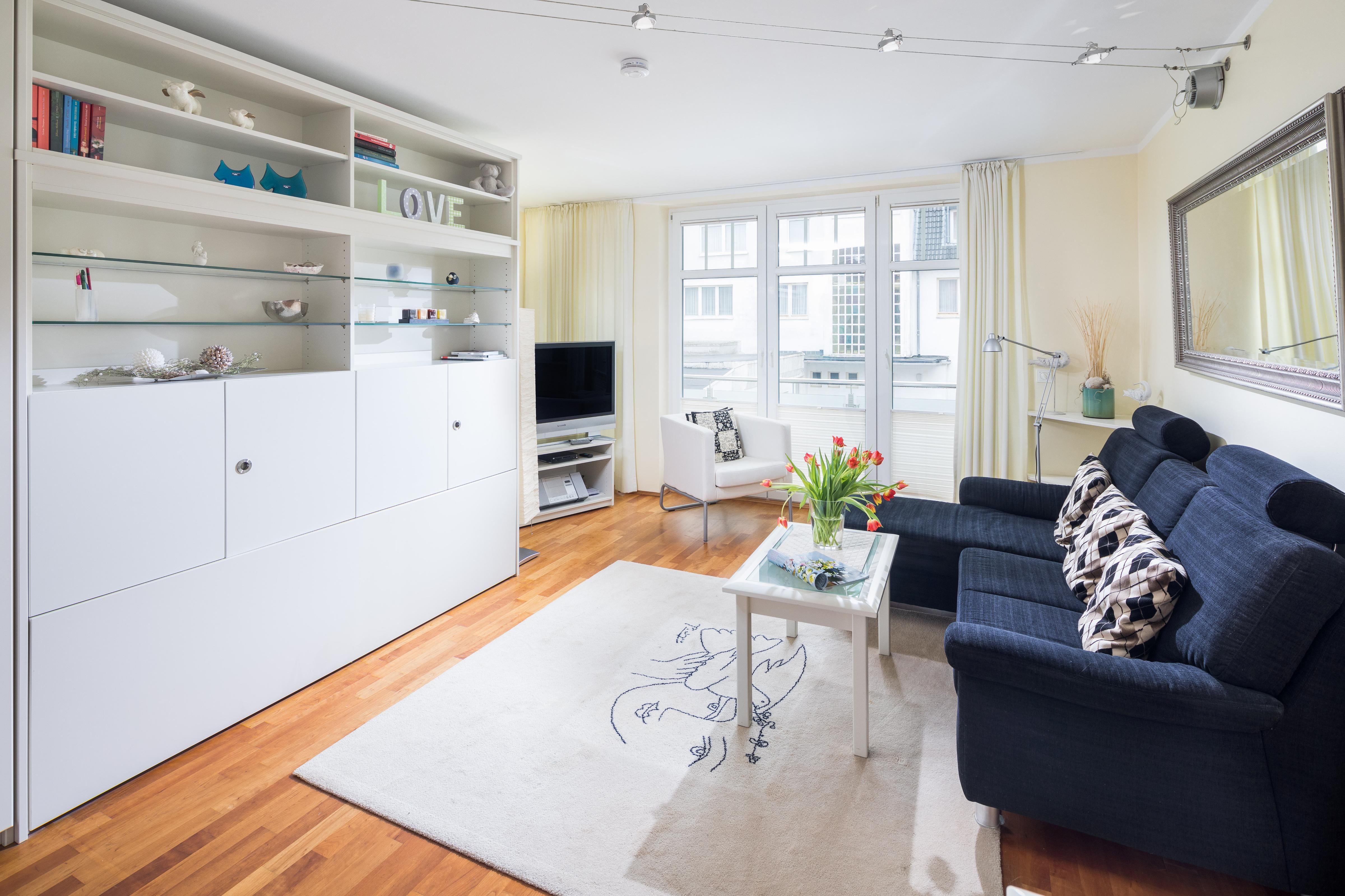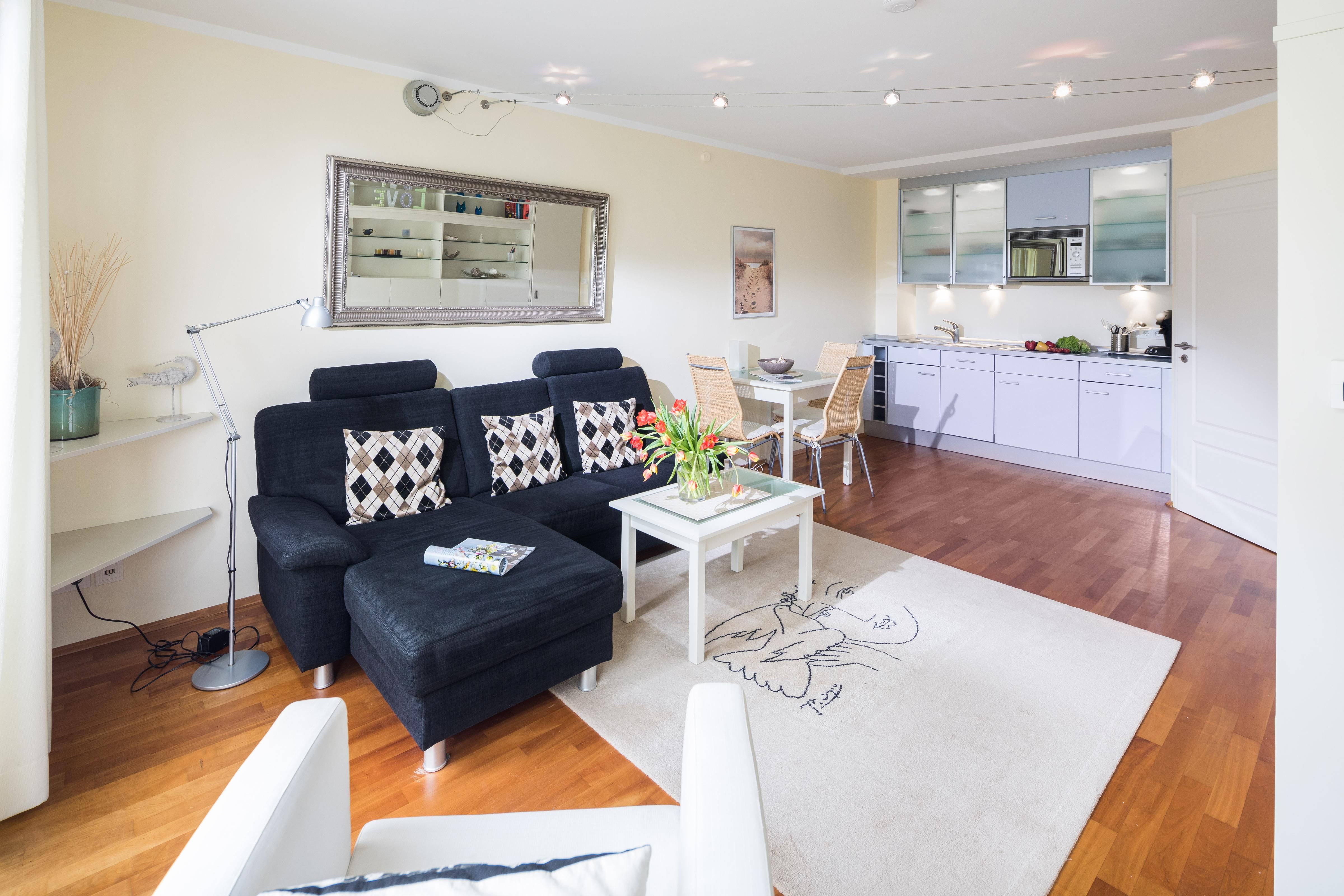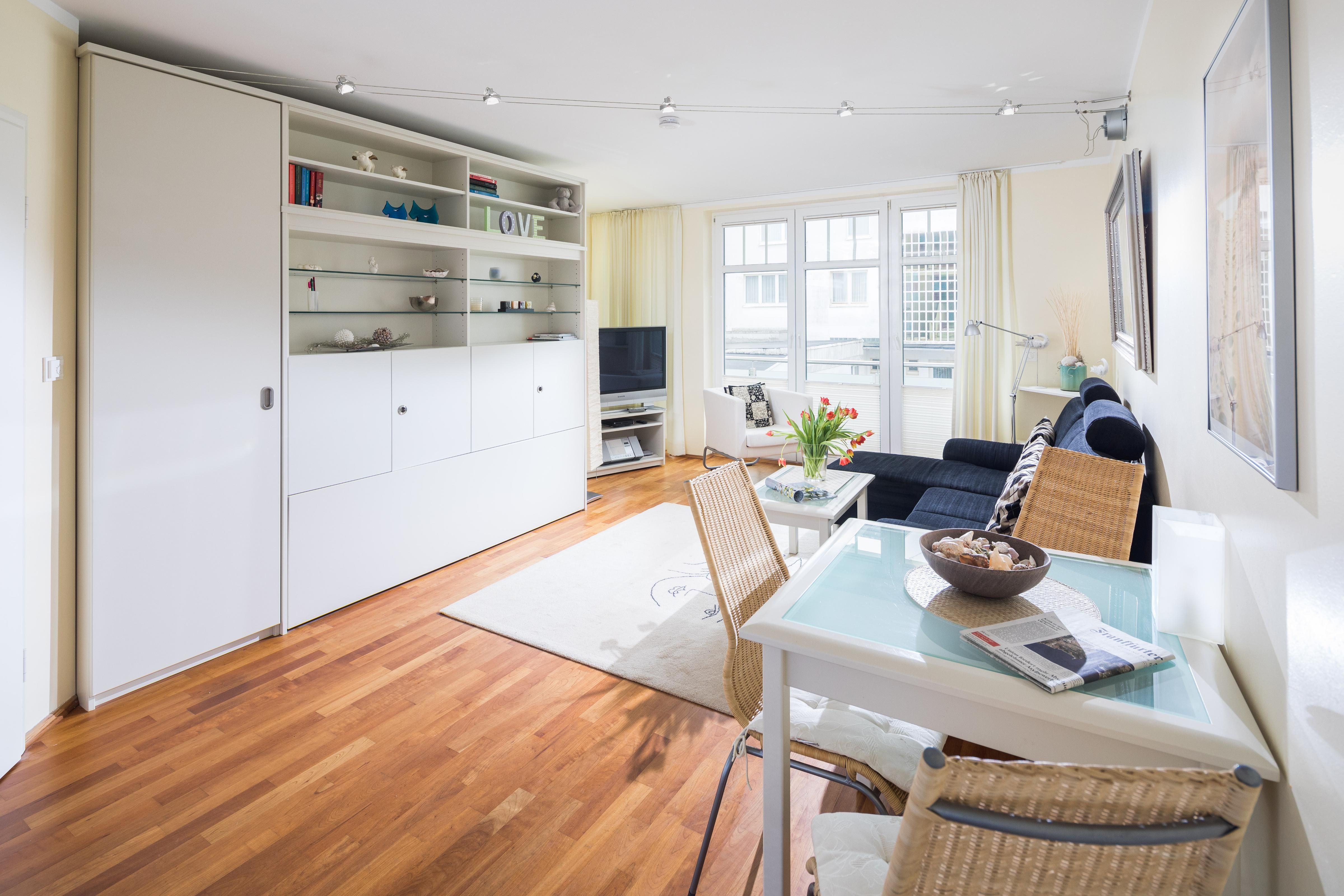 Die Wohnung liegt im 1. Stock. Es ist zu beachten, dass es keinen Fahrstuhl im Haus gibt. Ein Highlight der Wohnung ist der kleine sonnige Balkon. Die 1-Raum-Wohnung bietet (durch das integrierte Schrankbett) einiges an Bewegungsfreiheit in der Wohnung. Das Badezimmer verfügt über eine ebenerdige Dusche. Hier sind auch kleine Hunde herzlich willkommen. Erlaubt ist maximal 1 Hund (Höhe maximal kniehoch). Die Hundewiese befindet sich in der Nähe des Fährhafens. Der Strand befindet sich ca. 400m entfernt. Die Wohnung eignet sich besonders für Paare oder Alleinreisende.