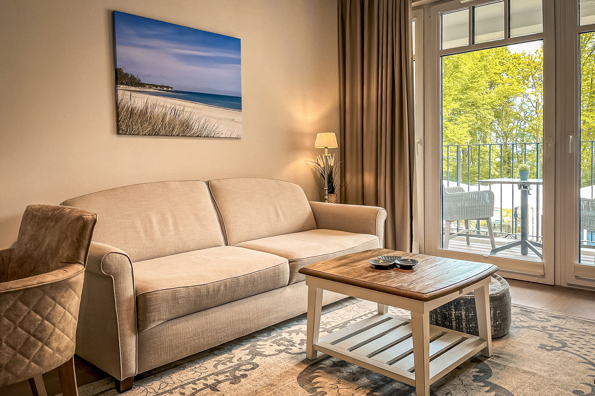 Das geschmackvoll eingerichtete Apartment im 1. Stock bietet ca. 48 m² Wohnfläche, überzeugt mit klarer Raumstruktur und bietet einen angenehmen Meerblick – ideal für Paare oder Alleinreisende, die Komfort und Nähe zur Ostsee schätzen.