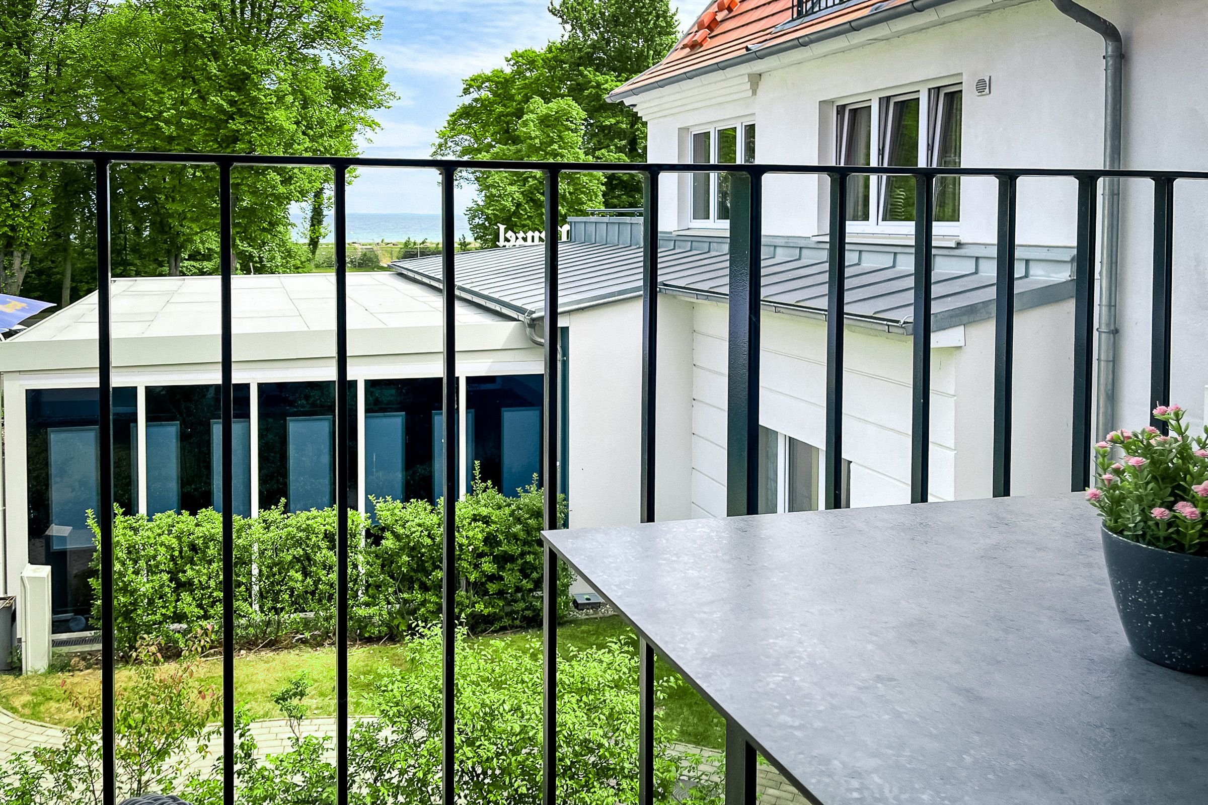 Ein Highlight dieser Wohnung ist der möblierte Balkon – perfekt für entspannte Momente im Freien mit Blick in Richtung Ostsee.