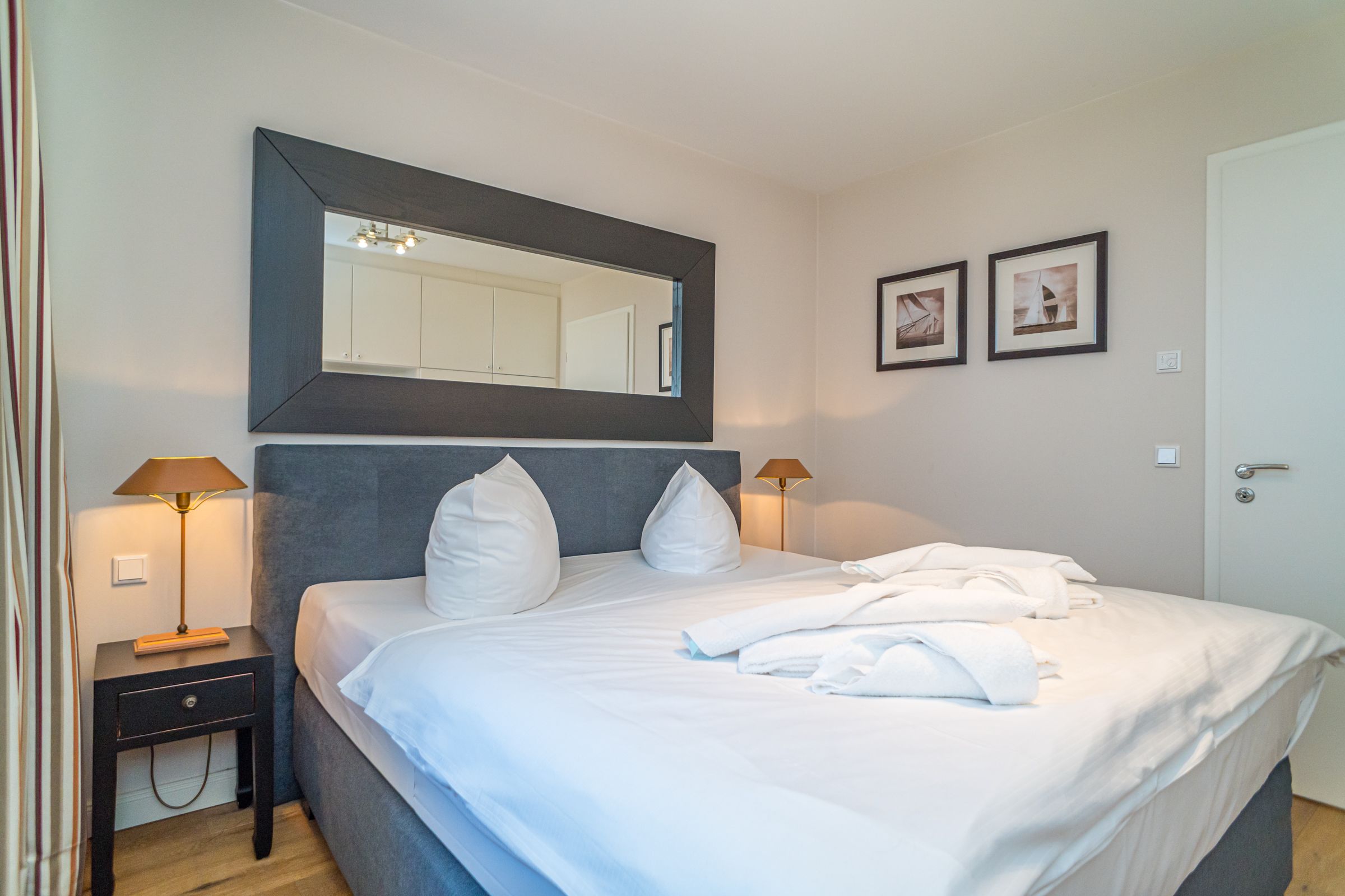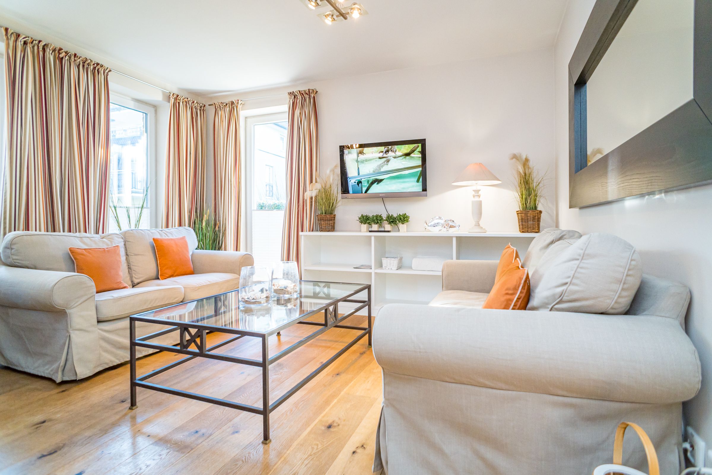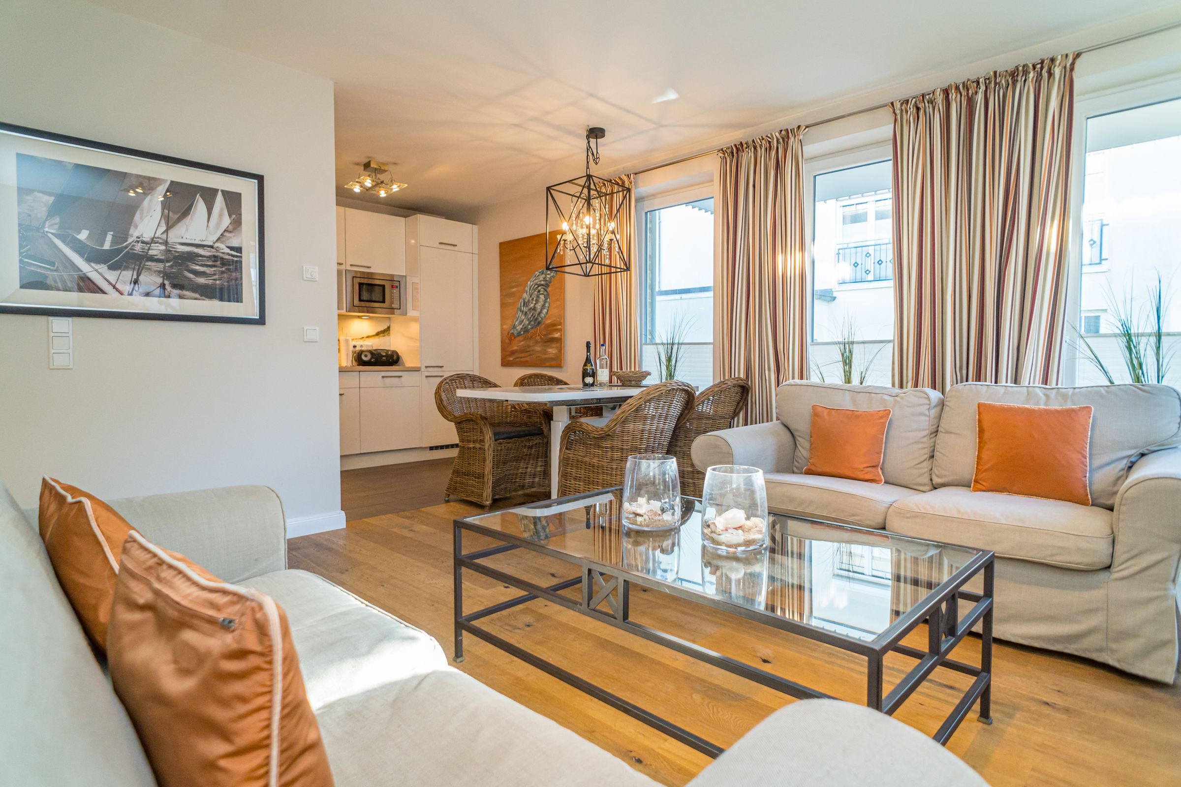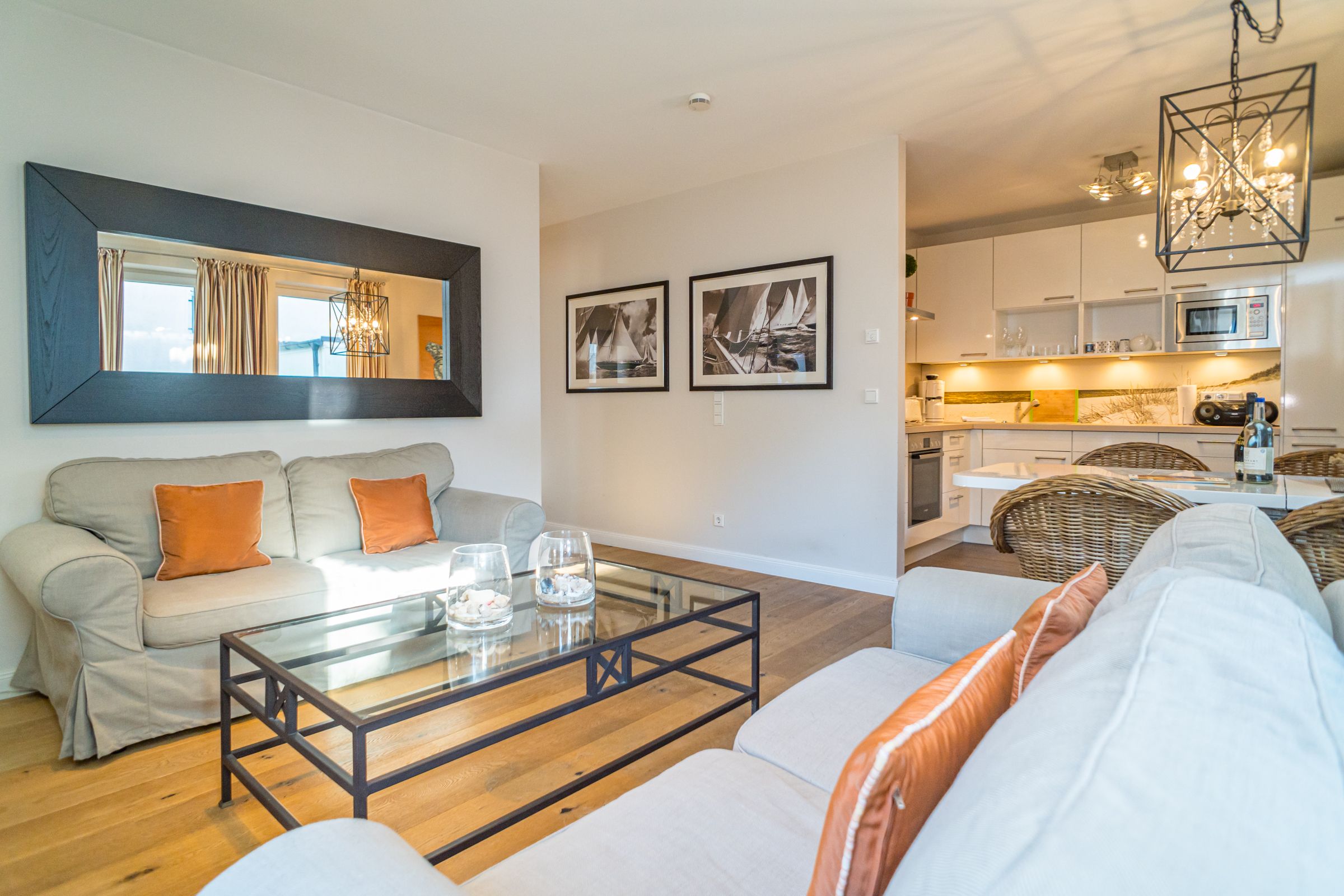 Diese 2-Zimmer Erdgeschoss-Ferienwohnung (58 qm) befindet sich in einem Gebäude strandnah im Zentrum von Westerland. Die Ferienwohnung präsentiert sich mit hellem, lichtdurchfluteten Wohnbereich mit gemütlicher Wohnlandschaft und Flatscreen TV und Esstisch. Die offene Küche ist ausgestattet mit einem Backofen, Geschirrspüler, Gefrierschrank und Kaffeemaschine. Das Schlafzimmer mit weißen Einbauschränken und TV bietet Ihnen ein Boxspringbett, in dem Sie während Ihres Aufenthalts himmlisch- entspannt schlafen können. Das geschmackvoll gestaltete Duschbad rundet das Domizil modern und stylisch, gekonnt ab. Als Höhepunkt wird die Ferienwohnung mit einer Süd- West- Terrasse mit Gartenmöbeln und einem Strandkorb (ganzjährig) umrundet. Diese können Sie aus dem Schlafzimmer, als auch aus dem Wohnzimmer betreten. Nach vorheriger Anmeldung ist Ihr Haustier erlaubt (10,- € pro Tier/Tag). Bitte beachten Sie, dass das Rauchen in dieser Ferienwohnung untersagt ist. Zu der Wohnung gehört ein Tiefgaragenstellplatz.