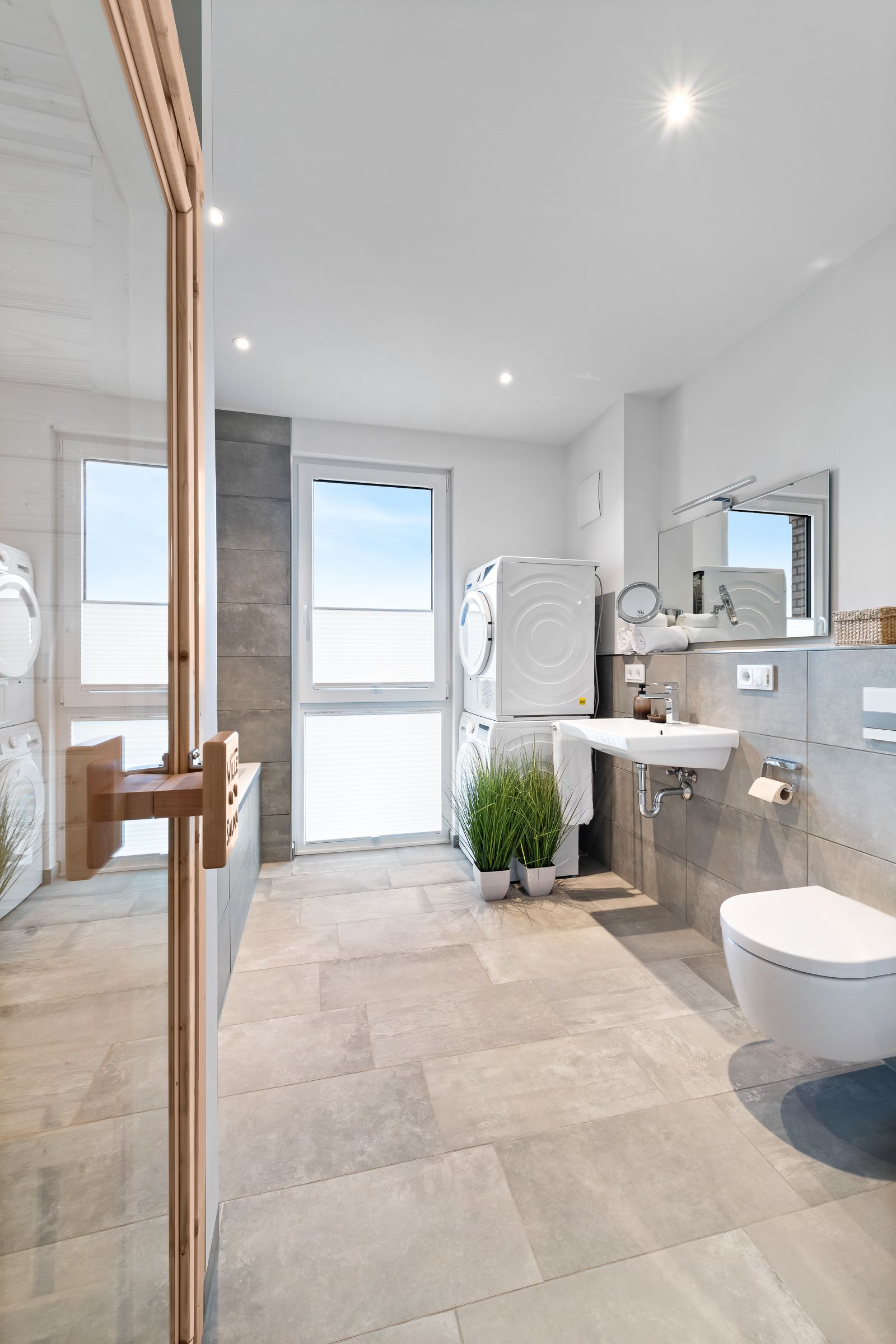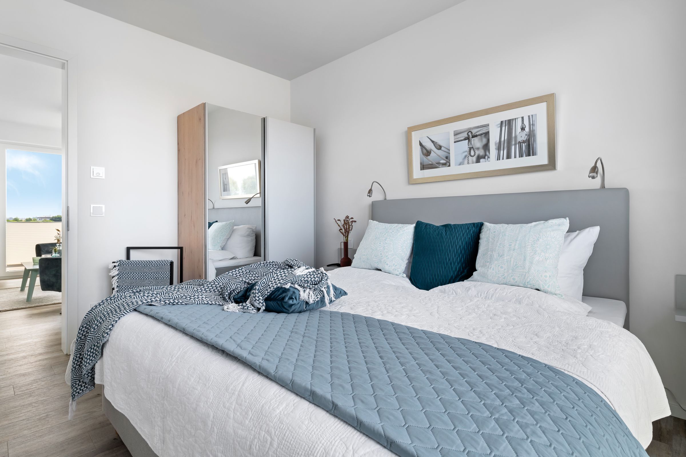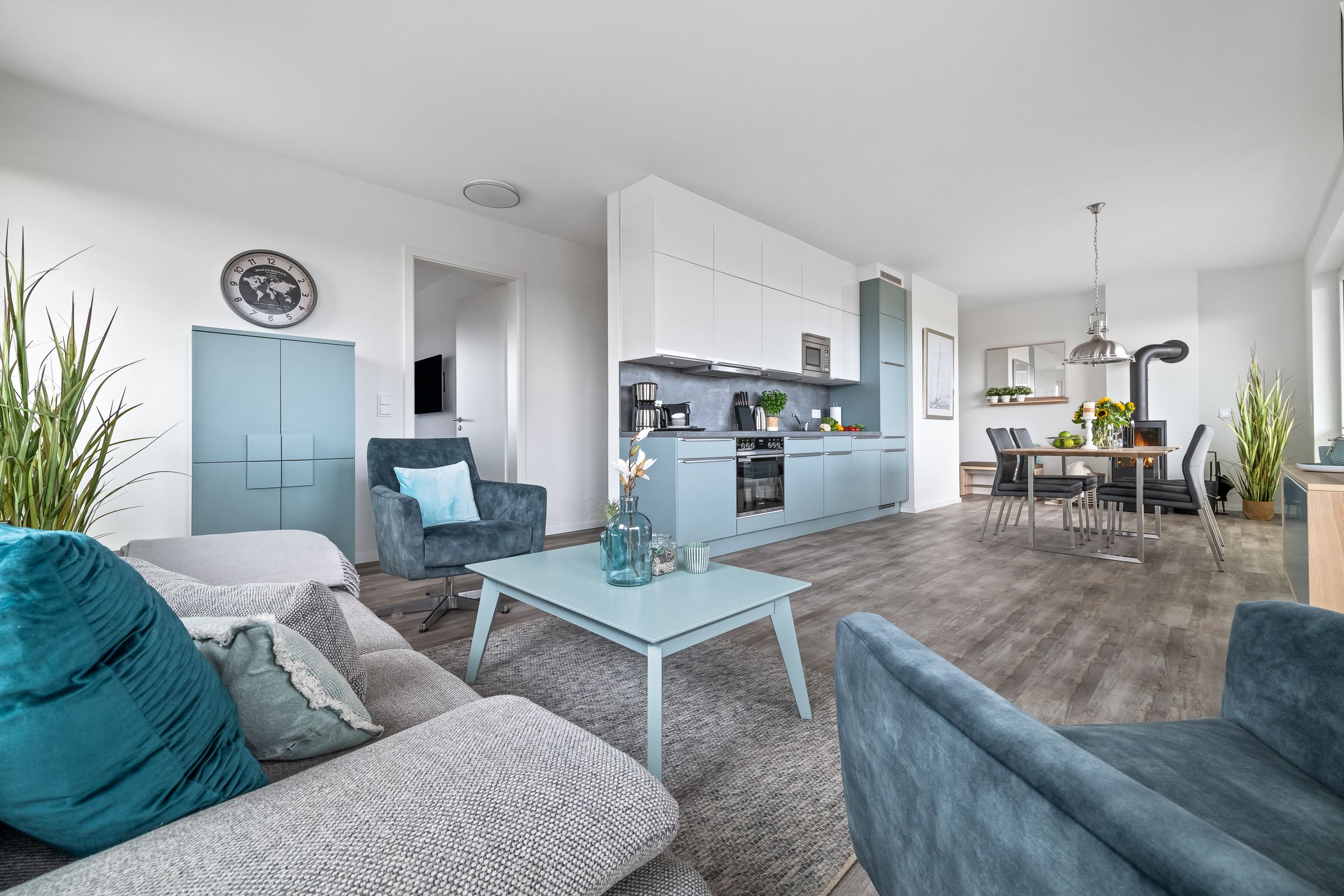 Das Apartment "BeachTerraceOne“, bietet zwei Schlafzimmer, ausgestattet mit hochwertigen Boxspringbetten für einen erholsamen Schlaf. Entspannen Sie sich in der finnischen Sauna oder genießen Sie ein Bad in der großzügigen Wanne.