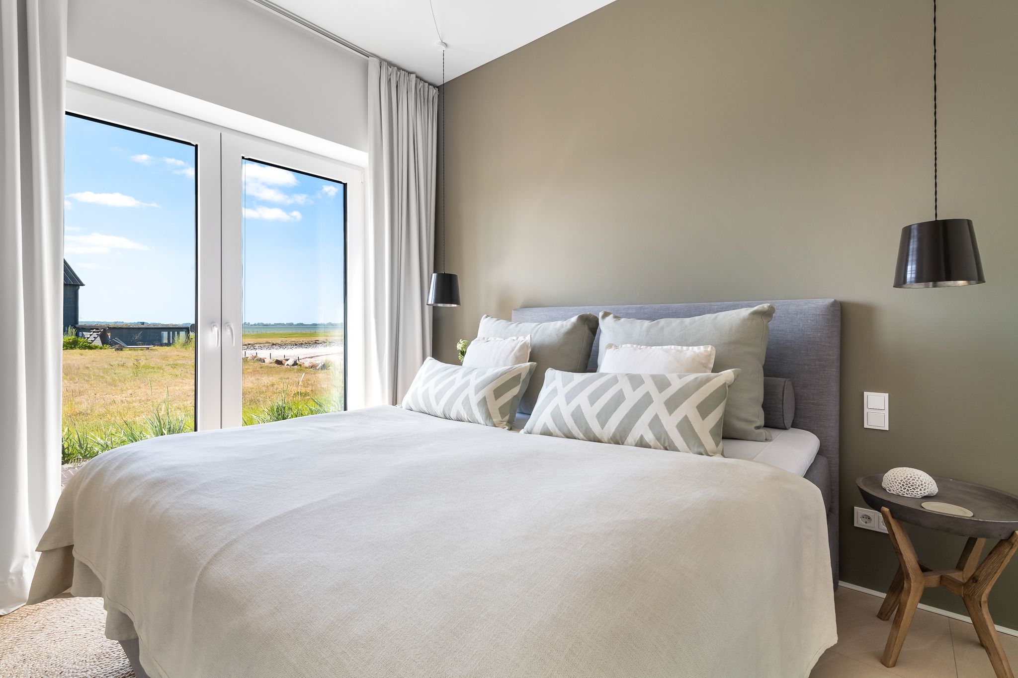 Willkommen in der Beachvilla "The View", einem exklusiven Rückzugsort für bis zu 8 Personen. 3 Schlafzimmer im Haupthaus plus Einliegerwohnung für 2 Personen und separatem Eingang. Auf 250 m² erleben Sie Urlaub vom Feinsten direkt an der Olpenitz Badebucht. Der Aufenthalt vereint Luxus und Komfort mit einem atemberaubenden Ostseeblick.