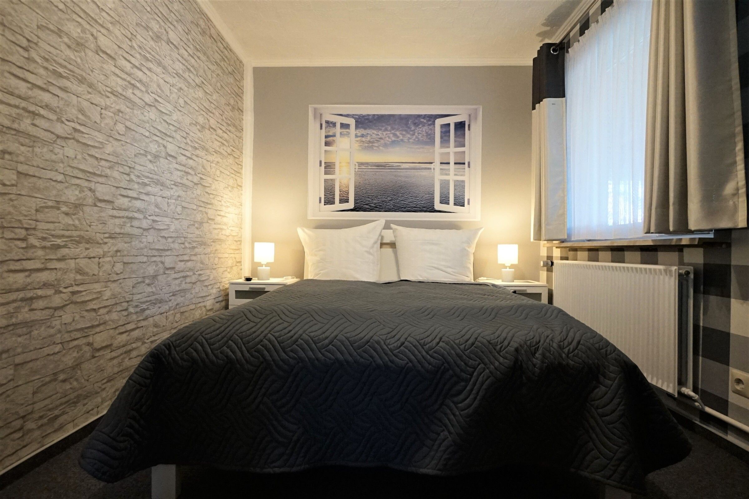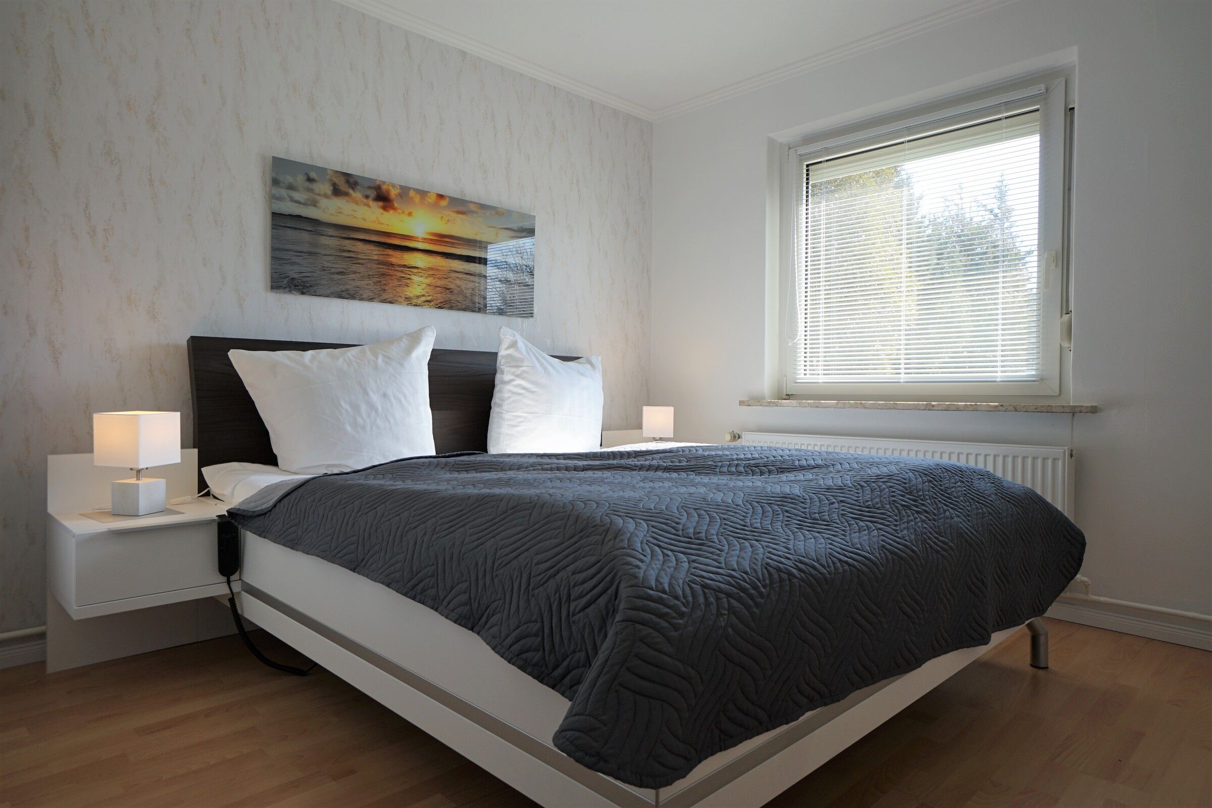 Die Wohnung verfügt über zwei Schlafzimmer mit einem 1,80 m x 2 m und einem 1,40 m x 2m Bett. Jedes Schlafzimmer ist mit einem eigenen TV-Gerät ausgestattet. Die