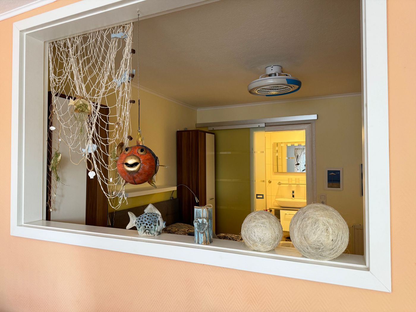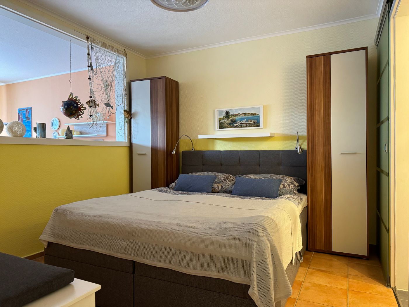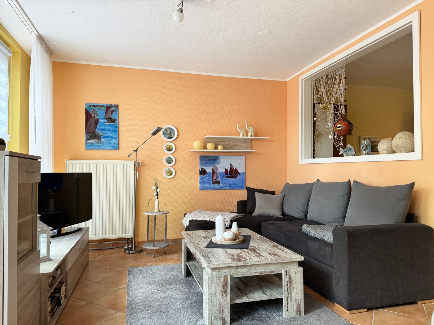 Unsere ca. 42 m² große Ferienwohnung liegt im Erdgeschoss an einer ruhigen Nebenstraße, in einem Garten, umgeben von anderen Ferienobjekten. Es gibt Busverbindungen zu den anderen Orten und eine Einkaufsmöglichkeit in 250 m. Die gemütliche und liebevoll eingerichtete, helle Ferienwohnung für 2 Personen verfügt über eine sonnige Terrasse. Sie finden in unserer Wohnung einen Wohn- und Essbereich mit Zugang zur Terrasse. In der Küche finden Sie eine Spülmaschine, Herd / Backofen, einen Kühlschrank und eine Mikrowelle sowie eine Kaffeemaschine und Wasserkocher. Das Wohnzimmer ist mit TV ausgestattet. Zur Wohnung gehört ein eigener fester Parkplatz und Fahrradständer.