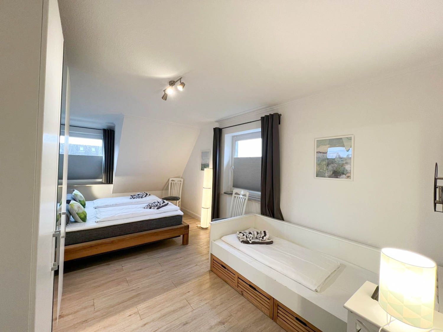 Moin, moin, willkommen im "Blaue Huis" im Westerländer Waldwinkel. Dieses Stück Sylt kennen Sie noch gar nicht? Kein Wunder: Dieses Insel-Refugium mit zwei Zimmern für vier liegt herrlich versteckt direkt an einem kleinen Waldstückchen im Norden der Inselhauptstadt. "Weit" genug weg von der Innenstadt, um sehr ruhig zu sein, und doch so zentral, dass Westerland und Wenningstedt zu Fuß zu erreichen sind, ganz in der Nähe hält auch der Bus. Die Nordseeklinik ist nahe und damit natürlich auch der Strand, den Insulaner besonders mögen, weil er nicht ganz so lebhaft, aber trotzdem nicht einsam ist. Auch einen sympathischen uns super sortierten kleinen Supermarkt finden Sie direkt um die Ecke. Die Wohnung im Obergeschoss eines Zweifamilienhauses ist hell und mit Liebe zum Detail und klarer Linie eingerichtet.