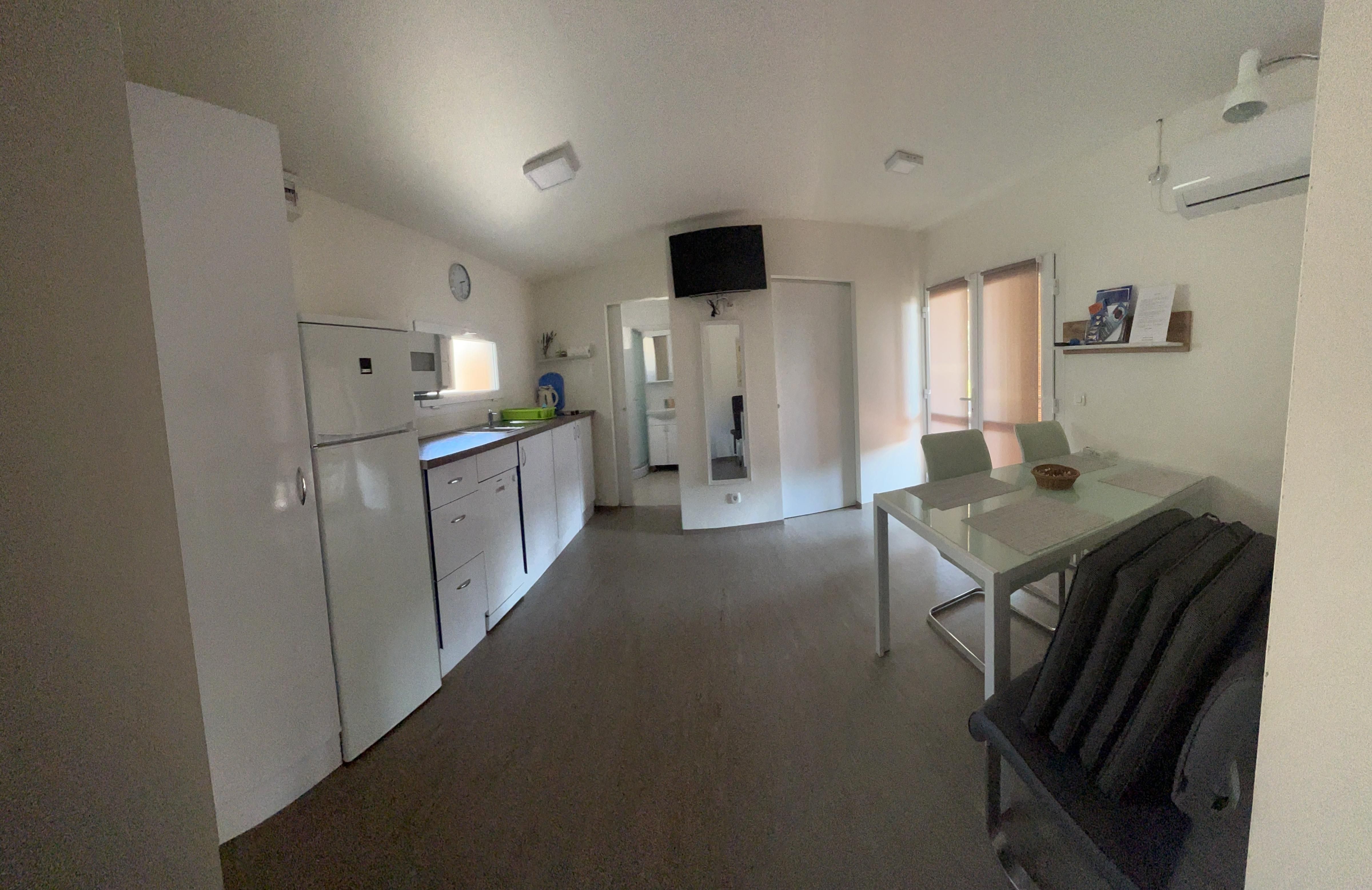Mit 32 m² Wohnfläche, zwei Schlafzimmern (eins mit Doppelbett, eins mit zwei Einzelbetten) sowie zwei Badezimmern bieten die Unterkünfte ausreichend Platz für Familien oder Paare, die Entspannung und Privatsphäre schätzen.