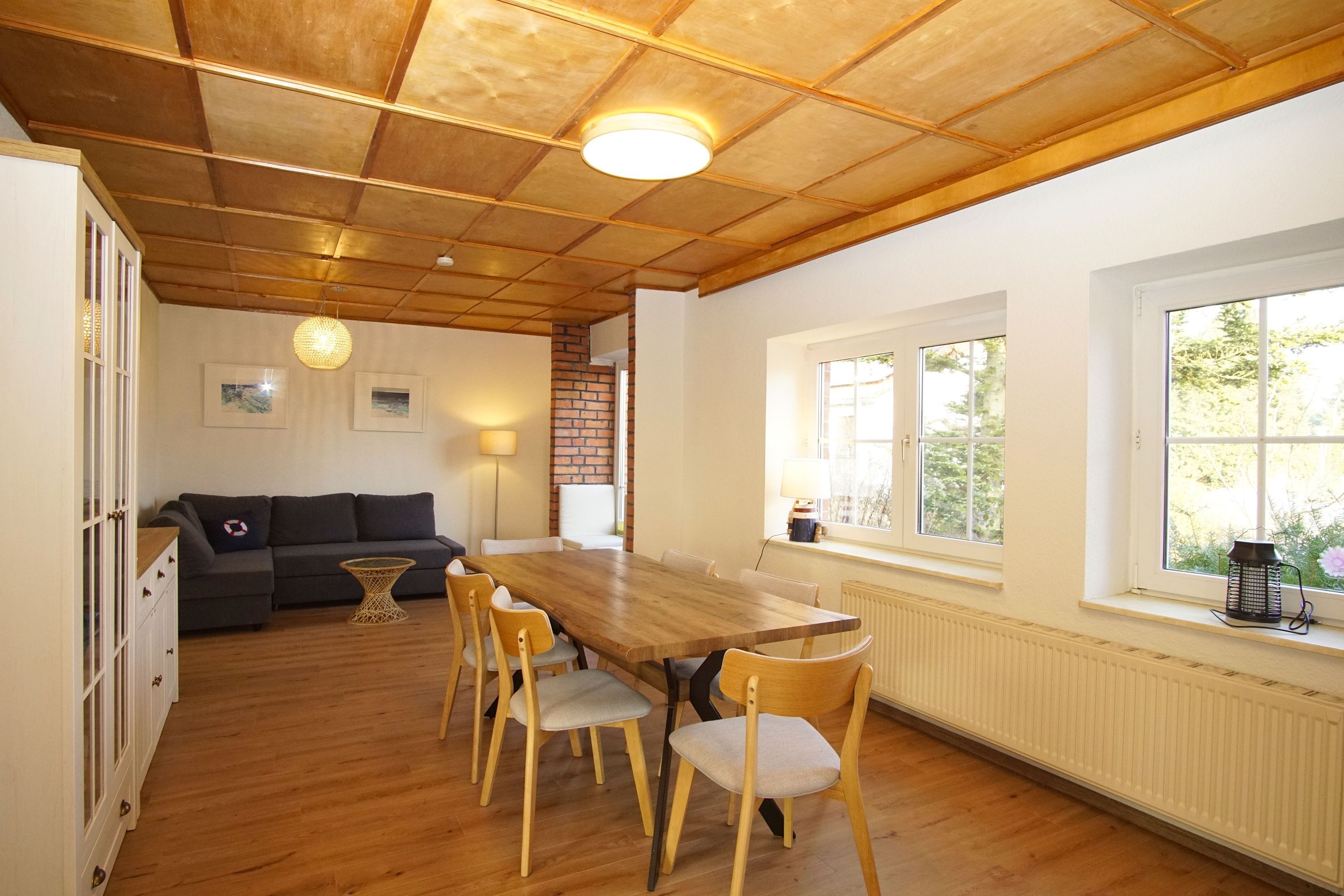 Willkommen im Dat Bienenhuus Haus – Ihrem perfekten Rückzugsort in idyllischer Lage mit einem eigenen Garten! Dieses großzügige Ferienhaus bietet auf 140 m² Platz für bis zu acht Personen und ist damit ideal für Familien oder Gruppen von Freunden, die eine Auszeit in der Natur genießen möchten. Mit insgesamt drei Schlafzimmern und zwei Badezimmern sorgt das Bienenhuus dafür, dass jede*r seinen eigenen Raum findet, während die Gemeinschaftsbereiche, wie das lichte Wohnzimmer und der einladende Essbereich, die perfekte Atmosphäre für unvergessliche gemeinsame Abende bieten.