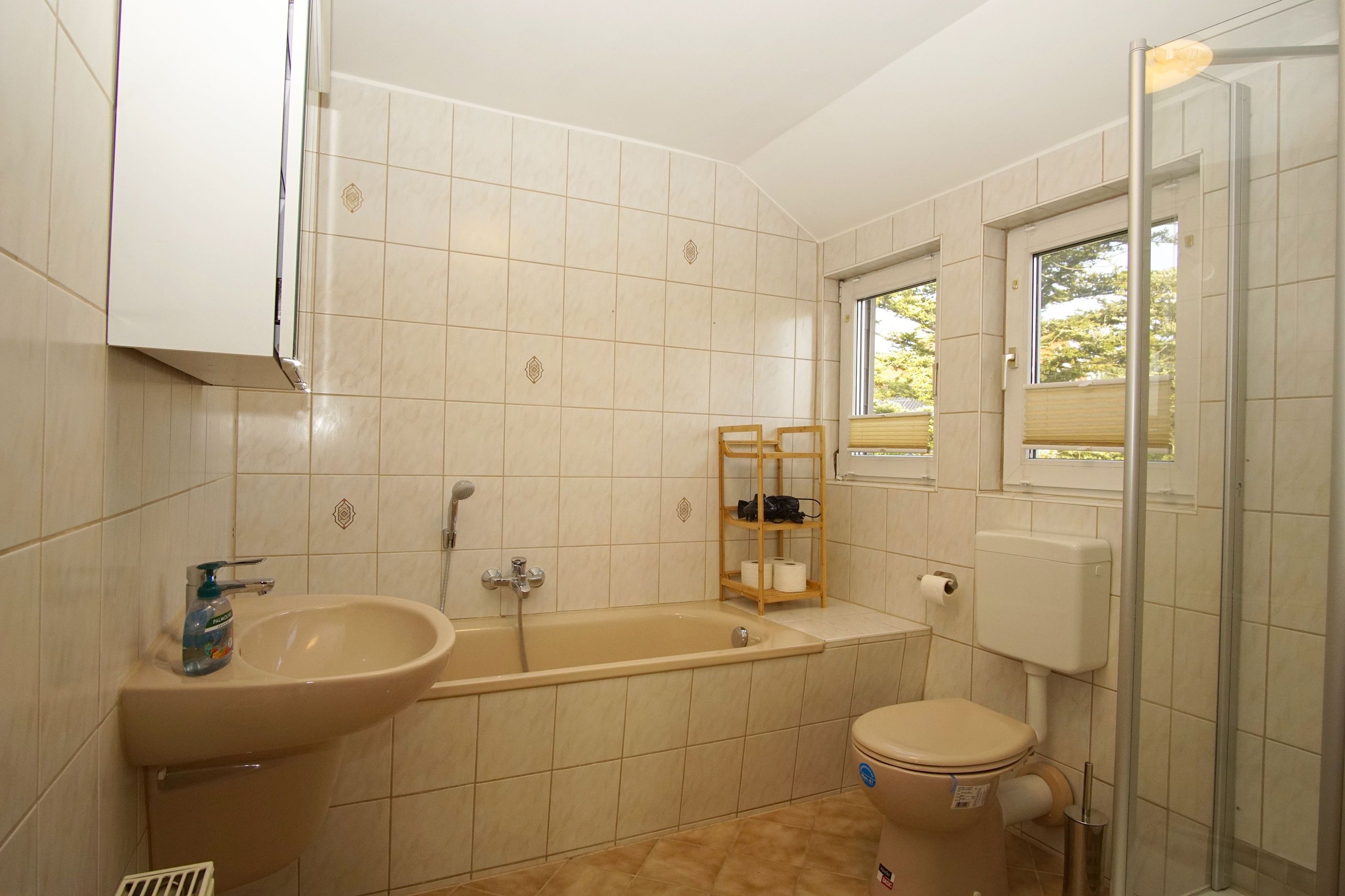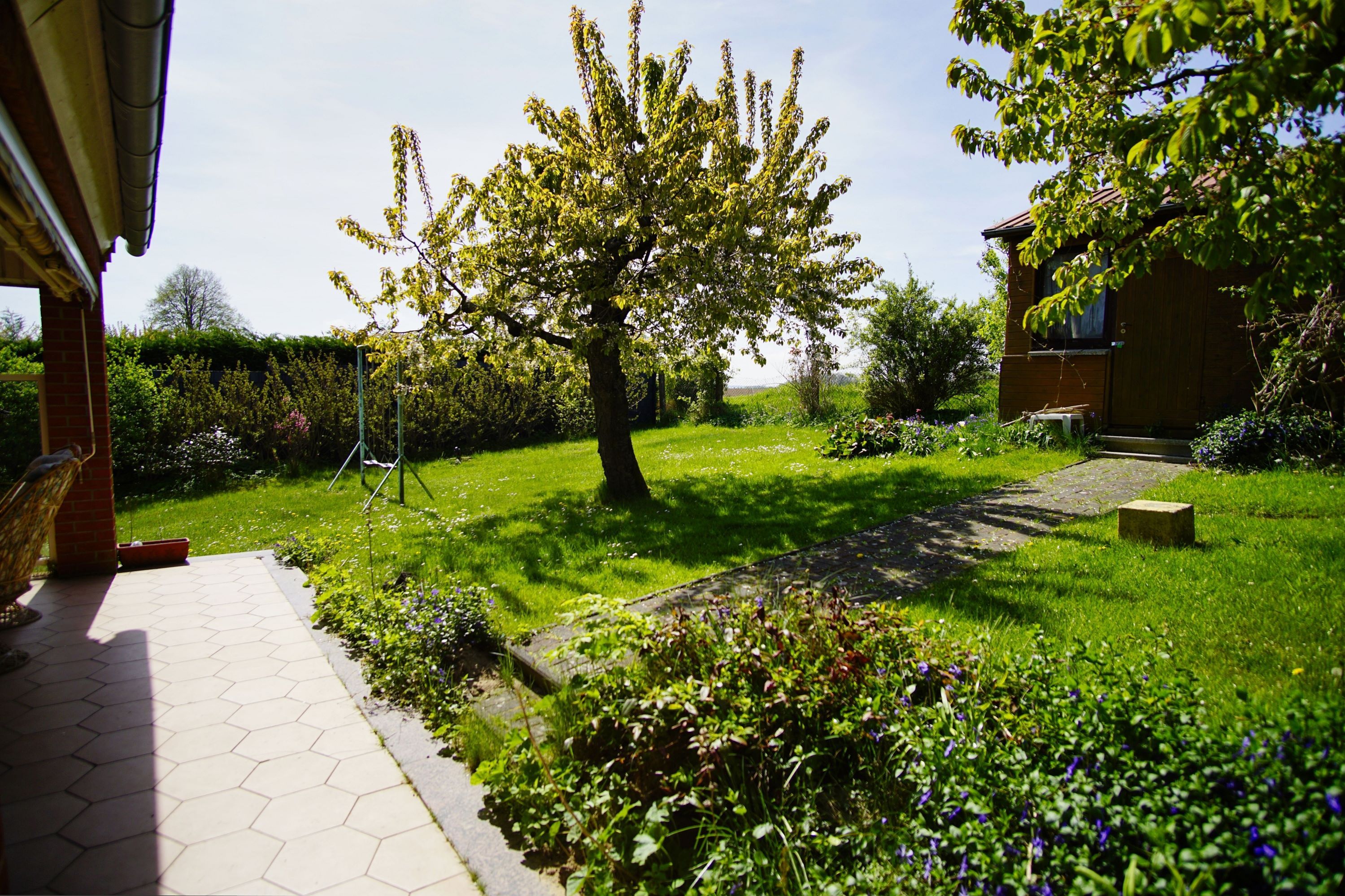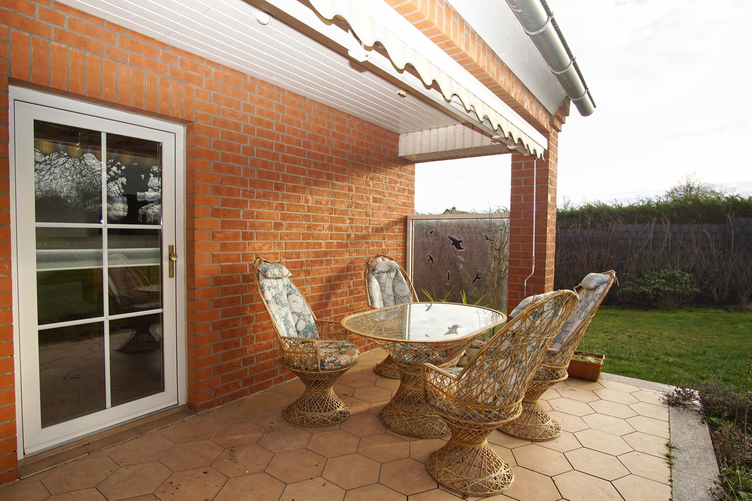 Der Außenbereich des Hauses wird durch eine großzügige Terrasse und einen wunderschönen Garten ergänzt, der mit Gartenmöbeln ausgestattet ist. Hier können Sie beim Grillen oder einfach beim Genießen der frischen Luft entspannen. Nutzen Sie die Liegewiese für ein Sonnenbad oder verbringen Sie entspannte Stunden mit einem guten Buch. Ein Sichtschutz an den Fenstern sorgt zudem für die nötige Privatsphäre.