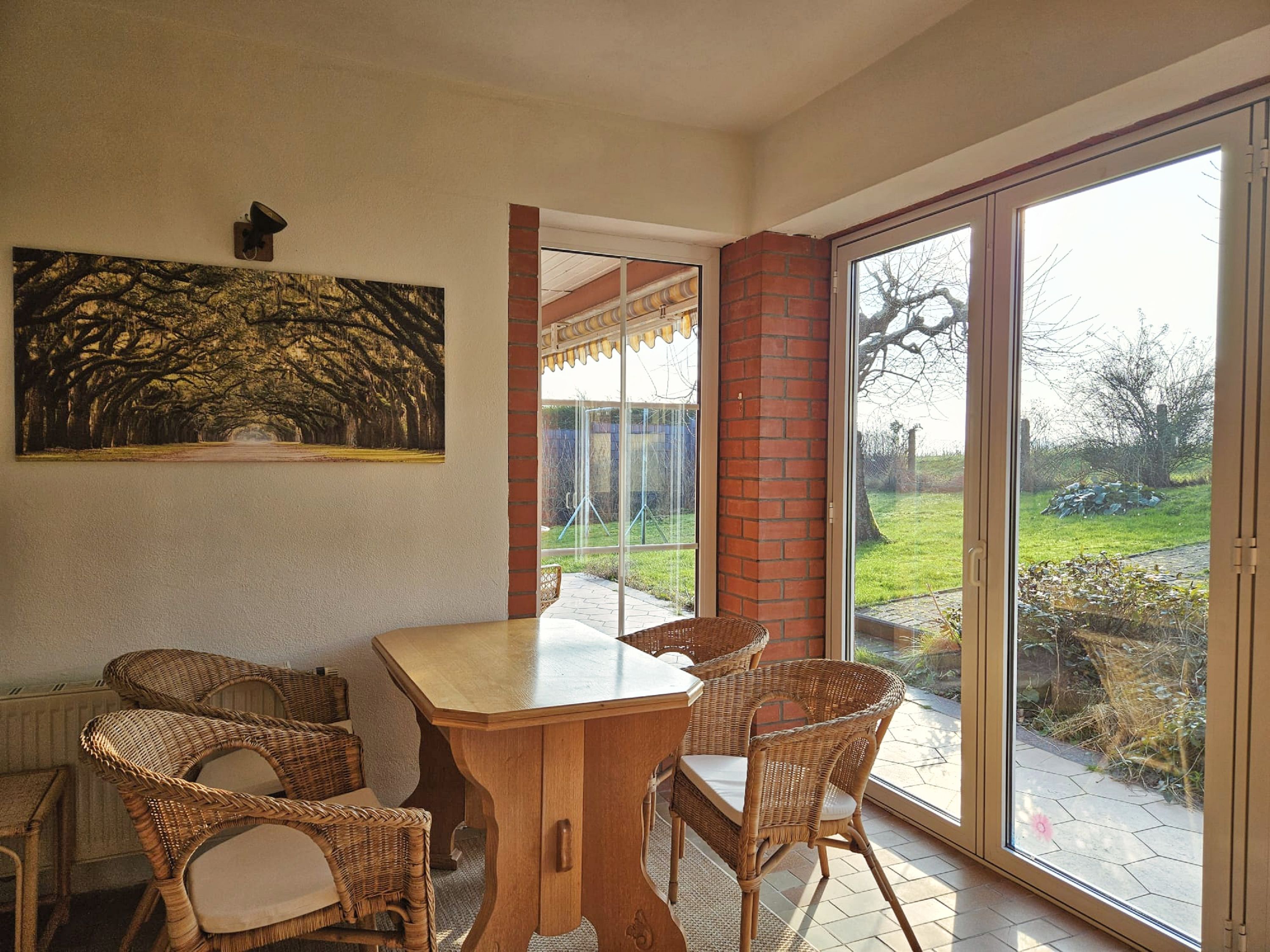 Die voll ausgestattete Küche lädt dazu ein, kulinarische Köstlichkeiten zu zaubern. Ausgestattet mit modernem Komfort wie Herd, Backofen, Mikrowelle und Kühlschrank, kommt hier auch das Kochen nicht zu kurz. Für entspannte Morgenstunden steht Ihnen zusätzlich eine gemütliche Sofaecke zur Verfügung, in der Sie bei einer Tasse Kaffee den Tag planen können. Der Wintergarten ist ein weiteres Highlight, das einen atemberaubenden Blick in den Garten bietet und zu jeder Jahreszeit ein gemütliches Plätzchen zum Entspannen bereithält.