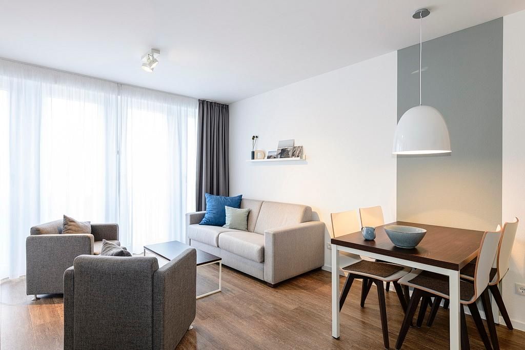 Die 61 m² große 3-Zimmer Ferienwohnung ist für bis zu 4 Personen geeignet. Besonders hervorzuheben ist der überdachte Balkon in Süd-Lage. Hier lässt sich bereits beim Frühstück die Morgensonne genießen.