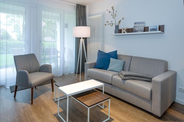 Die 59 m² große 3-Zimmer Ferienwohnung ist für bis zu 5 Personen geeignet. Besonders hervorzuheben ist die Terrasse in sonniger Süd-West-Lage mit eigener kleiner Grünfläche. Hier lässt sich den ganzen Tag das wohltuende Meeresklima des Nordseeheilbades genießen.