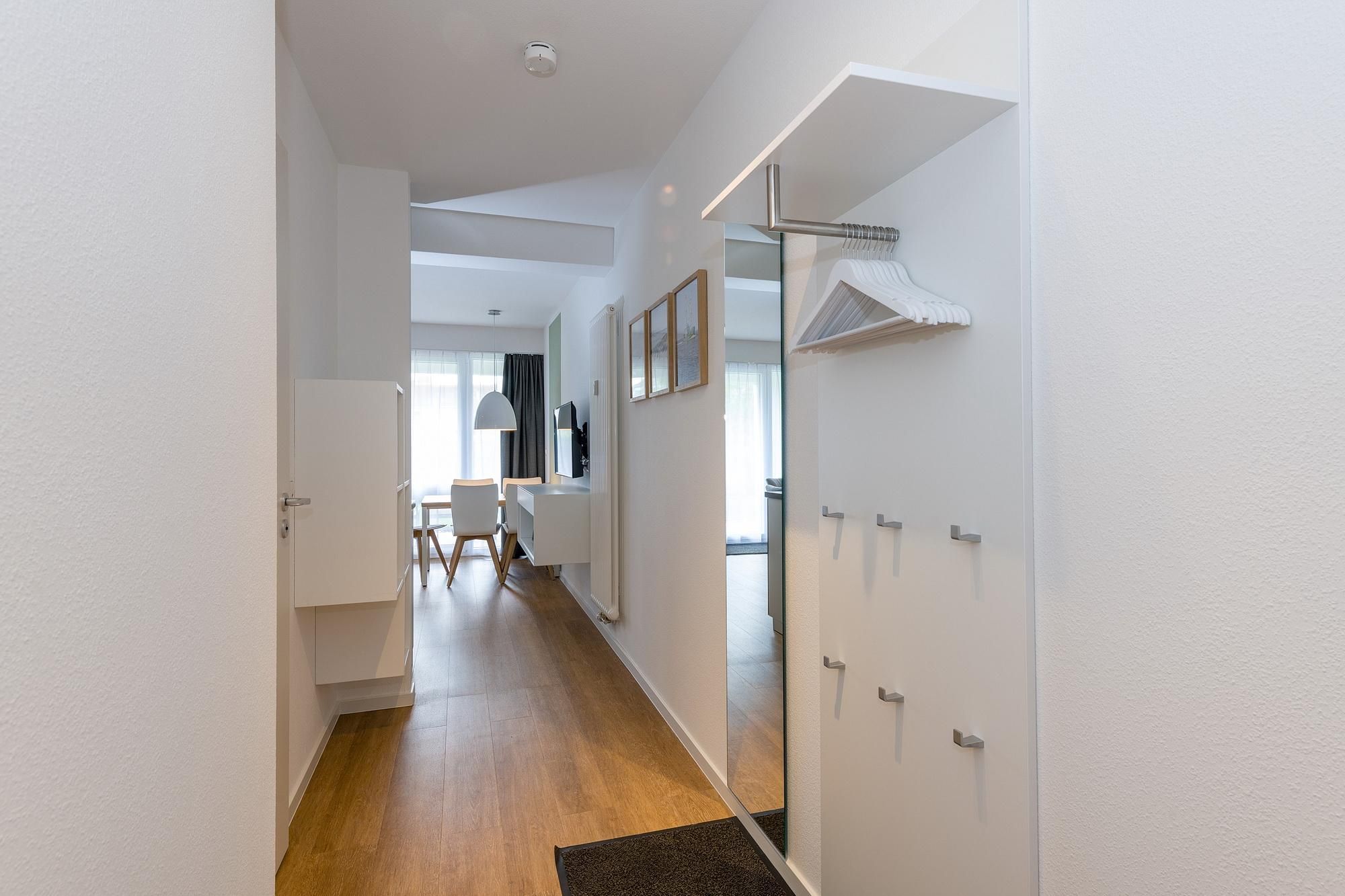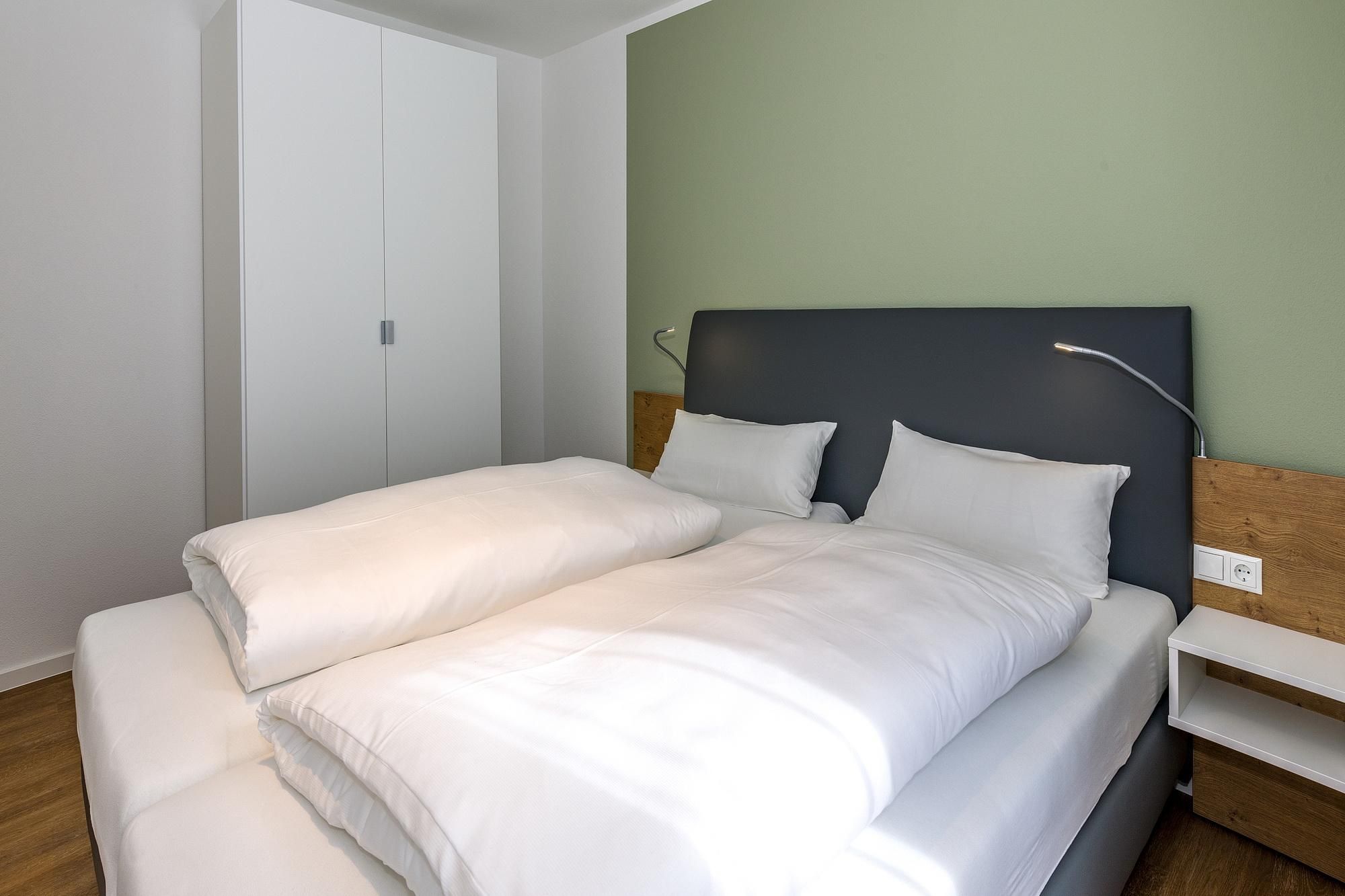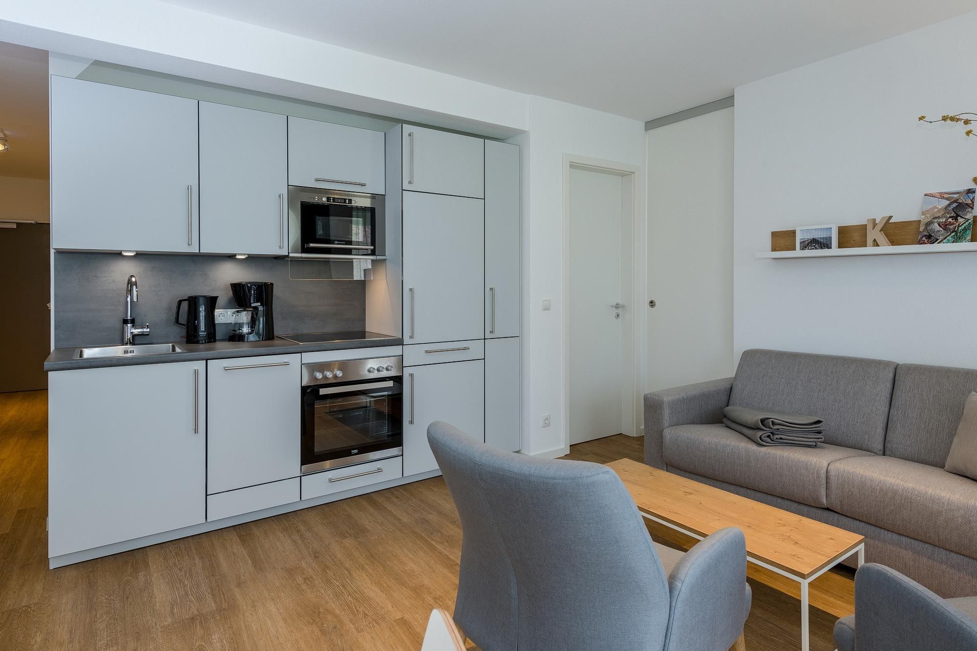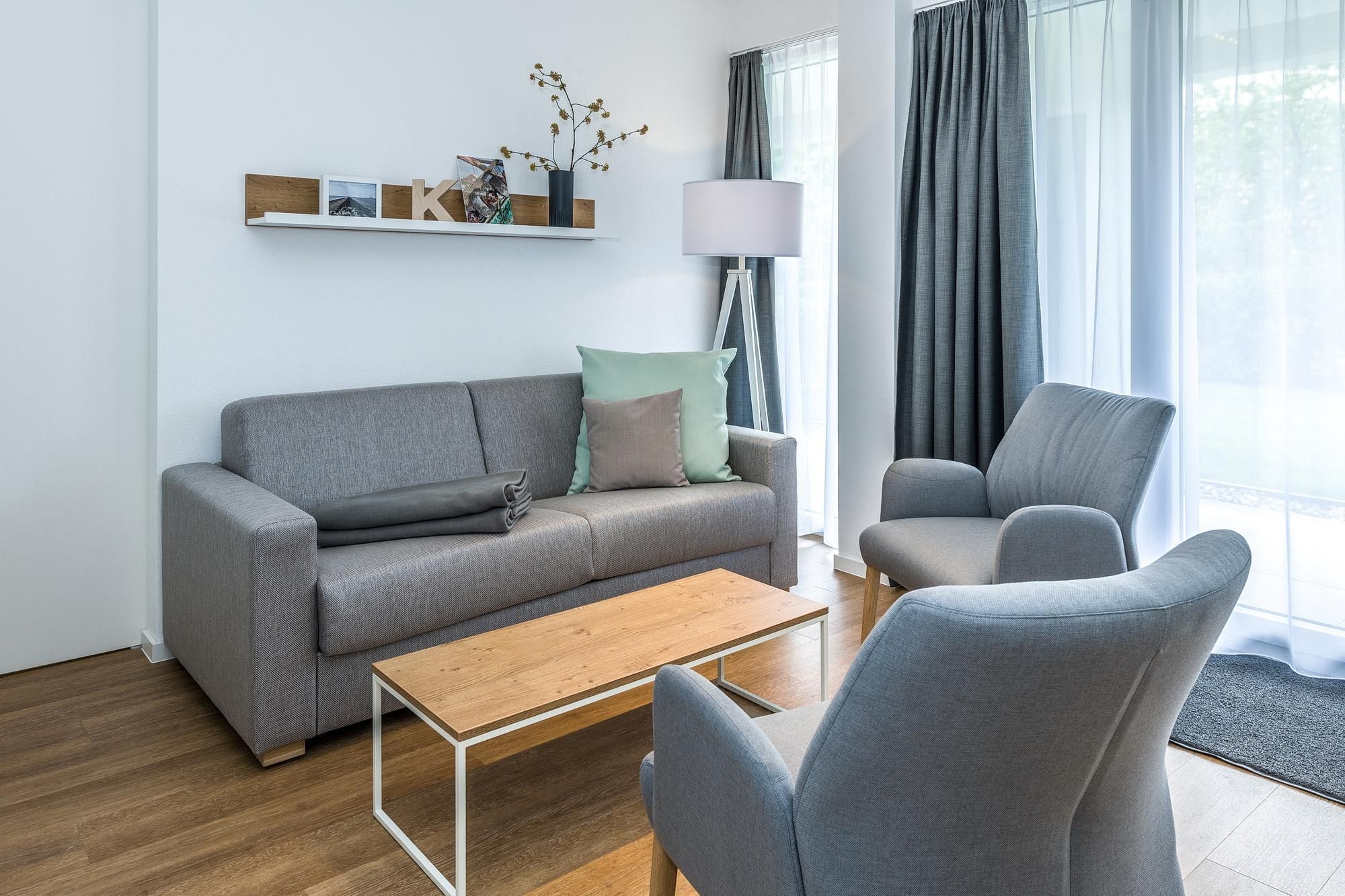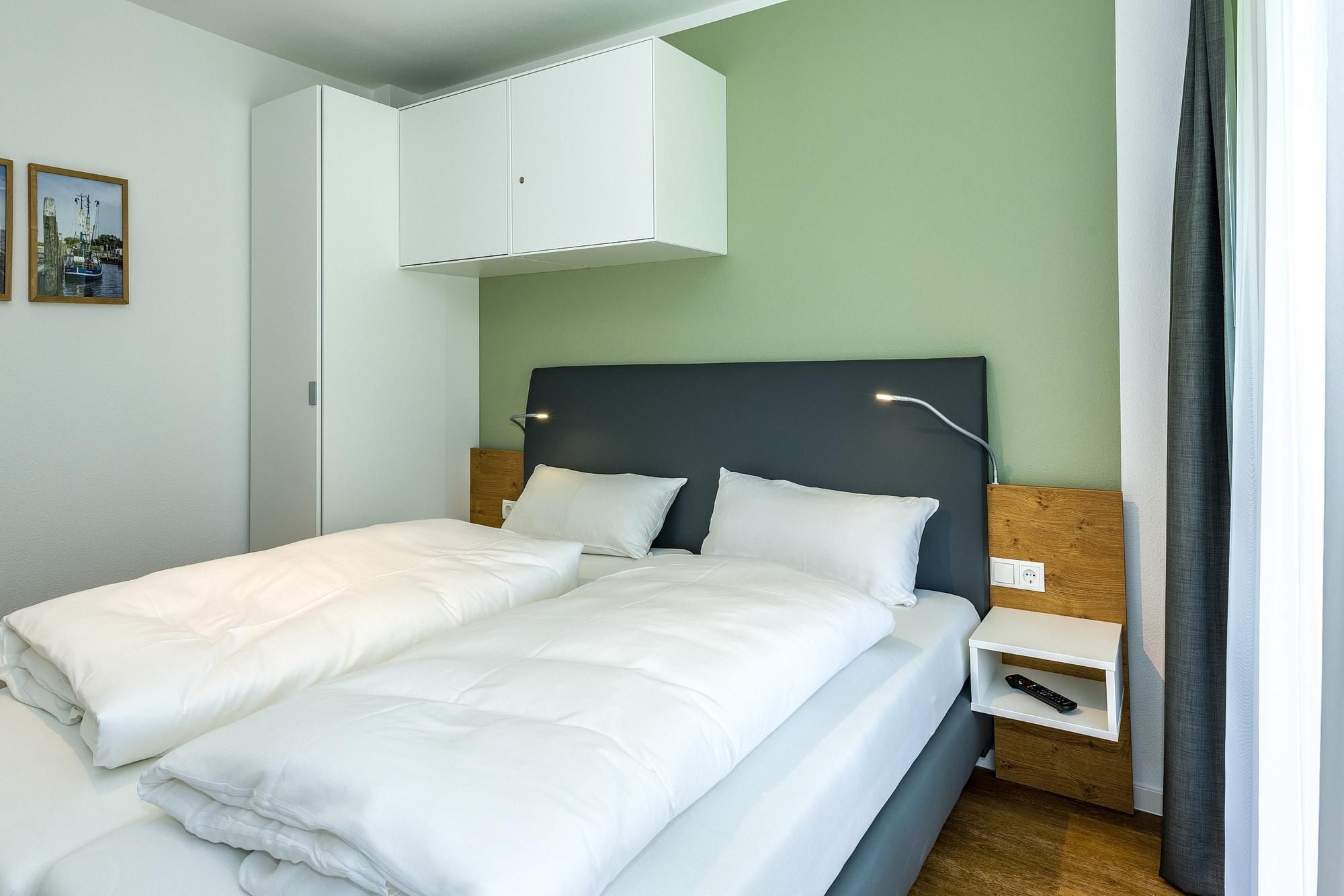 Das geschmackvoll eingerichtete Nichtraucher-Apartment verfügt über kostenfreies WLAN. Der Wohnbereich bietet eine voll ausgestattete offene Küchenzeile mit Geschirrspüler, Gefrierfach, Backofen, Kaffeemaschine, Toaster, Wasserkocher und Mikrowelle sowie einen großen Flatscreen-TV und ein Radio. Das Apartment verfügt über einen Esstisch für 5 Personen und einen behaglichen Sitzbereich. Zwei separate Schlafzimmer mit jeweils einem Doppelbett stehen euch zur Verfügung. Eines davon verfügt zudem über einen eigenen Flatscreen-TV. Ein Kinderbett kann gegen Entgelt aufgestellt werden. Im stilvollen Badezimmer befinden sich eine große begehbare Dusche sowie ein Waschtisch mit Föhn und Kosmetikspiegel. Nach einem erlebnisreichen Urlaubstag entspannt ihr auf dem überdachten und mit Gartenmöbeln für 4 Personen ausgestatteten Terrasse.