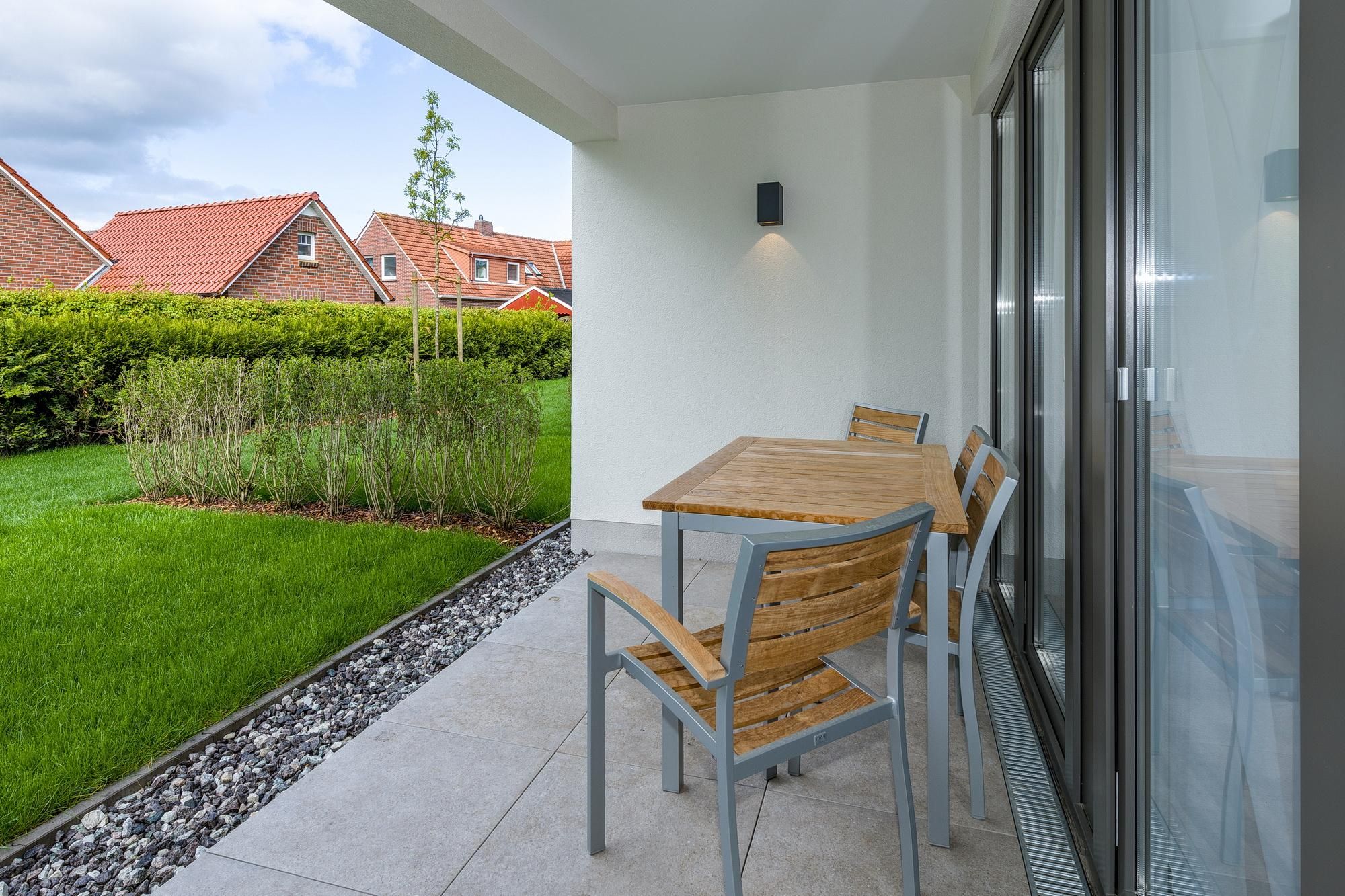 Die 58 m² große 3-Zimmer Ferienwohnung ist für bis zu 5 Personen geeignet. Besonders hervorzuheben ist der großzügige und überdachte Terrasse, ähnlich einer Loggia, in sonniger Süd-West-Lage. Hier lässt sich bis zum Abend das wohltuende Meeresklima und die Sonne genießen.