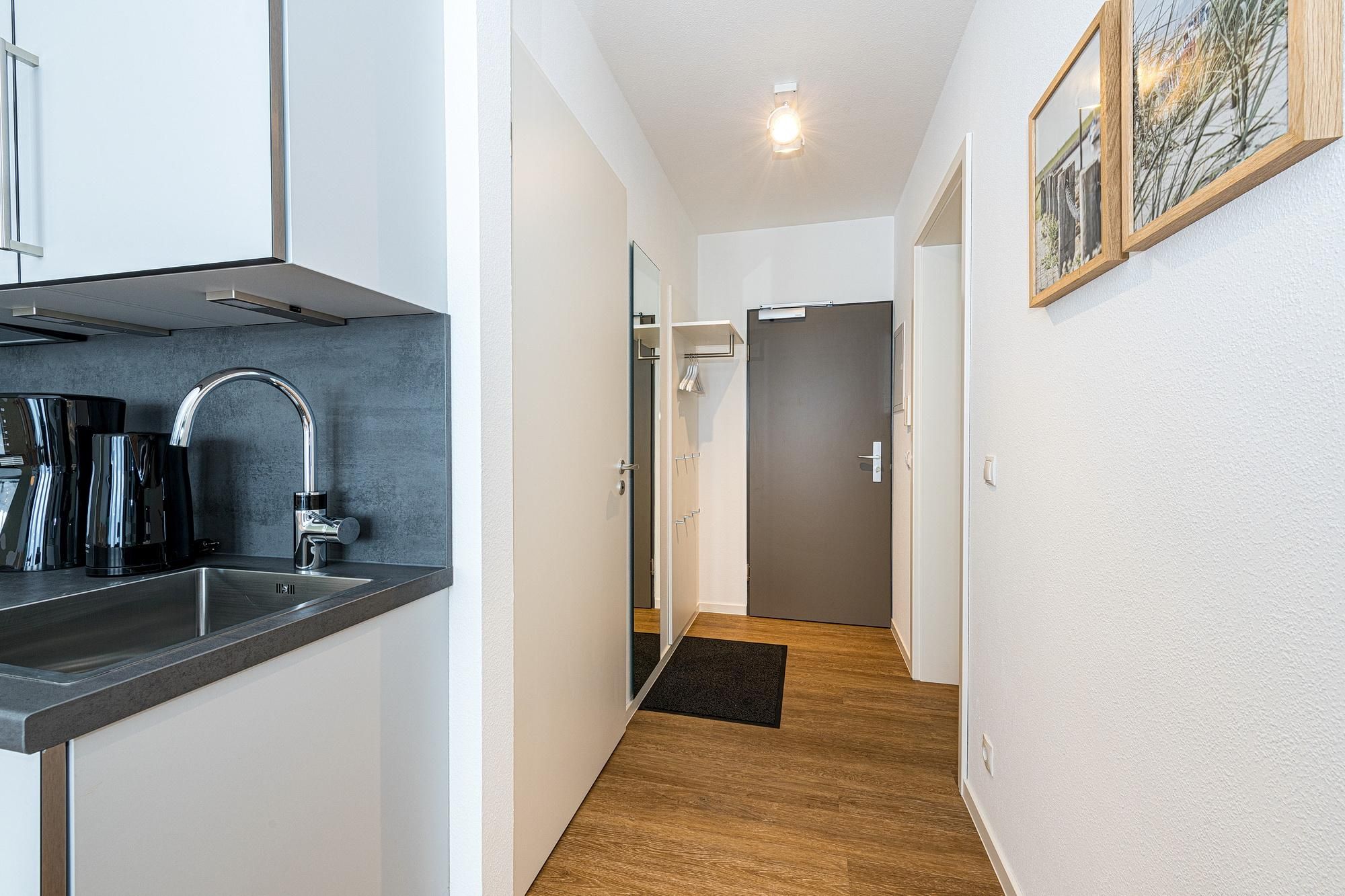 Die moderne und helle Ferienwohnung befindet sich im Erdgeschoss des Deichhauses 8, im Herzen von Bensersiel, nur 500 Meter vom Sandstrand und der Nordsee entfernt. In der unmittelbaren Umgebung findet ihr zahlreiche Einkaufsmöglichkeiten, Restaurants und Cafés; auch die Nordseetherme, das Meerwasserfreibad mit großer Wasserrutsche und der Sportthemenpark sind fußläufig gut erreichbar. Unser Tipp: Macht einen Tagesausflug nach Langeoog - die knapp einstündige Fährverbindung zwischen Bensersiel und der autofreien Insel verkehrt mehrfach täglich. Der Fähranleger liegt nur einen kleinen Spaziergang (ca. 1 km) von den Deichhäusern entfernt.