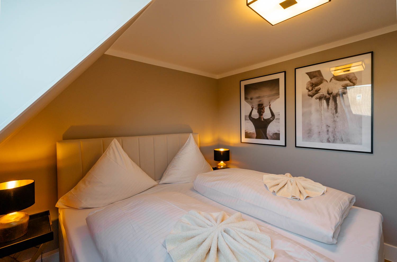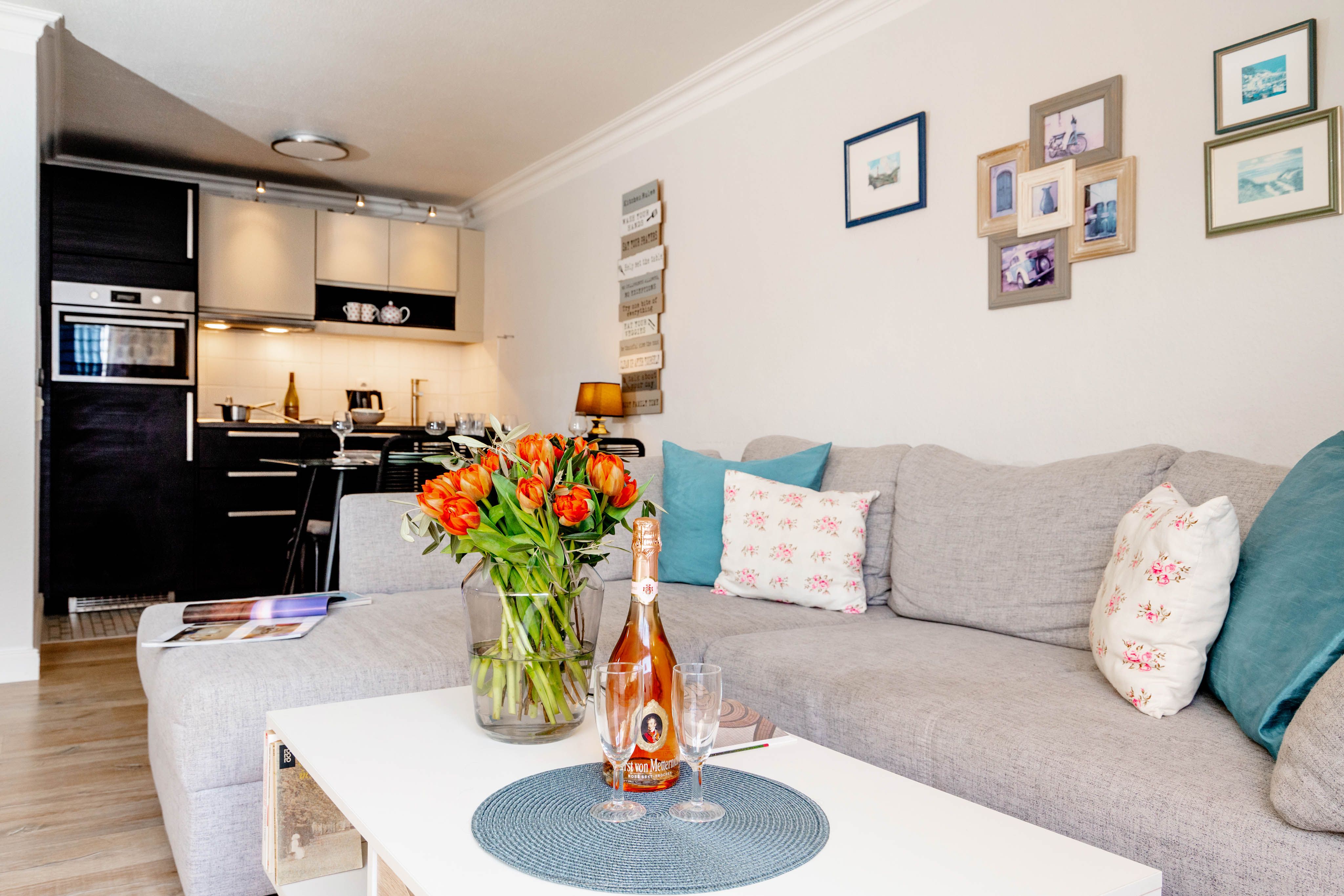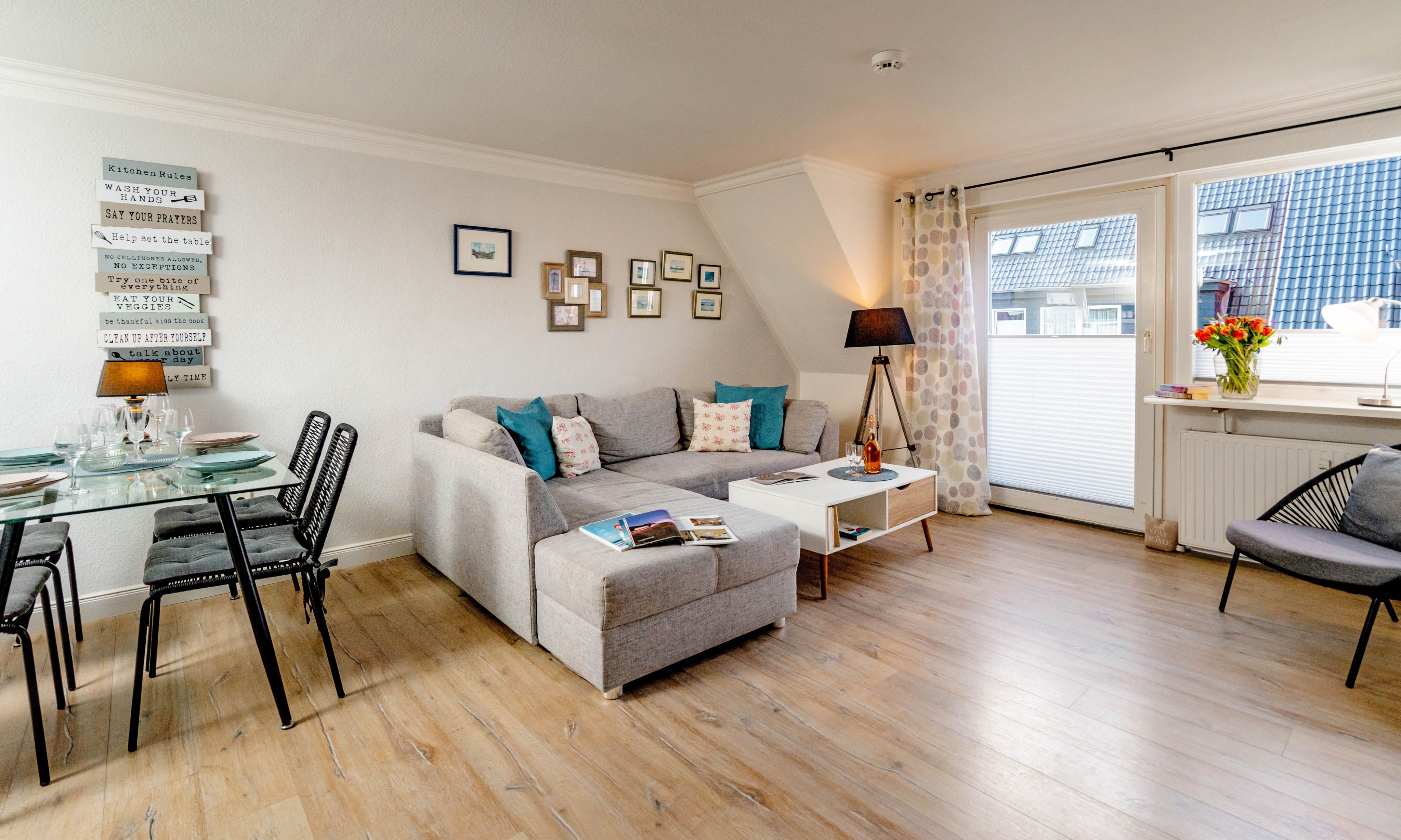 Willkommen in diesem gemütlichen Refugium, direkt unterm Dach: "diFalko" ist ein 2-Zimmer-Ferienappartement im friedlichen Süden von Westerland. Es liegt im ersten Stock einer kleinen Appartementanlage. Zum Strand sind es von hier aus nur circa 400 Meter, in die City kein Kilometer und der Bäcker für die knackfrischen Frühstücksbrötchen liegt auch gleich um die Ecke.Noch heute gibt's an der Promenade Kurkonzerte im Sommer, die hölzerne Wandelbahn, architektonische Zeugnisse aus der Bäderzeitblütephase und die echten Friesenkekse, nach Originalrezept von 1888 gebacken, im Cafe Wien in der Strandstraße. Die Friedrichstraße bietet alles, was man erwarten darf, wenn Shopping und Essengehen zur Entspannung gehören, die umliegenden Häuser voller Ferien-Appartements bestechen teilweise mit grandiosem Panoramablick über Stadt und/oder die Nordsee.