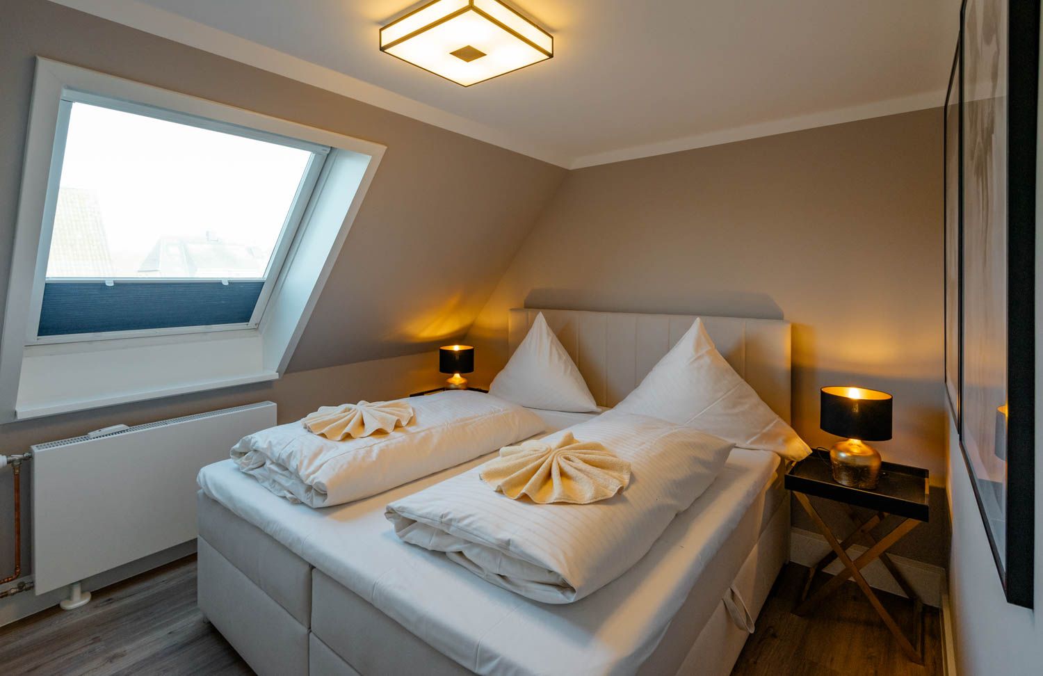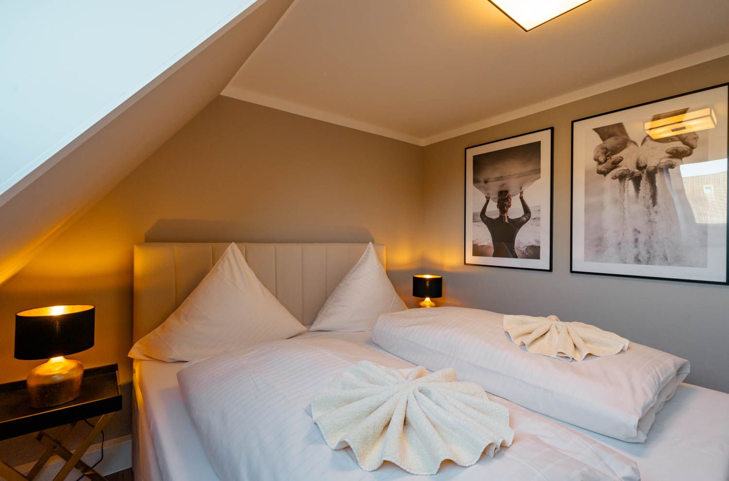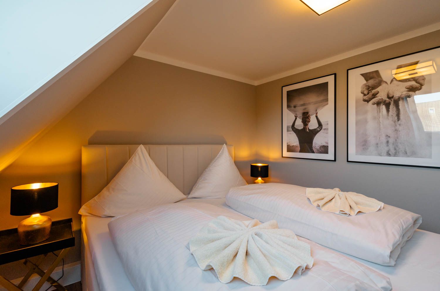Willkommen in diesem gemütlichen Refugium, direkt unterm Dach: "diFalko" ist ein 2-Zimmer-Ferienappartement im friedlichen Süden von Westerland. Es liegt im ersten Stock einer kleinen Appartementanlage. Zum Strand sind es von hier aus nur circa 400 Meter, in die City kein Kilometer und der Bäcker für die knackfrischen Frühstücksbrötchen liegt auch gleich um die Ecke.Noch heute gibt's an der Promenade Kurkonzerte im Sommer, die hölzerne Wandelbahn, architektonische Zeugnisse aus der Bäderzeitblütephase und die echten Friesenkekse, nach Originalrezept von 1888 gebacken, im Cafe Wien in der Strandstraße. Die Friedrichstraße bietet alles, was man erwarten darf, wenn Shopping und Essengehen zur Entspannung gehören, die umliegenden Häuser voller Ferien-Appartements bestechen teilweise mit grandiosem Panoramablick über Stadt und/oder die Nordsee.