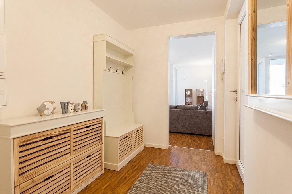 Zu dieser Wohnung gehört ein kostenpflichtiger Einzelstellplatz in der Tiefgarage, den ihr auf Wunsch hinzubuchen könnt. Der Stellplatz verfügt über eine eigene Wallbox (22 Kilowatt) für euer E-Auto, bei der ihr komfortabel via App laden und mit Kreditkarte, Apple Pay oder Google Pay zahlen könnt! Ein Staubsauger und ein Wäscheständer befinden sich in einem Abstellraum im Untergeschoss.