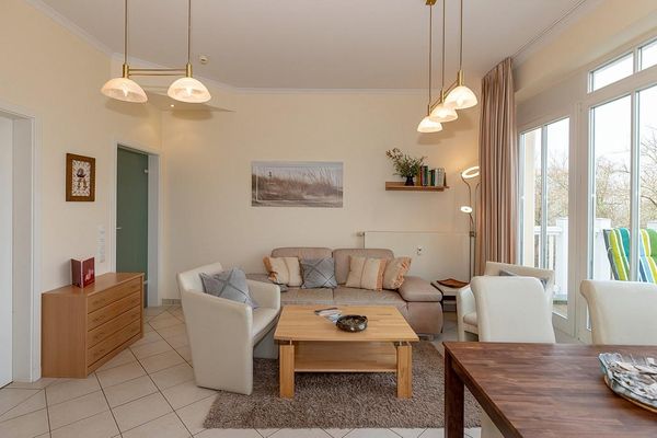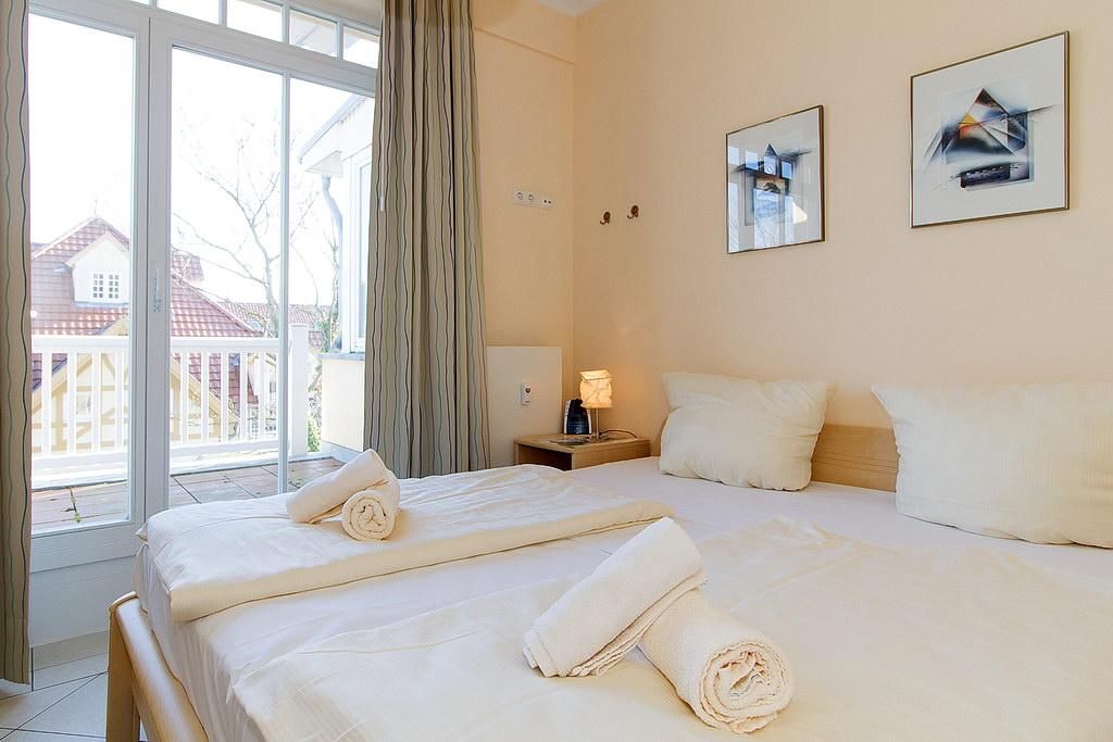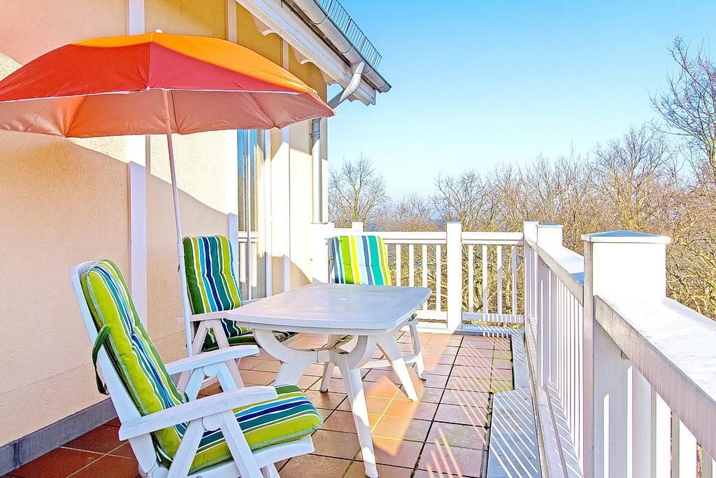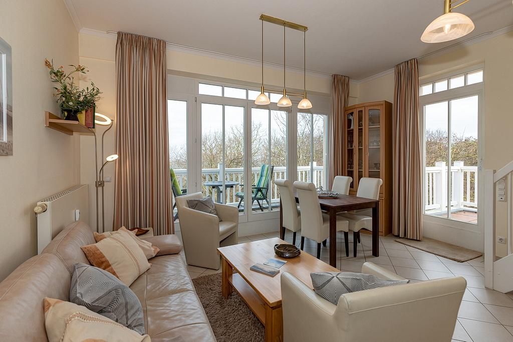 Zwischen Ostsee und Stadtwald in Kühlungsborn bietet das „Dünenschloss“ charmante Apartments in hochwertiger Ausstattung. Auf 65 qm und mit zwei großen Balkonen und zwei Bädern eignet sich diese 3-Zimmer-Eckwohnung - über zwei Wohnebenen verlaufend - für bis zu 4 Personen und verfügt über einen eingeschränkten Meerblick.