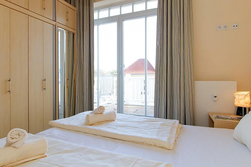 Zum behaglichen Apartment mit kostenfreiem WLAN gehören zwei separate Schlafzimmer mit jeweils einem Doppelbett (2 x 90 x 2,00 m) und Flachbild-TV, ein Wohnbereich mit Couch und Flachbild-TV, zwei große Balkone nach Norden und Osten und zwei Bäder mit Dusche bzw. Badewanne und WC.