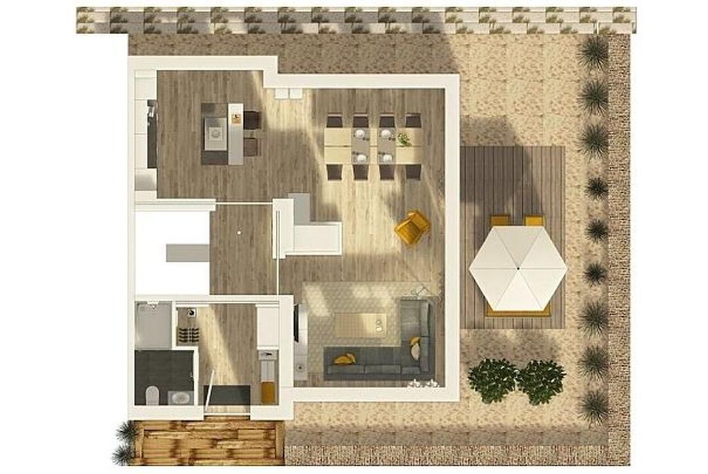 Die Außenanlagen überzeugen durch ihre regionale Bepflanzung, eine großzügige Terrasse und einen PKW-Stellplatz.