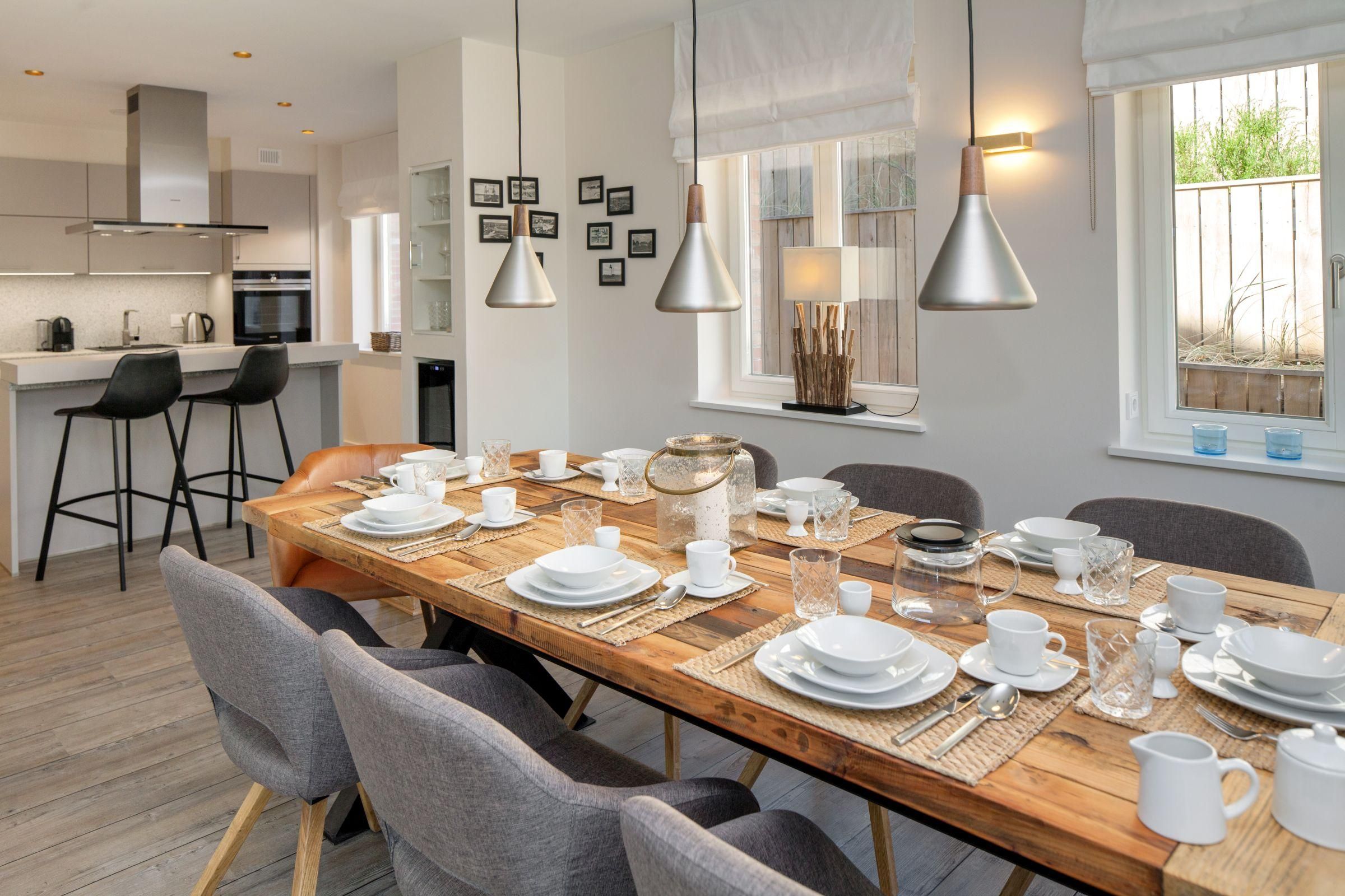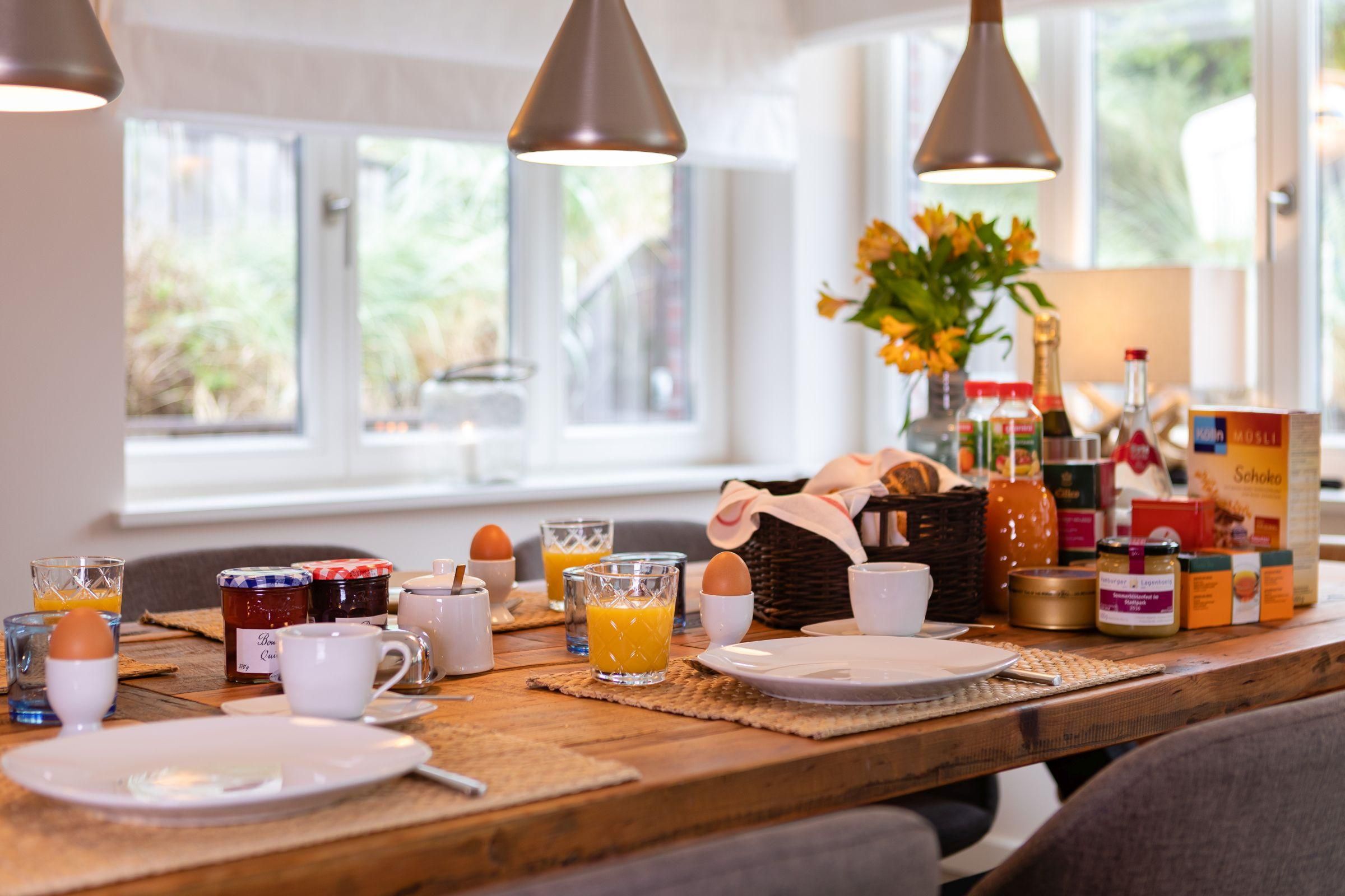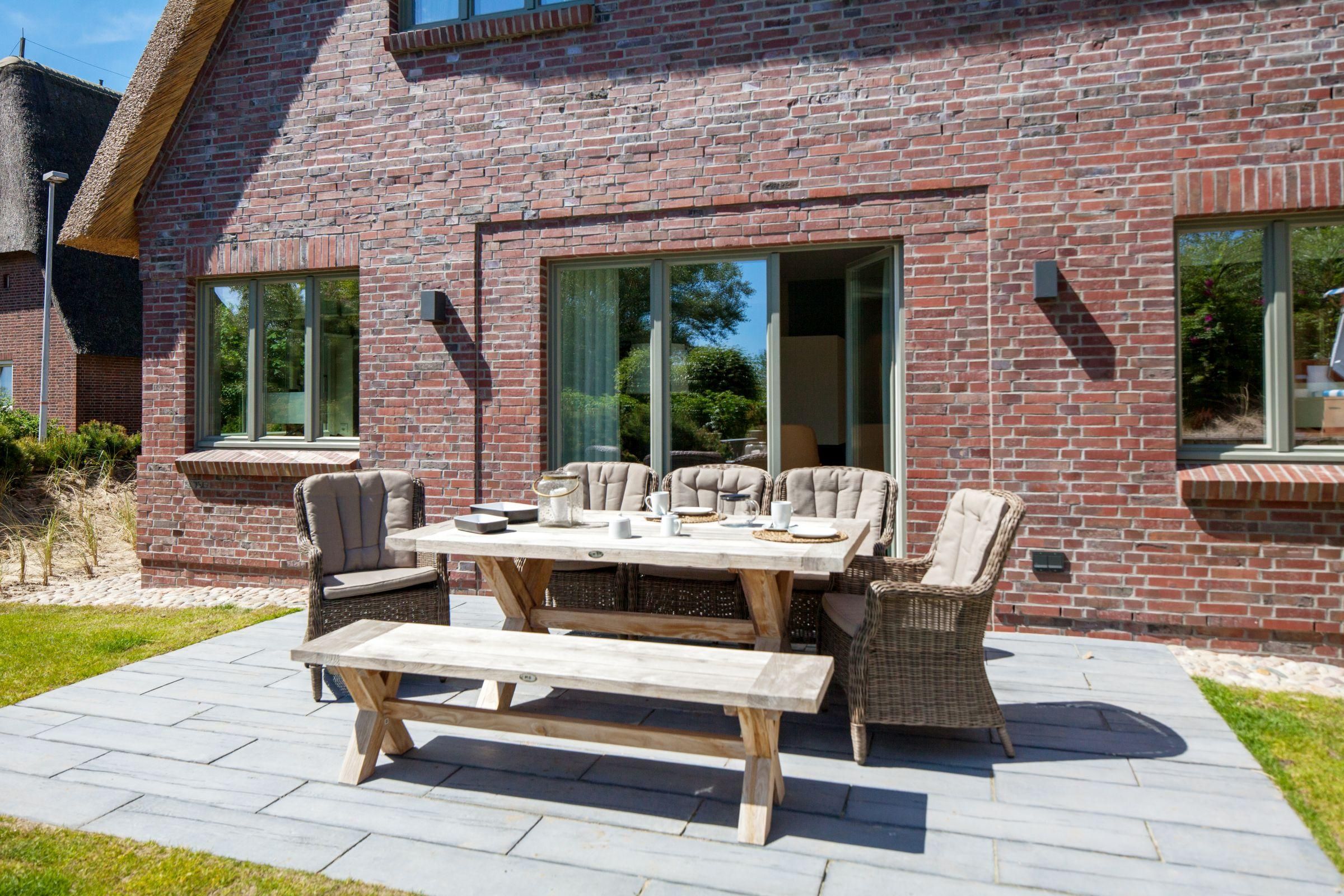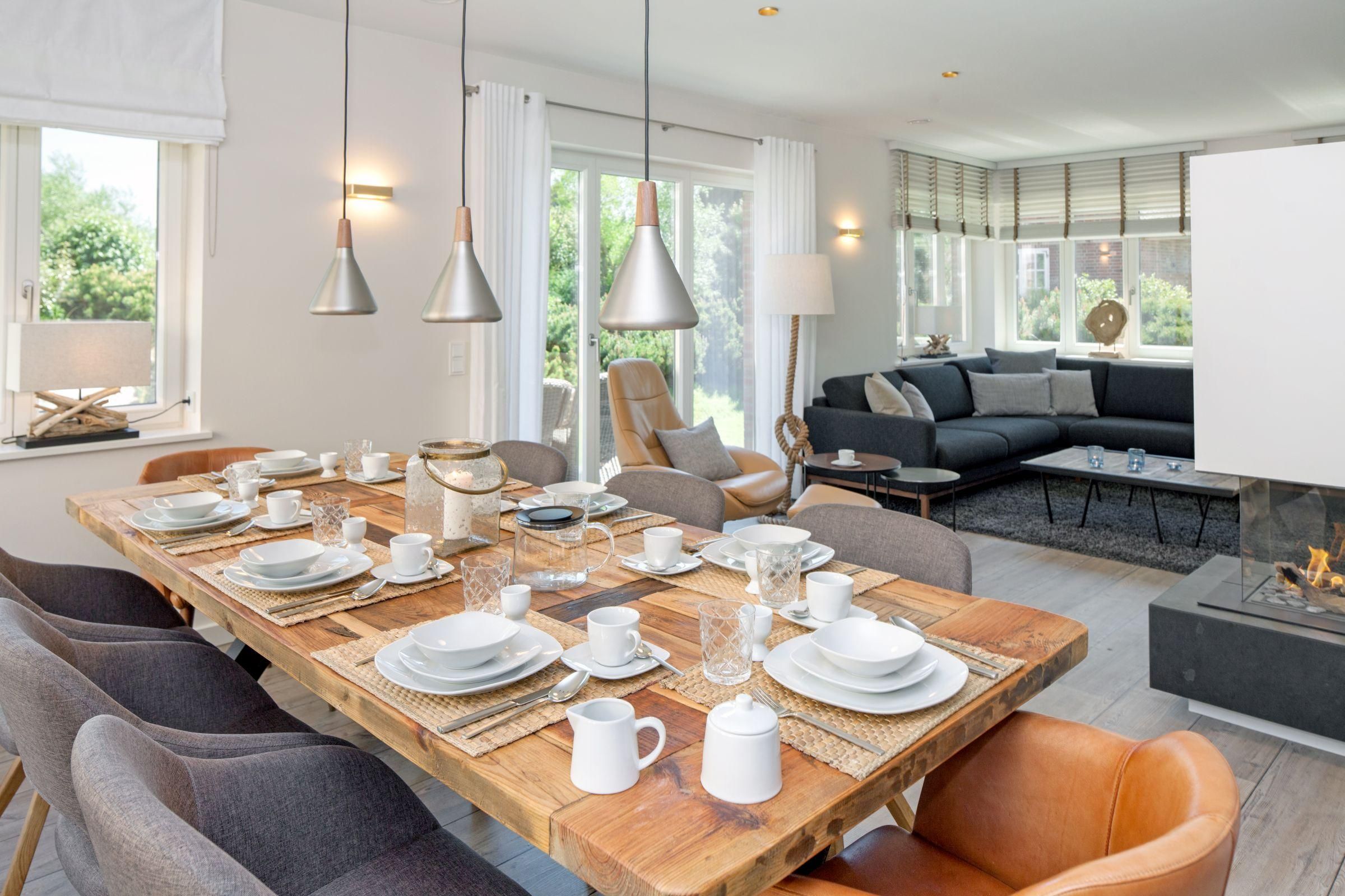 Die Doppelhaushälfte (220qm) unter Reet überzeugt durch hochwertige Materialien und eine stilvolle Einrichtung.