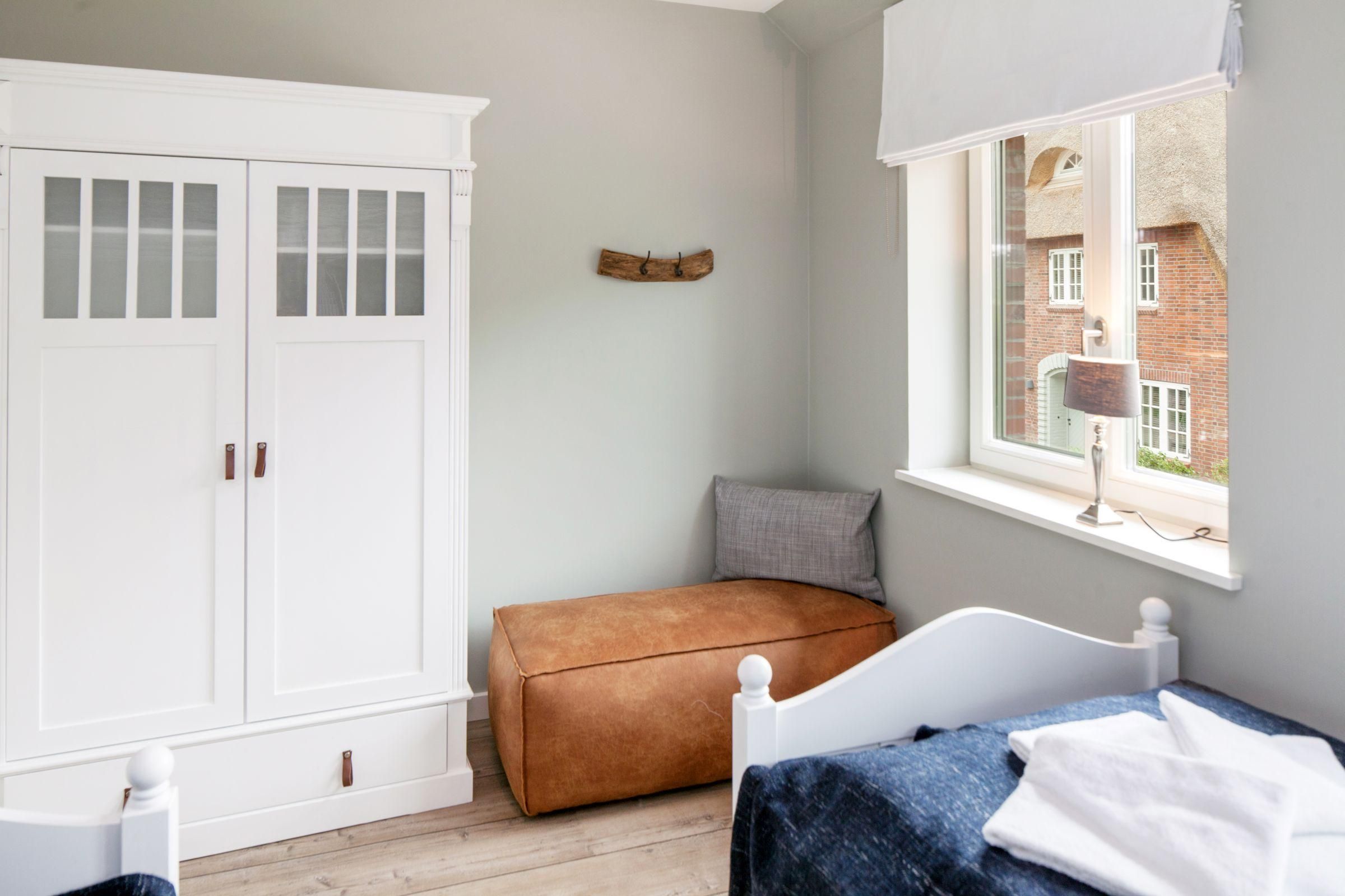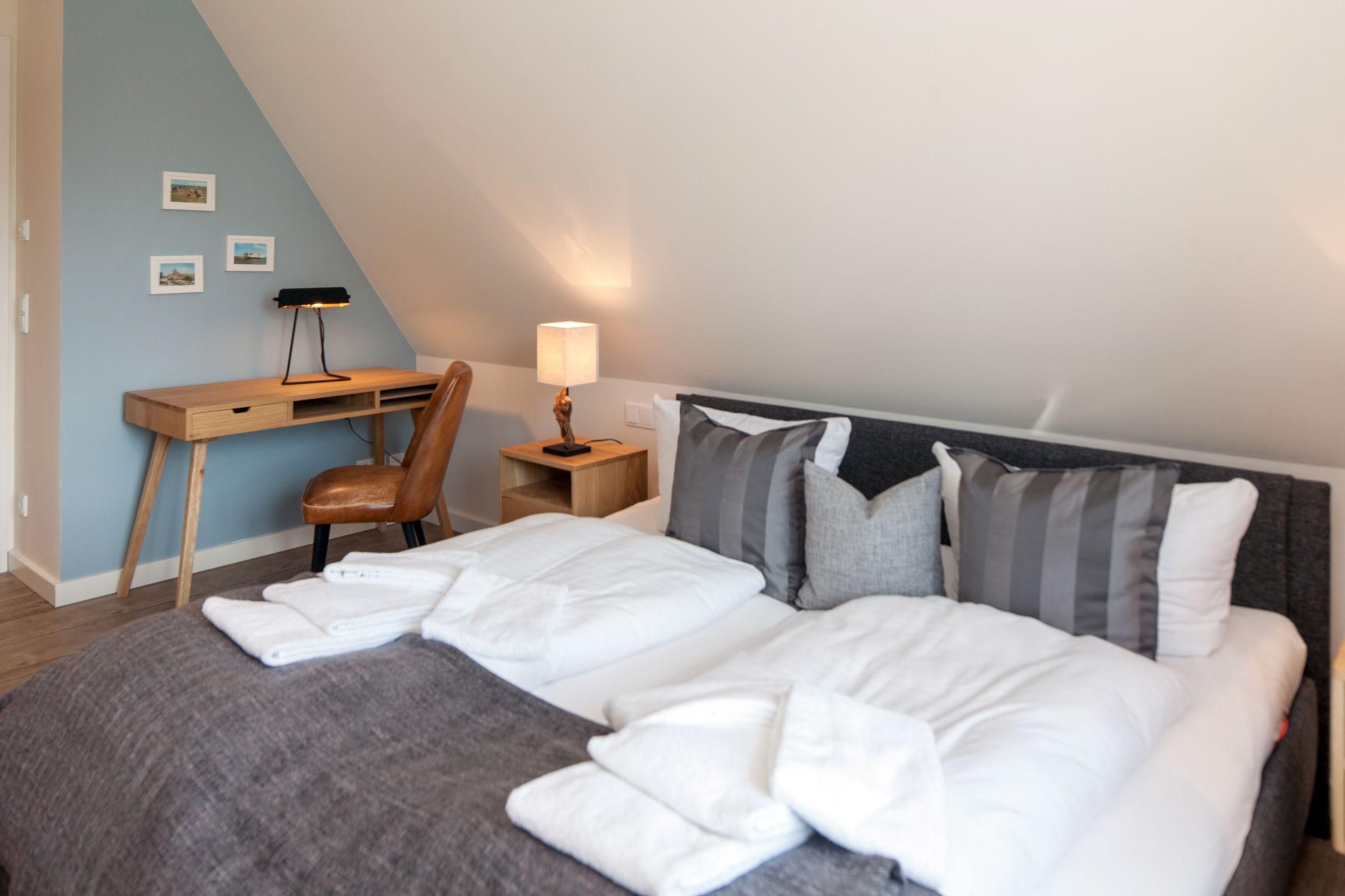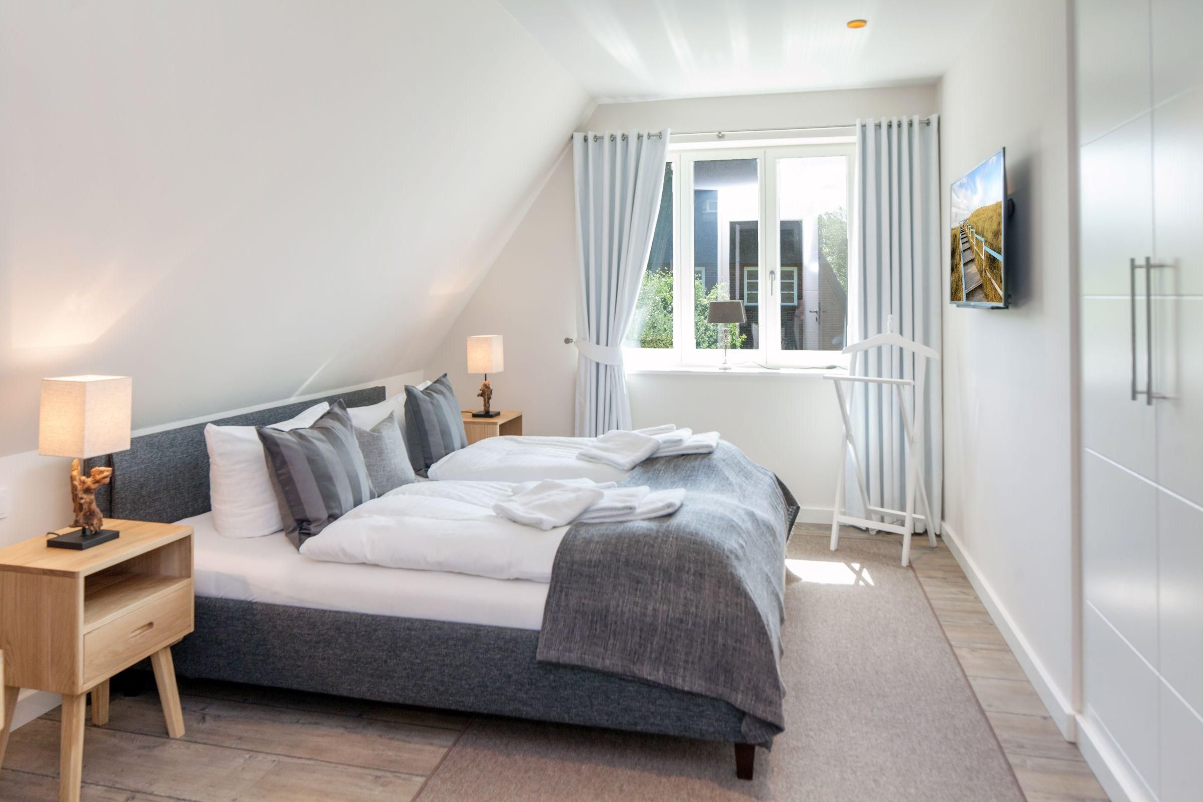 Die Schlafräume liegen in der ersten bzw. zweiten Etage (zwei mit Doppelbett, zwei mit zwei Einzelbetten).