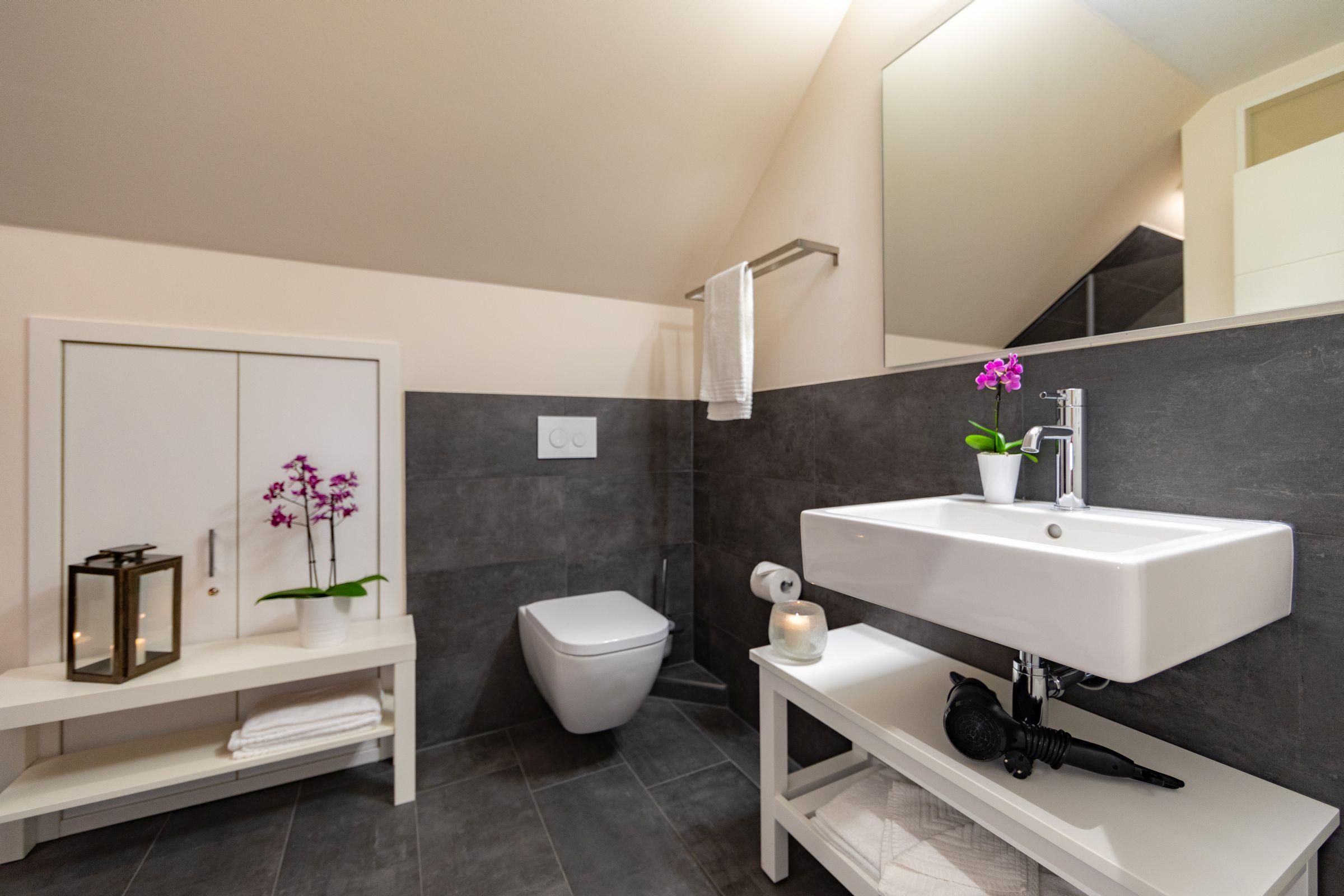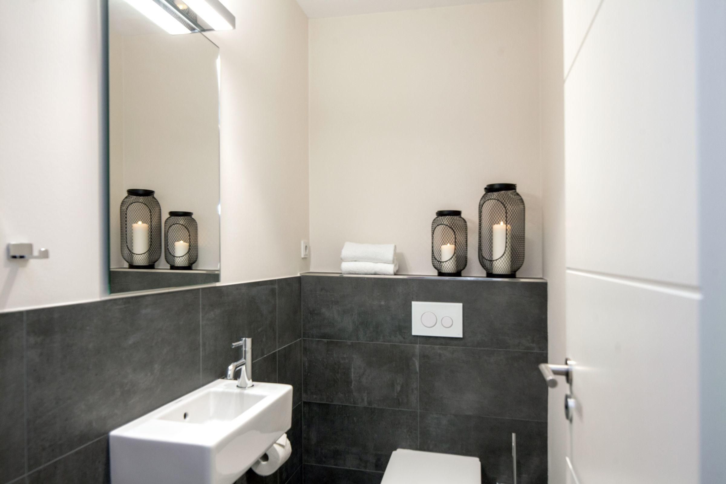 Auf jeder der vier Ebenen befindet sich ein WC mit Bad oder Dusche.