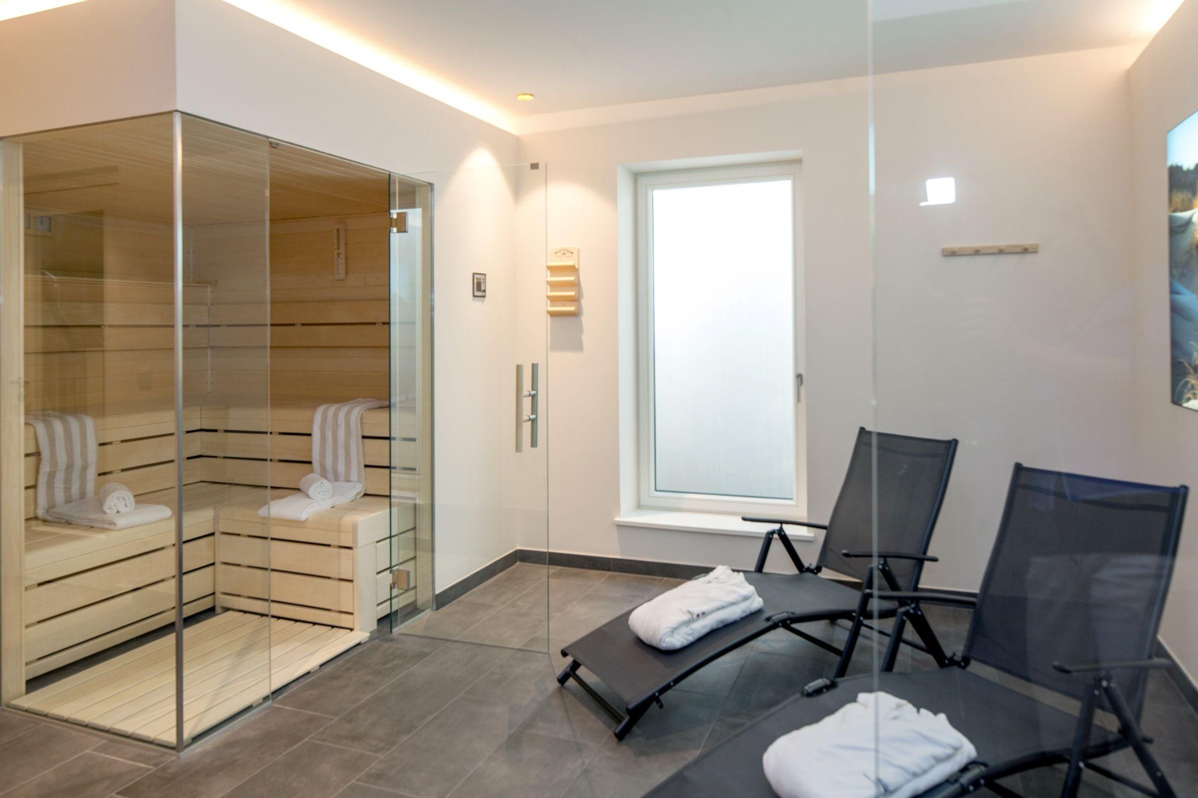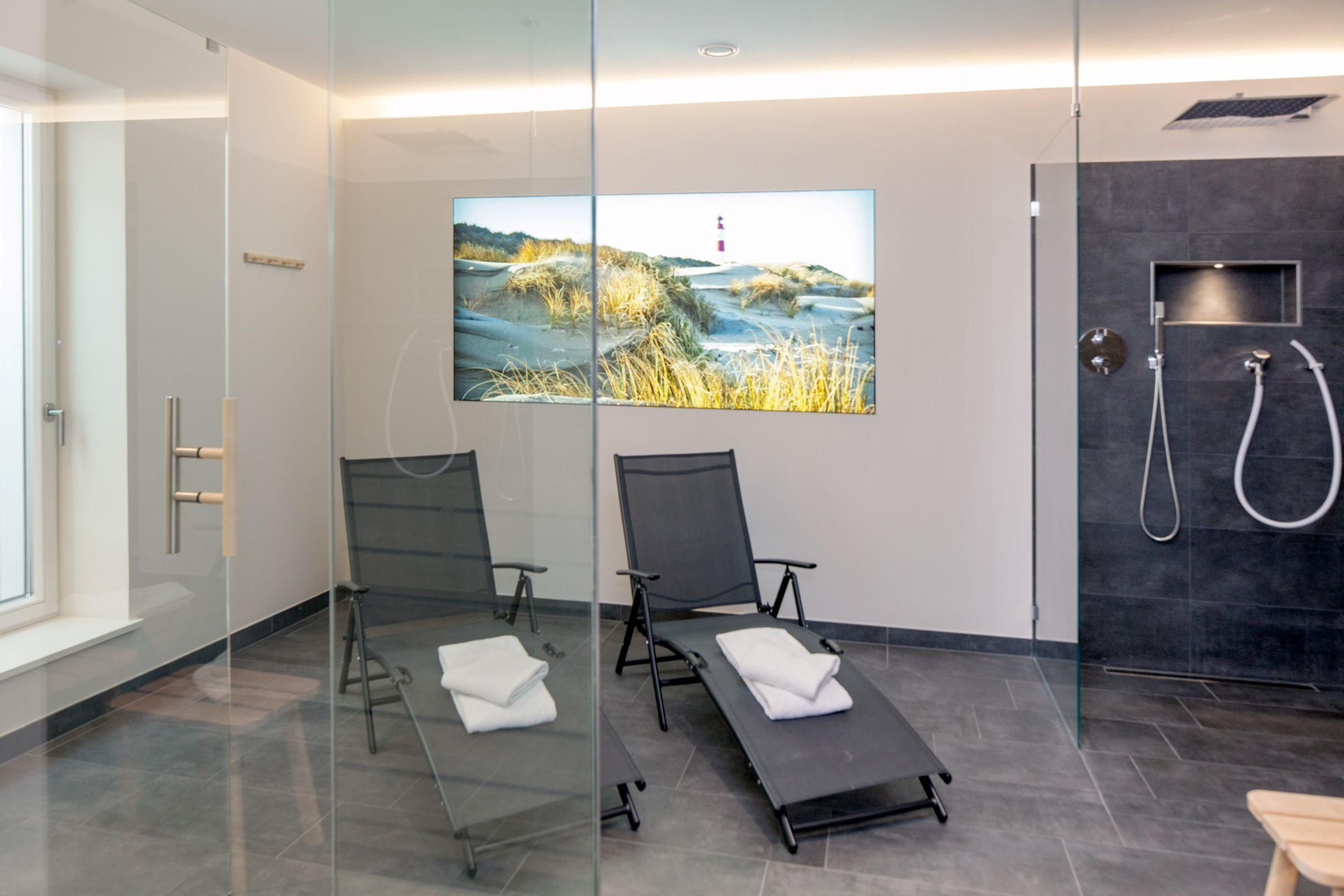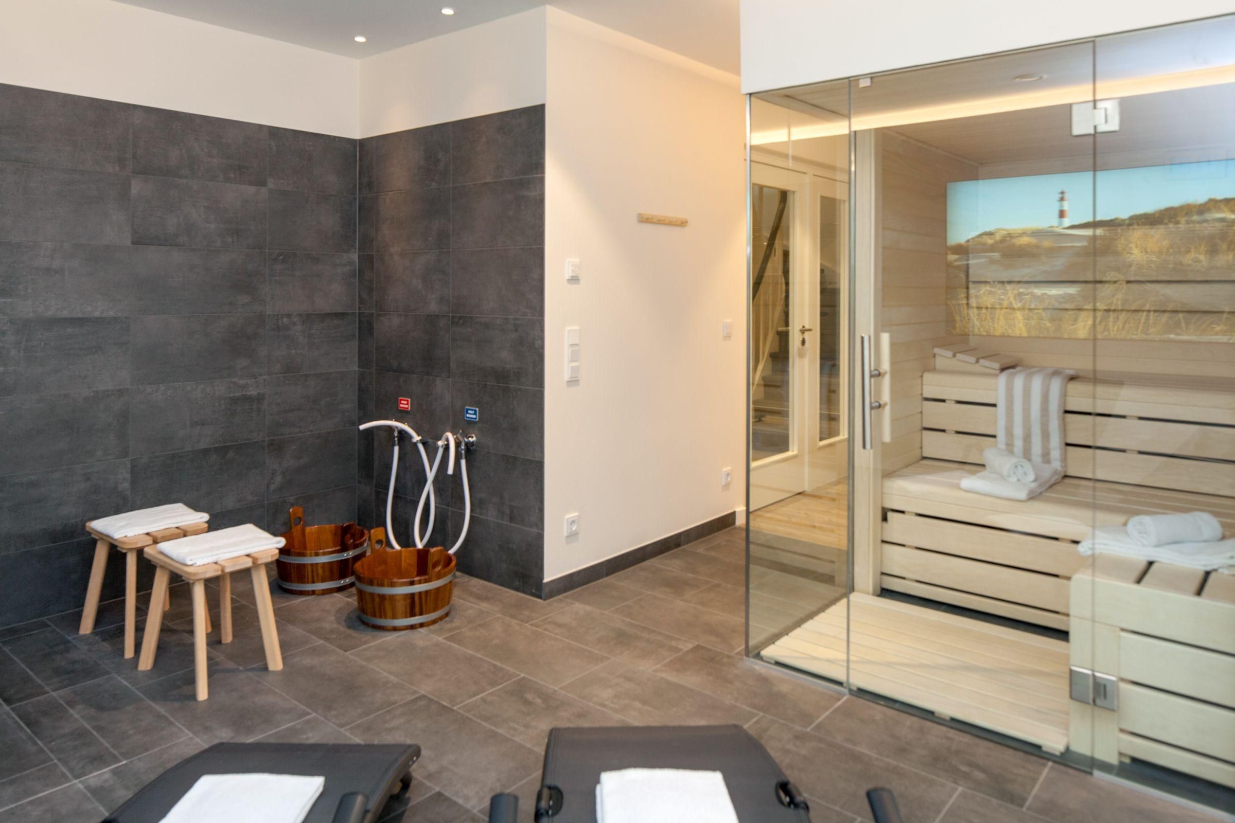 Außerdem befindet sich dort ein mit "LifeFitness" ausgestatteter Fitnessraum und eine Wellness-Landschaft mit Sauna.
