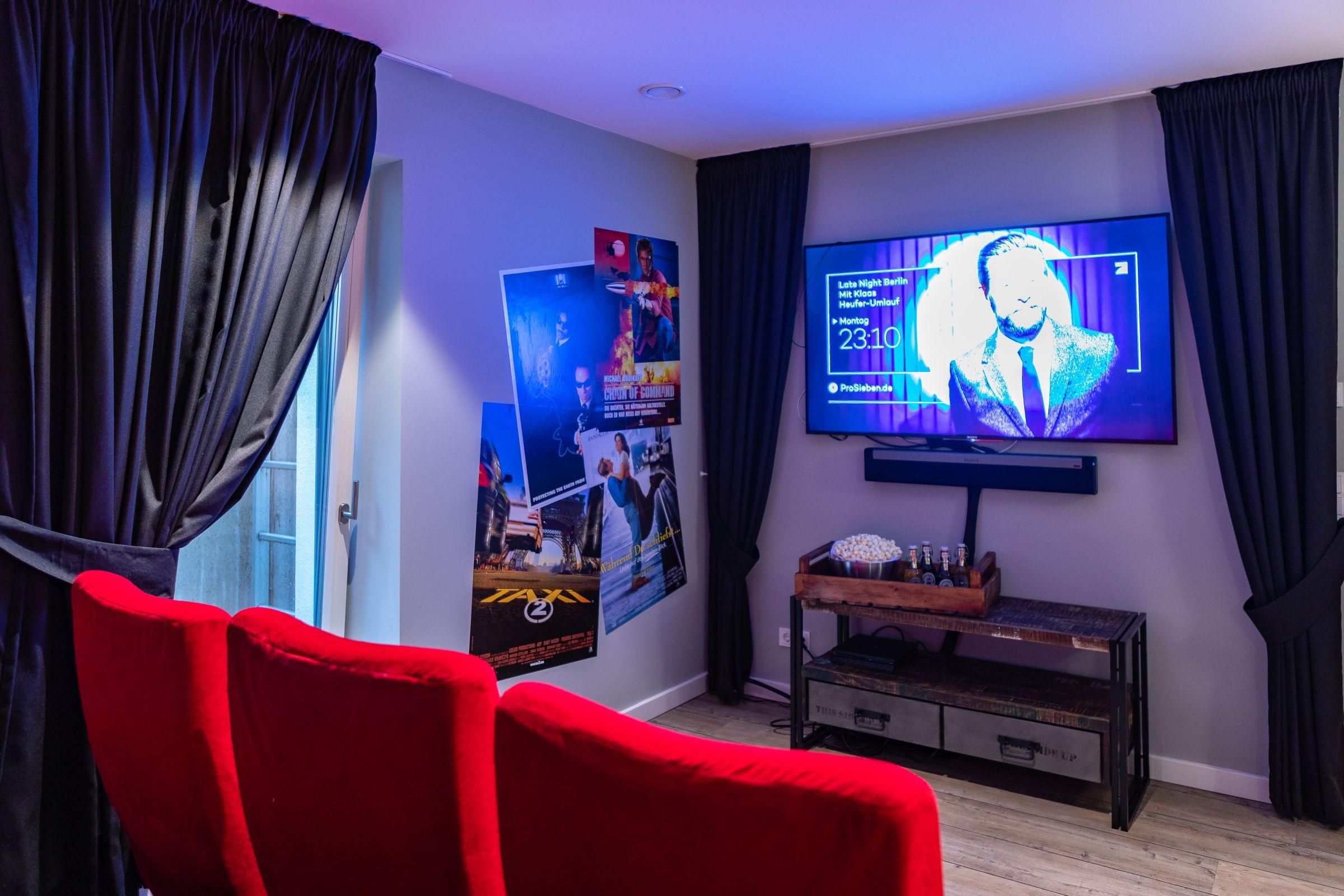 Im Souterrain steht Ihnen ein separater Kinoraum mit echten Kinosesseln zur Verfügung.