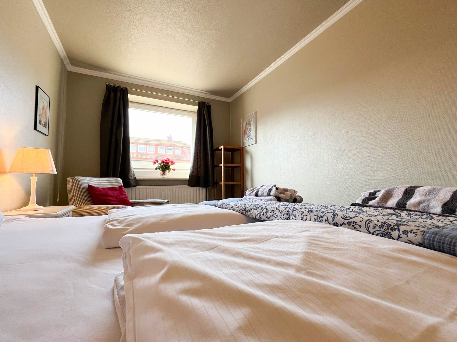 Moin Moin, Willkommen im Appartement "Eidumhüs". Diese Ferienwohnung hat circa 45 Quadratmeter Wohnfläche und genug Platz für bis zu zwei Personen. Sie liegt Hochparterre des Hauses, hat einen möblierten Balkon mit Ausrichtung nach Süden und eine schicke offene Küche, selbstverständlich mit Vollausstattung. Die Lage ist perfekt für echte Westerland-Kenner und -Liebhaber: mittendrin und doch etwas abgeschieden.