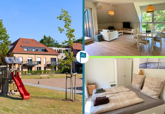 Der Eingang zur Wohnung befindet sich im westlich gelegenen Neubau. Hier betreten Sie eine moderne, gut ausgestattete Küche mit Ceranfeld, Backofen und Kaffeemaschine. An den Essbereich schließt sich der Wohnbereich an, der mit einem Flachbildfernseher und Internetzugang ausgestattet ist. Der skandinavische Stil zieht sich durch die gesamte Wohnung und verleiht ihr ein besonderes Flair.