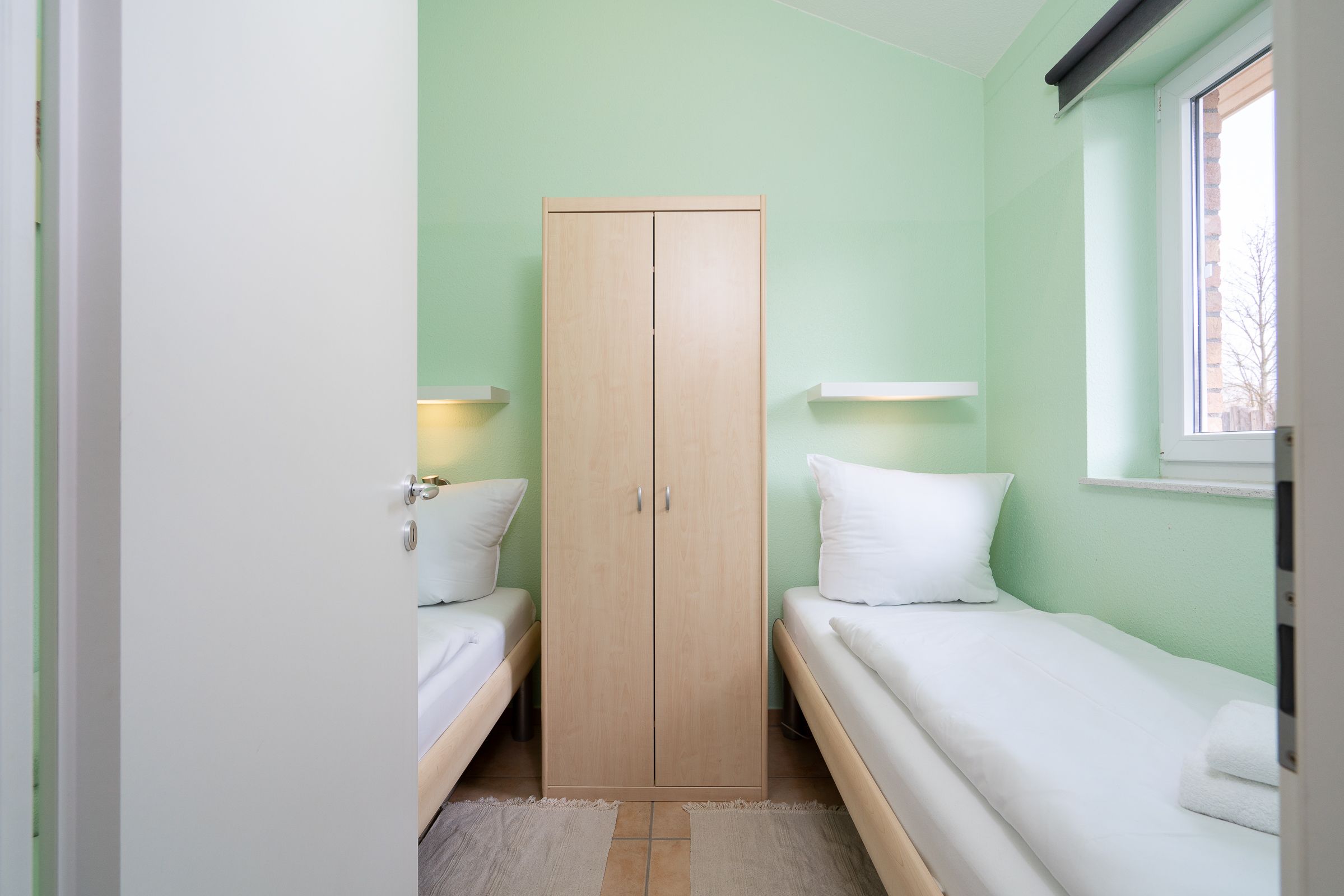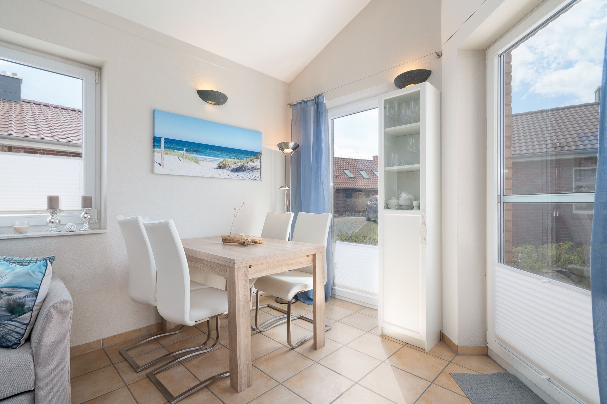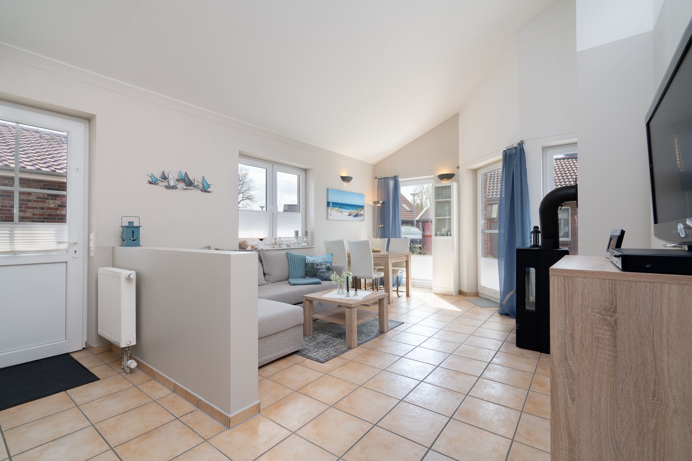 Das Haus bietet einen gemütlichen Wohnbereich mit Kaminofen sowie einen hellen Essbereich, die zu gemütlichen Stunden einladen. Angrenzend liegt die gut ausgestattete Küche. Das eine Schlafzimmer verfügt über ein Doppelbett, das andere Schlafzimmer über zwei gemütliche Einzelbetten. Das Duschbad ist rollstuhlgerecht gestaltet und bietet Ihnen viel Helligkeit.