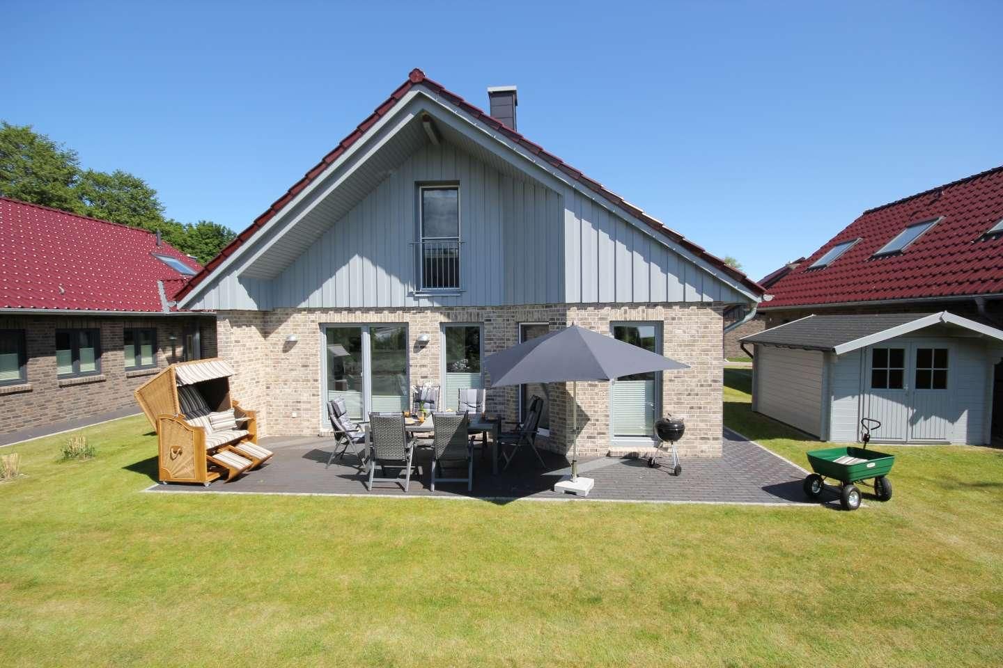 Der großzügige Garten mit seiner möblierten Terrasse, einem Strandkorb (zwischen April und Oktober) und einem Grill bietet Ihnen die perfekte Gelegenheit, sonnige Stunden im Freien zu genießen. Zudem steht Ihnen ein Gartenhaus zur gemeinschaftlichen Nutzung zur Verfügung.
