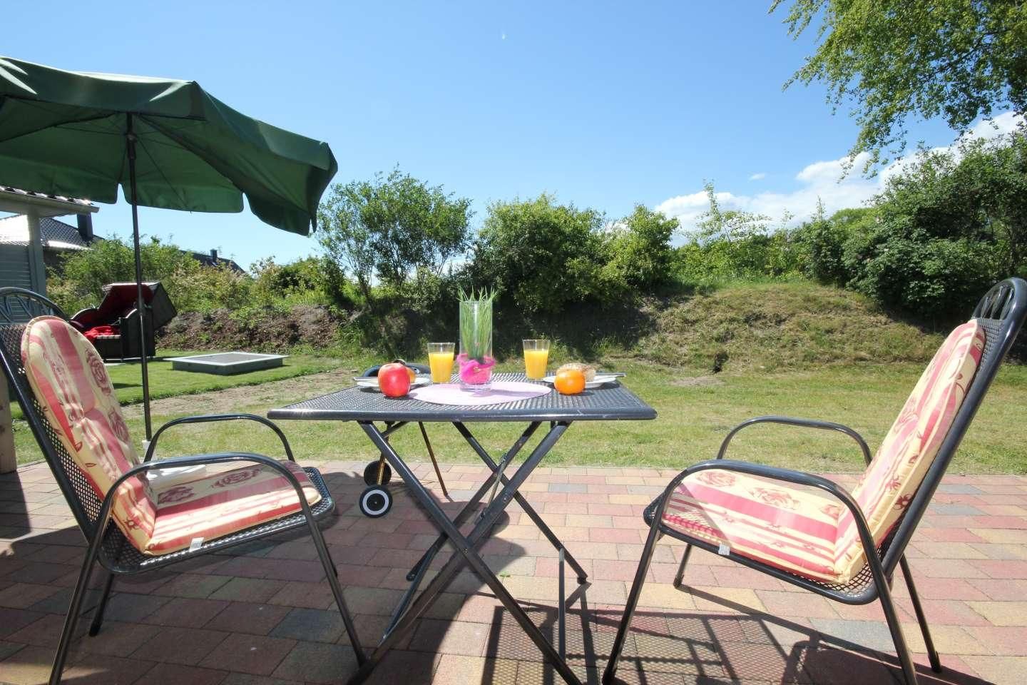 Der schöne Garten mit seiner möblierten Terrasse, einem Strandkorb (zwischen April und Oktober) und einem Grill bietet Ihnen die perfekte Gelegenheit, sonnige Stunden im Freien zu genießen.